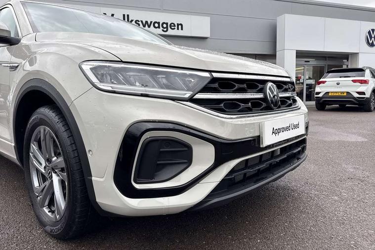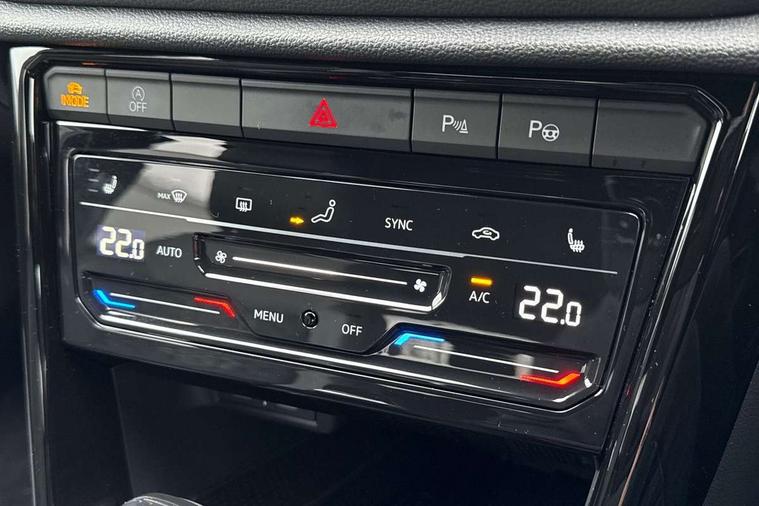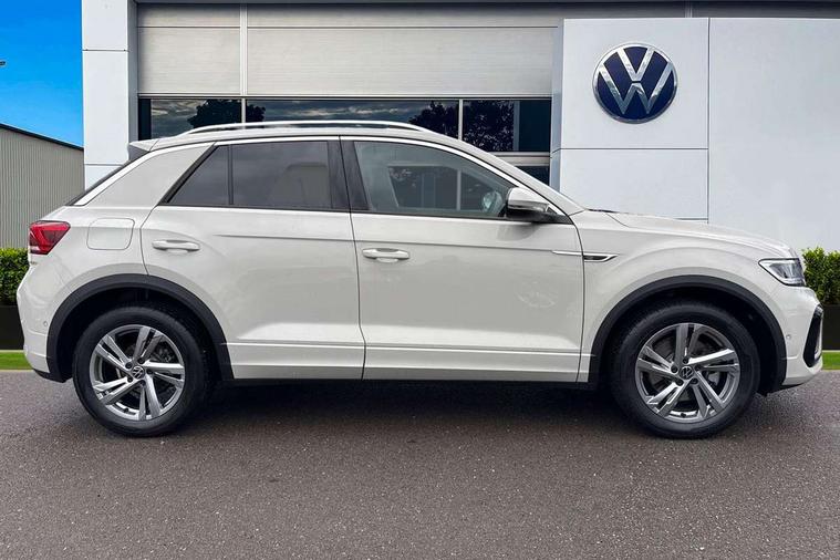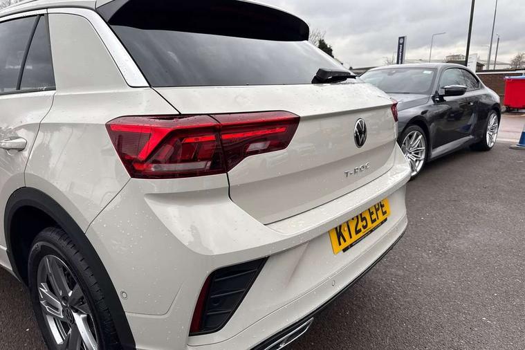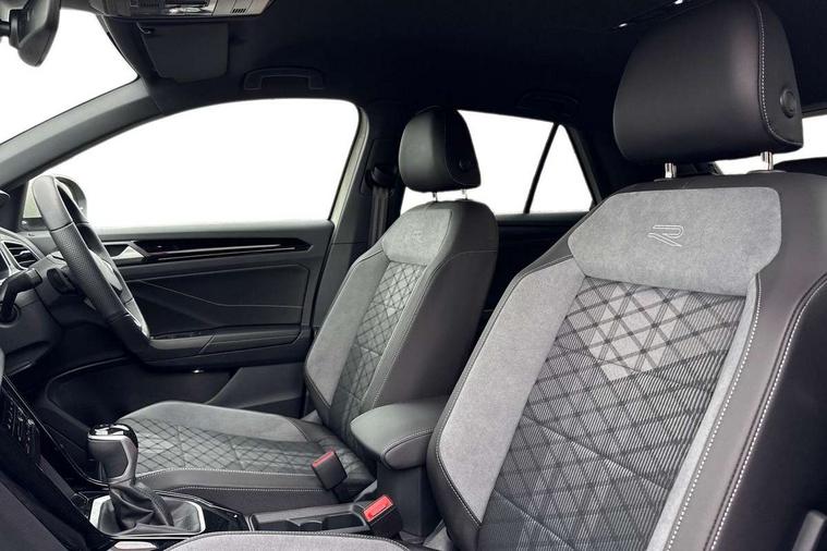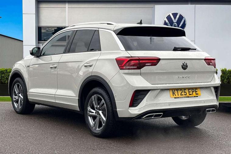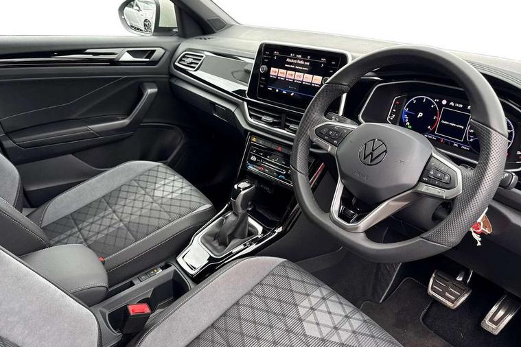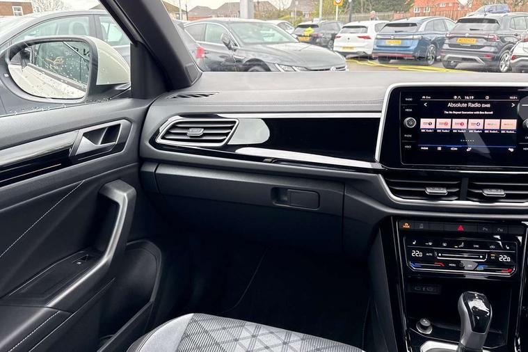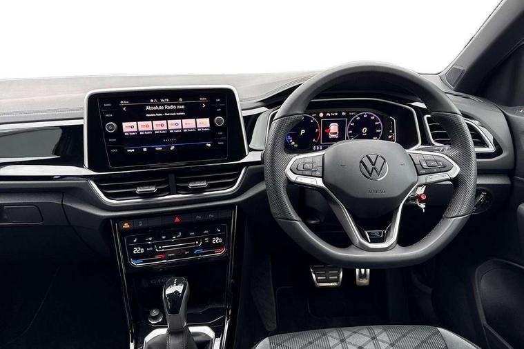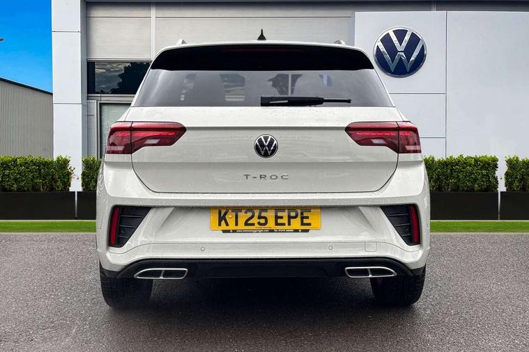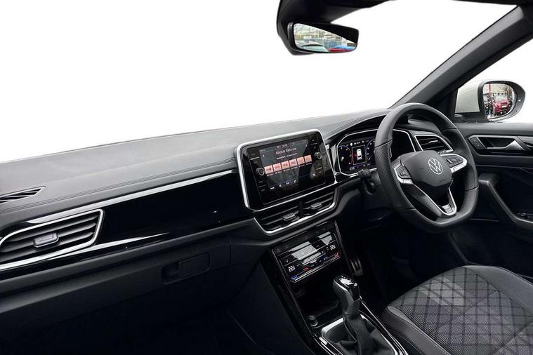 10.25" Digital cockpit pro, Advanced driver attention and drowsiness monitor, Dynamic road sign display, Emergency call service, Lane keeping system Lane Assist, Mobile phone interface, Modified key software - reduce switch off time for key status change to Long no motion, Online services, Park assist including front and rear parking sensors, Service interval indicator, Tailgate/trunk lid release from outside, Think blue trainer driver tips and journey analysis, Warning sound and light for front seatbelts unfastened, Wireless app connect, Battery regeneration during braking, Start/stop function with battery regeneration, DAB Digital radio, Diversity antenna for FM reception, Front and rear 6 speakers, Music playback - MP3, WMA and AAC files, Premium USB cable in choice of either Apple or Android smartphone compatibility, SD card slot, Simultaneous pairing of 2 compatible mobile devices, Title and cover art display, We Connect and We Connect Plus functionality, Auto dimming interior rear view mirror, Automatic hazard lights activation under emergency braking, Automatic headlight control with LED separate daytime running lights with coming/leaving home function, Body coloured exterior mirror housings and door handles, Electrically adjustable and heated door mirrors, Extended roof spoiler, Exterior mirrors aspherical on driver side, convex on front passenger side, External USB type C socket and charging sockets, Front windscreen wiper with intermittent wipe and 4 position delay, Heated rear window, LED 3rd brake light, LED rear combination lamps, LED rear number plate lights, Power windows with comfort operation and circuit breaker, Privacy glass for rear side windows and rear window, R-Line design body coloured bumpers, Rain sensor, Rear exhaust tailpipe, Rear fog light on one side and reversing lights on both sides, Rear side wing doors, Rear wash/wipe with intermittent wipe setting, Remote electrically foldable door mirrors, puddle lights and reverse activated passenger's door mirror, 12V power socket in centre console, 3 rear head restraints, 3 seat bench in 2nd row, 4 load lashing points in luggage compartment, Air care climatronic air conditoning system with active combination filter and 2-zone temperature control, Black roof lining, Chrome plated decorative trims, Chrome plated radiator grille inserts, air vent surrounds and light switch surrounds, Door and side trim panel with leatherette insert, Front + rear carpet mats, Front centre armrest, Front cupholders x 2, Front footwell illumination, Front reading light, Front scuff plates with R Line logo, Front seat back storage pockets, Glove compartment door with light, Instrument lighting, white adjustable panel illumination, Interior ambient lighting and surround lighting, Interior light delay, Isofix child seat preparation, Leather gearshift handle, Load-through provision with cup holder when folded down ('Unsplit rear seat bench, split folding backrest, with centre armrest), Luggage compartment lighting, Single front passenger seat, Stainless steel pedals, Storage compartment in left and right luggage area, Storage compartment in rear doors, Storage compartments in driver and front passenger doors, Sunvisors with illuminated vanity mirrors, Variable boot floor, height adjustable and removable, Driver assistance pack without proactive passenger protection - T-Roc, 3 point height adj front seatbelts + pretensioners, 3 point seatbelts in outer rear with ECE label, ABS, Child locks on rear doors, City emergency braking and pedestrian monitoring, Driver and front passenger airbag with front passenger airbag deactivation, Driver and front passenger safety-optimised head restraints, Drivers seatbelt reminder, Electronic parking brake, Electronic Stability Control (ESC) inc EDL (Electronic Differential Lock) and ASR (Traction Control), Front and rear passengers curtain airbag system including front side airbags, Hill start assist, Predictive pedestrian protection, Rear disc brakes, Two tone horn, Tyre pressure loss indicator, Volkswagen roadside assistance, Piano black decorative inserts in dashboard and front door trim panels, Trims for alloy wheels,