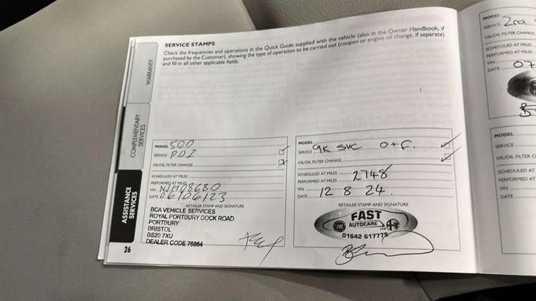 Apple car play/Android Auto, Cruise control, E-call, External temperature gauge, Power assist steering, Rear parking sensor, Speed limiter, Stop/start system, Trip computer, 4 speakers, 7" HD Touchscreen Radio, Bluetooth, USB and DAB, Rear speakers, 3rd brake light, Auto headlights, Body colour bumpers, Body coloured electrically adjustable door mirrors, Chrome plated exterior door handles, Dolcevita badge on fender, Dusk and rain sensors, Electric front windows, Fixed glass sunroof with sunblind, Front fog lights, Halogen headlamps, Heat insulated glass, Heated rear windows with wash wipe, LED daytime running lights, Rear side wing doors, Rear wiper, 1 passenger grab handle, 2 seat bench in second row, 50/50 split folding rear seats with height adjustable rear headrests, Air conditioning, Auxilliary 12V power socket, Chrome kit, Front headrests, Height adjustable drivers seat, Height adjustable steering wheel, Isofix child seat preparation, Single front passenger seat, Techno leather steering wheel with audio controls, 7 airbags - Driver, passenger, side, window and drivers knee airbags, ABS/EBD, ESC + ASR/MSR + HBA + Hill holder, Manual passenger airbag deactivation function, Traction control, Tyre pressure monitoring system, Automatic door locking, Immobiliser, Locking fuel filler cap, Remote central locking, 15" Alloy wheels,