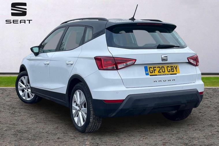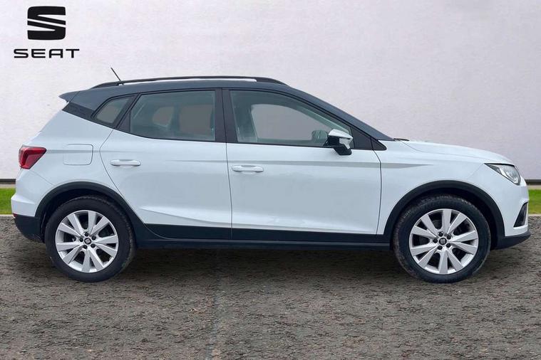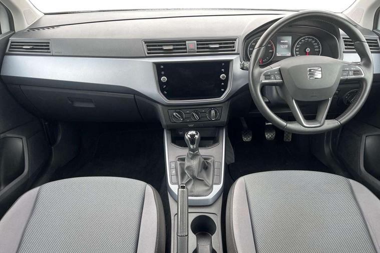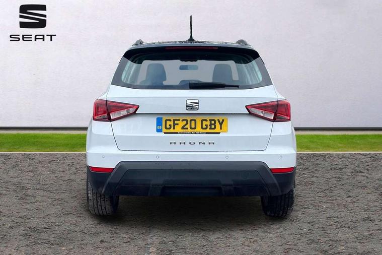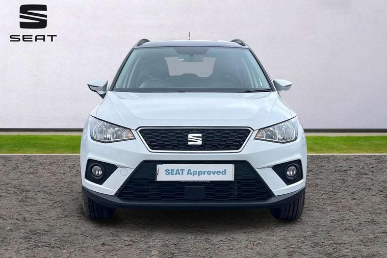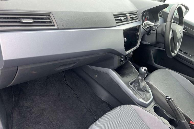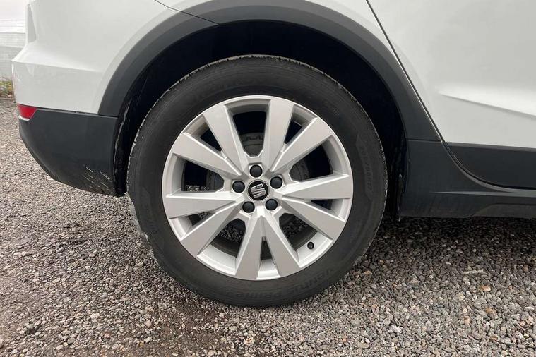 'Lights On' Reminder warning buzzer, Cruise control, Digital clock, Electric speed sensitive power steering, Full Link Smartphone Integration with Mirror Link, Apple Car Play, Google Android Auto with USB Type C cable for Apple and Android compatibility, Low fuel warning light, Outside temperature display, Rear parking sensor, RPM counter, Trip computer, Comfort suspension, 6 speakers, Bluetooth interface for hands free and audio streaming, DAB digital radio and AM/FM radio, Steering wheel mounted audio controls, Anti theft roof antenna, Automatic activation of hazard warning lights, Automatic headlights, Black roof rails, Black window trims, Body coloured bumpers, Body coloured door handle inserts, Body coloured door mirrors, Chrome front grille frame, Dimming rear view mirror, Electric adjustable door mirrors, Electric front/rear windows with one touch/auto up/down, Electric headlight adjustment, Front fog lights with cornering function and rear fog light, Hidden exhaust pipe, LED daytime running lights, LED rear tail lights and licence plate lights, Rear window wash/wipe, Visible VIN plate, Windshield wiper with intermittent control and potentiometer, 2 cupholders, 60/40 split folding rear seat, Air conditioning, Cloth upholstery, Double boot floor, Driver sunvisor with covered mirror + card holder, Dust/pollen filter, Front courtesy light with front reading lights, Gear shift indicator, Grey interior roof, Height adjustable front seats, Height/reach adjustable steering column, Illuminated boot, Instrument lighting with brightness control, Interior footwell lighting, ISOFIX points in outer rear seats with top tether anchorage points, Leather steering wheel/gear knob/handbrake, Multi-colour ambient interior lighting, Passenger sunvisor with vanity mirror, Two front and three rear height adjustable headrests, Connectivity pack plus - Arona, Interior chrome pack - Arona, 3 point seatbelts on all rear seats, ABS, Active front headrests, Child locks on rear doors, Driver and front passenger airbags with front passenger airbag de activation, front side and curtain airbags, Electronic stability control, Emergency Brake Assist (EBA) and front assist, Front and rear seatbelt reminder, Hill hold control, Multi-Collision braking, Tiredness recognition system, Traction control, Tyre pressure monitoring system, 2 folding remote keys with window open/close function, Electronic engine immobiliser, Locking wheel bolts, Remote central locking + deadlocks, Interior chrome line trim, Plastic grey dashboard, 17" Dynamic alloy wheels,