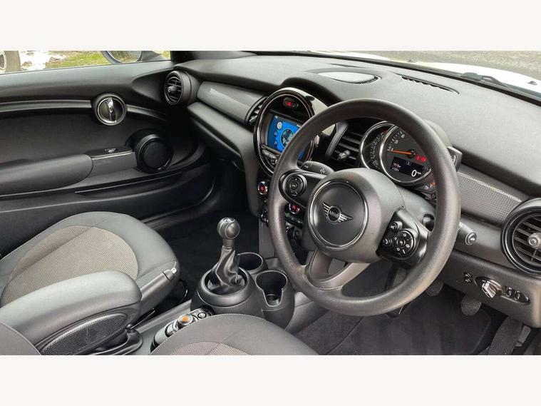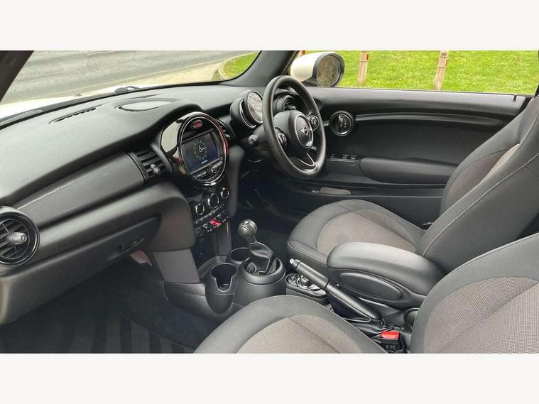Automatic start/stop function with brake energy recuperation, Compatible mobile phone bluetooth with audio streaming, Electro-mechanical speed dependant steering assistance, Gear change indicator, Instrument cluster, Mini E-call, MINI TeleServices, On board computer, Rear park distance control, Service interval indicator, Double Vanos system, Fully variable valve control, High precision injection, 6.5" touchscreen with LED ring, FM tuner and DAB digital radio, Automatic headlight activation switch, Body colour fuel filler cap, Chrome border high gloss black slats radiator grille, Dynamic brake lights, Electric windows, Fully electric black softtop with integrated sunroof functionality, Heated rear window, Heated windscreen washer jets, LED headlight with closed ring and daytime driving lights, Left exhaust tailpipe with chrome finisher, Metal door sill strips with MINI imprint, Model logo Cooper on right of tailgate, Rain sensor window wipers, Rear fog lights, Rear LED lights with union jack design, Side scuttle panel with integrated indicator, Sun/heat protection glass, White indicator lenses, 12V Accessory socket in centre console, 4 lashing eyes in luggage compartment, 50/50 split folding rear seats, Chrome interior highlights, Colour line - Carbon black, Cupholders, Easy Load boot handles, Front and rear head restraints, Front and rear isofix with front passenger airbag deactivation, Glove compartment, Height and length steering column adjustment, Interior lighting with 12 basic colours selectable via toggle switch in roof, Leather gearshift lever and handbrake gaiters, LED reading lights, vanity mirror lights, front foot well light and spotlight on front seats, Manual air conditioning, Mechanical seat adjustment, driver seat height adjust, forward/back and front seats backrest, Mini logo projection on floor from drivers exterior mirror, Multifunction steering wheel, Storage compartments in doors, Sunvisors with vanity mirrors, Tool kit, 3 point seatbelts on all four seats, 6 Airbags - front, side and seat belt tensioners, Active rollover protection, Anti-lock braking system (ABS), DSC - Dynamic Stability Control, Front and rear disc brakes, Hill start assist, Single tone fanfare horn, Tyre pressure monitoring system, Alarm system with tilt sensor, monitoring doors, bonnet interior and tailgate, Electronic vehicle immobiliser, Keyless Go,
