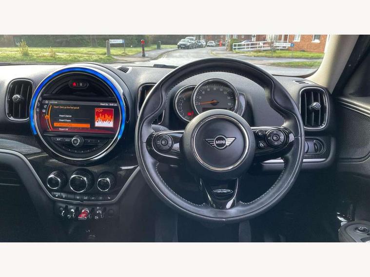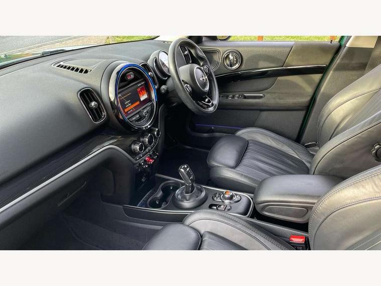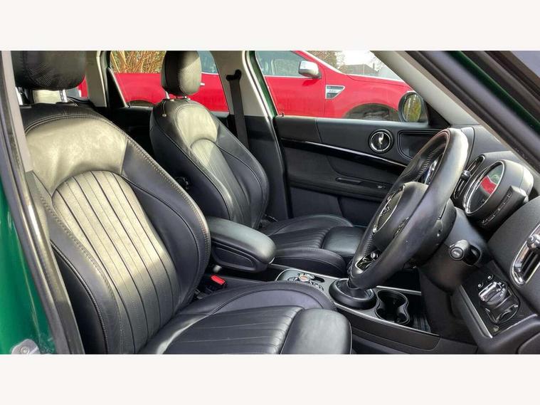 Active Guard incl speed limiting and lane departure functions with auto steering, and front collision warning with brake intervention, Automatic start/stop function with brake energy recuperation, Electro-mechanical speed dependant steering assistance, Instrument cluster, Mini E-call, MINI TeleServices, On board computer, Rear parking distance control, Double Vanos system, Fully variable valve control, High precision injection, Steptronic transmission with double clutch, FM tuner and DAB digital radio, Body colour fuel filler cap, Chrome line exterior, Day time driving lights, Door sill strips, Dynamic brake lights, Electric windows, Heated rear window, Heated windscreen washer jets, Left exhaust tailpipe with chrome finisher, Model logo, Model logo on Tailgate, Radiator grille, Rain sensor with auto headlights, Rear fog lights, Rear window wiper, Side scuttle panel with integrated indicator, Split rear doors, Sun/heat protection glass, White indicator lenses, 12V Accessory socket in centre console, 360L luggage compartment capacity, 4 lashing eyes in luggage compartment, 40:20:40 split folding rear seats, Chrome interior highlights, Cupholders, English handbook, Front headrests, Glove compartment, Height and length steering column adjustment, Interior lighting with 12 basic colours selectable via toggle switch in roof, Isofix rear child seat preparation, Leather gearshift lever and handbrake gaiters, LED reading lights, vanity mirror lights, front foot well light and spotlight on front seats, Manual air conditioning, Mechanical seat adjustment, driver seat height adjust, forward/back and front seats backrest, MINI Yours fine walk nappa leather steering wheel with contrast stitching in silver and MINI Yours badge, Multifunction steering wheel, Passenger seat height adjuster, Rear headrests, Storage compartments in doors, Sunvisors with vanity mirrors, Excitement pack - Countryman, Navigation pack - Countryman, 2 tone horn, 3 point seatbelts on all seats, 6 Airbags - front, side, head and seat belt tensioners, Anti-lock braking system (ABS), DSC - Dynamic Stability Control, Electronic handbrake, Front and rear disc brakes, Hill start assist, Tyre pressure monitoring system, Alarm system with tilt sensor, monitoring doors, bonnet interior and tailgate, Auto drive away locking, Deadlocking function, Electronic vehicle immobiliser, Locking wheel bolts, Start/stop toggle with keyless go, Chrome line interior, Tool kit,