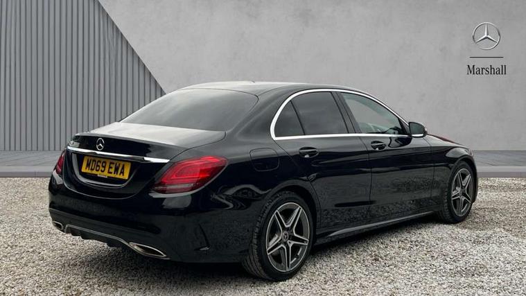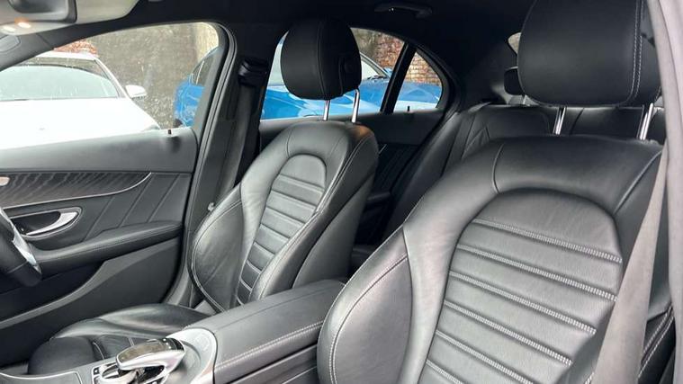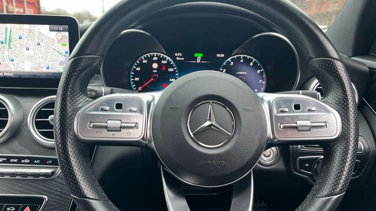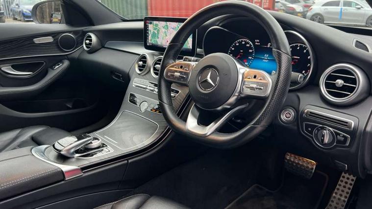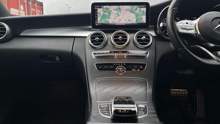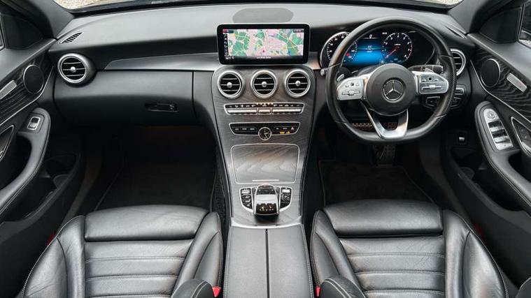 Active park assist with parktronic system, Attention assist, Bluetooth system, Collision prevention assist plus, Comand Online HDD Nav with media interface, radio/CD/DVD/MP3, 10.25 screen, linguatronic voice control, DYNAMIC SELECT with a choice of driving modes (ECO, Comfort, Sport, Sport+ and Individual), Multi function trip computer, Outside temperature gauge, Remote boot release, Reversing camera, Service indicator (ASSYST PLUS), Smartphone integration with Apple CarPlay and Android auto, Wireless charging, Petrol Particulate Filter, 2 USB ports in centre console, DAB Digital radio, Mid-range sound system with 7 speakers and 225W amplifier, SD card slot, Steering wheel mounted audio controls, Adaptive brake lights, Aerial in rear window, AMG body styling, Body coloured bumpers, Body coloured door mirrors, Chrome pins diamond radiator grille with integrated stars, Electric windows one touch open/close, Electrically adjustable and heated door mirrors, Green tinted glass, Heated windscreen washers, LED daytime running lights, LED Indicators, LED tail lights, LED third brake light, Multi beam LED headlights, Rain sensor windscreen wipers, Side windows surround in polished aluminium, Twin exhaust pipes, 2 cupholders in front centre console, 3 spoke flat bottom AMG steering wheel in nappa leather, 40:20:40 split folding rear seats, AMG floormats, AMG sports seats, Auto Mercedes-Benz child seat recognition sensor, Dual zone automatic climate control, Electric front seat height adjustment, Front and rear head restraints, Front centre armrest with storage compartment, Front door sills with Mercedes Benz lettering, Gearshift paddles, Heated front seats, Illuminated glovebox, Interior lighting - 64 colour Ambient lighting, Multifunction steering wheel, Rear top tether child seat ISOFIX attachment, Sports pedals with stainless steel surfaces and rubber studs, Sunvisors with illuminated vanity mirrors, Lighting pack - C class, Mirror pack - C Class, Seat comfort pack - C Class, Stowage space pack - C Class, 3 rear 3 point seatbelts, ABS with Brake Assist, Active bonnet, Adaptive brake system, Black seat belts, Brake calipers with Mercedes-Benz lettering + perforated brake discs, Child proof door locks, Crash sensor, Drivers knee airbag, Drivers pelvis airbag, Dual stage driver/passenger airbags, Electronic parking brake, ESP with ASR, Front passenger seat occupancy sensor, Front side airbags, Hill start assist, Rear seatbelt warning indicator, Tyre pressure monitoring system, Warning triangle and first aid kit, Window airbags, Alarm system/interior protection/immobiliser, Chrome surround in electric key, Remote central locking, Tyre inflation kit,