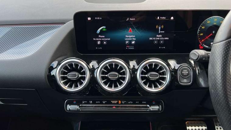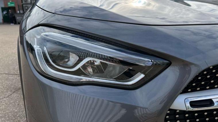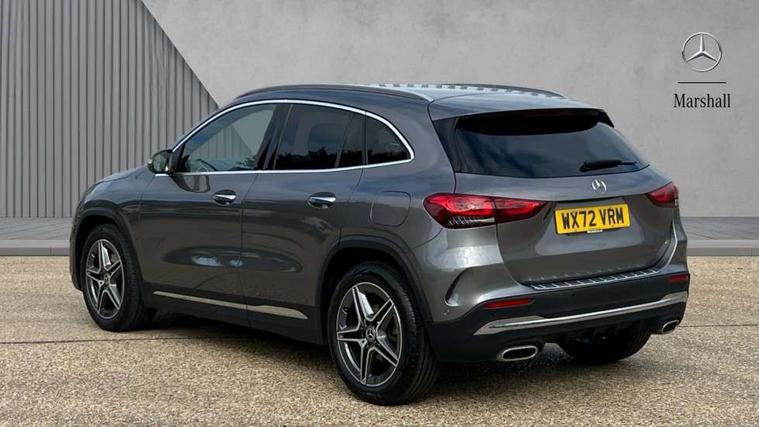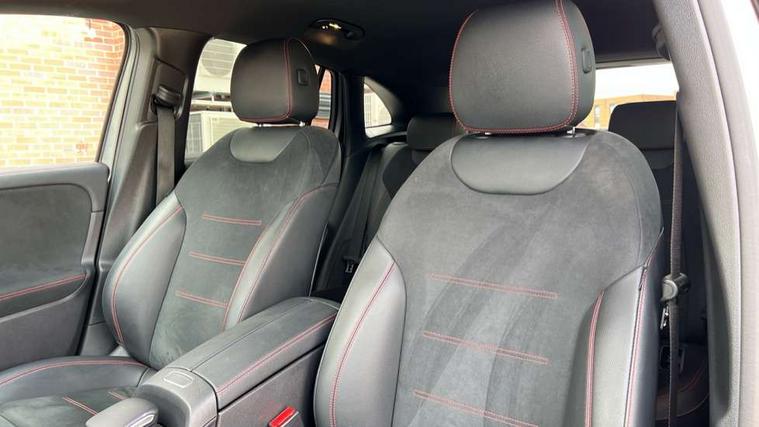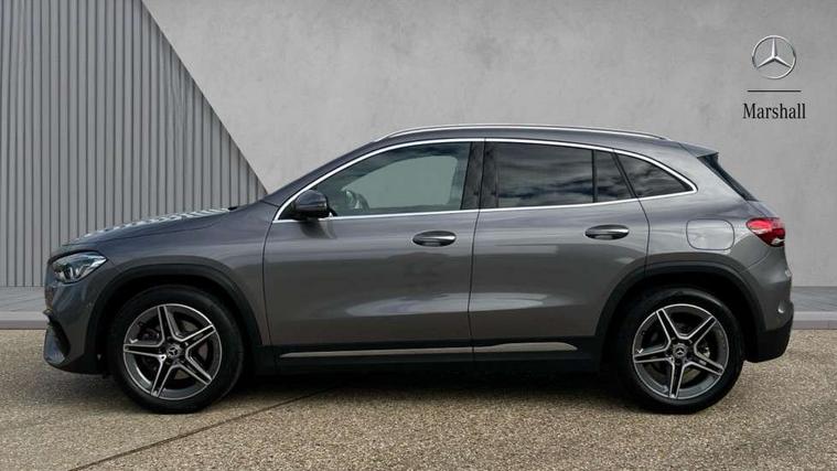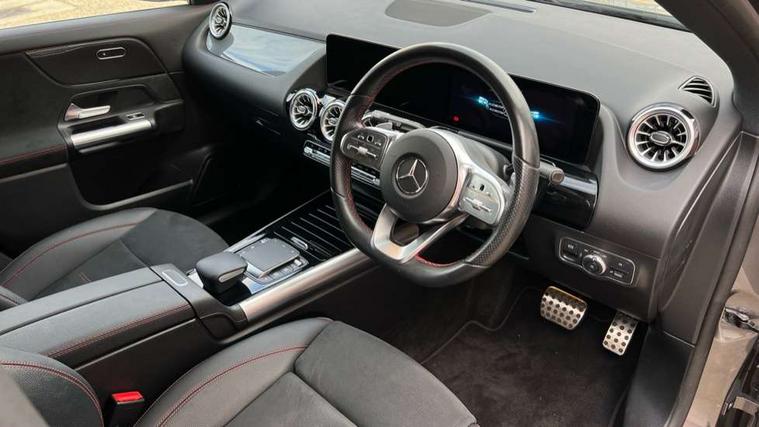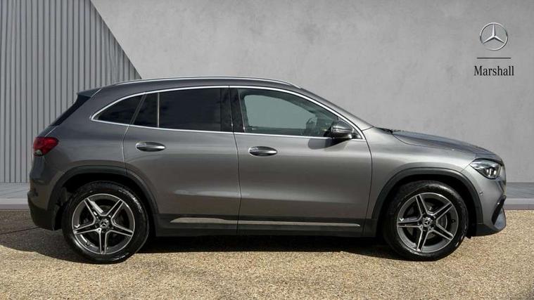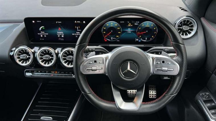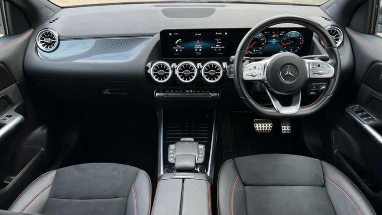 10.25 inch touchscreen central media display, 10.25" Digital instrument cluster display screen, Active lane keeping assist, Attention assist, Cruise control + speed limiter, Direct steering, DYNAMIC SELECT with a choice of driving modes (ECO, Comfort, Sport and Individual), ECO start/stop function, Fluid level warning indicator for fuel, oil, coolant and washer fluid, Hard-disk navigation, Hey Mercedes Voice activation, Lamp failure indicator, Mercedes me connect including emergency call system, accident recovery, breakdown and maintenance management, Mercedes me remote services, Multi function trip computer, Outside temperature gauge, Owners manual and service booklet in English, Pre-installation of private car share, Radio aerial integrated into front and rear windshields, Service indicator (ASSYST), Smartphone integration with Apple CarPlay and Android auto, Speed limit assist, Status display for rear seat belts in instrument cluster, Lowered comfort suspension, Rear axle multi-link, 2 USB ports (type C) in rear stowage compartment and one in front of center console, Bluetooth connectivity including audio streaming, DAB Digital radio, MBUX multimedia system, Media interface, Mercedes-Benz (225w) sound system with 10 speakers, Adaptive brake lights, Aerial for GPS, Aluminium roof rails, AMG front and rear apron, AMG specific/dual flow exhaust pipes in chrome (non-functional), Automatic headlamp activation, Beltline strips and weather strip in chrome, Black grained claddings with chrome parts, Body colour bumpers, Body colour door mirrors, Body coloured door handles with chrome insert for keyless entry, Car wash function, Dark privacy glass from B-pillar backwards, Electric front windows, Electric rear windows, Electrically adjustable and heated door mirrors with integrated LED indicators, Heated glass rear windscreen + timer control, Heated windscreen wash system, Interior mirror with black reading lamps and frameless, LED high performance headlamps with integrated LED daytime running lights, LED tail lights in two piece design, LED third brake light, Matt titanium grey front and rear apron trim, Pre-installation for trailer coupling, Rain sensor windscreen wipers, Rear fog lights, Rear side wing doors, Rear wiper, Roof spoiler, Single lamella raditor grille with chrome dotted diamond grille and inlay, 12V power socket in centre console, 3 seat bench in 2nd row, 3 spoke multifunction sports steering wheel in nappa leather with flattened bottom and perforated grip area, 40:20:40 split folding rear seat backrests, Adjustable head restraints, Air conditioning - Two zone thermotronic luxury automatic climate control with display, Ambient lighting in front headrests, AMG floor mats with AMG lettering in front, Artico man-made leather/Microfibre Dinamica upholstery with red contrast stitching, Auto Mercedes-Benz child seat recognition sensor, Black roof lining, Brushed door pulls in silver chrome, Courtesy light in boot, Front centre armrest with stowage, Galvanished gear shift paddles on steering wheel, Heated front seats, illuminated door sills with changeable cover, Illuminated glovebox, Interior lighting - 64 colour Ambient lighting, Leather trimmed gearknob, Luggage net on driver/front passenger seat backrest, Manually height and reach adjustable steering column, Multi-gesture touchpad control on center console, Single front passenger seat, Sports pedals in brushed stainless steel with black rubber studs, Sports seats, Stowage compartment in centre console, Stowage compartment with retractable cover, Sunvisors with illuminated vanity mirrors, Twin front cup holders, Two outer rear seat isofix and top tether child seat fixing points, AMG body styling pack - GLA, Comfort seat pack - GLA Class, Interior lighting with light and sight pack - GLA, Load compartment pack - GLA, Mirror pack - GLA Class, Parking pack - GLA, 3 rear 3 point seatbelts, ABS with Brake Assist, Active bonnet pedestrain safety measure which detects an impact and raises bonnet by 65mm, Active brake assist includes forward collision warning system with autonomous braking, Adaptive brake assist with hold function and hill start assist, Bonnet with power domes, Brake pad wear warning indicator, Childproof locks manually operated for rear doors and electrically operated for rear power windows, Crash responsive emergency lighting, Driver and passenger head and side airbags, Drivers knee airbag, Dual stage driver/passenger airbags, Electronic parking brake, ESP curve dynamic assist, ESP with ASR, Front and rear seatbelt reminder, Front brake callipers with Mercedes Benz logo lettering on front, Front brake discs internally ventilated and perforated, Front passenger seat occupancy sensor, Tyre pressure monitoring system, Warning triangle and first aid kit, Window airbags, Alarm system with immobiliser and interior protection -Thatcham category 1, Keyless Go starting function, Remote central locking and crash sensor with emergency opening function, Urban guard vehicle protection, Vehicle key with decorative surround in chrome, Carbon structure trim, Chrome air vent surrounds, 19" AMG 5 twin spoke light alloy wheels aerodynamically optimised painted in tantalite grey with a high sheen finish, Summer tyres, Tirefit tyre sealant kit,