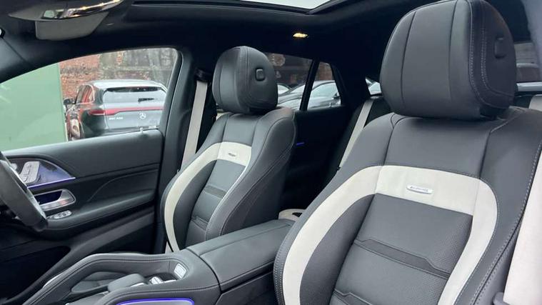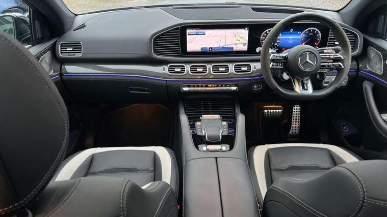 12.3 High resolution wide screen cockpit display with choice of three display styles Classic, Progressive or Sport and unique ambient lighting setting, 360 degree view camera, Active parking assist with PARKTRONIC, AMG track pace, Attention assist, Brake wear warning display, Direct steer speed sensitive steering, DYNAMIC SELECT with a choice of driving modes (ECO, Comfort, Sport and Individual), Easy-pack tailgate - Powered opening/closing automatically, ECO start/stop function, Hard-disk navigation, Head up Display, MBUX augmented reality for navigation and live traffic, MBUX Interior assistant, MBUX voice control activated by keywords "Hey Mercedes", Mercedes Benz emergency call system, Mercedes me connect - vehicle set up and monitoring, Outside temperature display, Pre-installation for digital key transfer, Service indicator (ASSYST), Status display for rear seat belts in instrument cluster, Traffic sign assist, Trip computer in multifunction display showing current fuel consumption, Wireless charging, Wireless smartphone integration including Apple CarPlay and Android auto, 85 litre fuel tank, AMG active ride control suspension with adaptive dampers, AMG rear axle limited slip differential lock, AMG Speedshift TCT 9 speed transmission, Carbon fibre engine covers, Petrol Particulate Filter (PPF), Additional USB connection, Bluetooth interface for hands free and audio streaming, Burmester surround sound system, DAB digital radio tuner, Front and rear USB ports, Sound personalisation, Adaptive brake lights, Aluminium look, illuminated running boards with rubber studs, AMG bodystyling front and rear aprons, AMG exhaust system with two black chrome rectangular twin tailpipes, AMG performance exhaust system, Auto headlights, Automatically dimming rear view mirror, Body coloured bumpers, Electric windows with one touch opening/closing and obstruction sensors, Electrically adjustable, heated, folding exterior mirrors, Exterior styling - front bumper, radiator grille and front air intakes, Heated windscreen washers, LED 3rd brake light, LED daytime running light signet, LED rear lights, Magic vision control, Multibeam LED headlights with adaptive highbeam assist plus, Panoramic sliding sunroof, Radio aerial integrated into rear window, Rain sensing windscreen wipers, Rear side wing doors, Rear wiper, Roof rail system, Surround lighting with animated projection of the AMG logo, Top surround of side windows in polished aluminium, Transparent Bonnet, Visible twin pipe exhaust system integrated into bumper, Waistline in polished aluminium, 2 rear head restraints, 3 seat bench in 2nd row, 3 spoke AMG Performance multifunction steering wheel in carbon fiber/MICROCUT, 4 way adjustable front head restraints and 2 way rear head restraints, 40:20:40 split folding rear seats, AMG floor mats, AMG steering wheel buttons, Automatic child seat recognition sensor, Black MICROCUT Headlining, Dinamica microfibre roof liner in black, Double sunvisor, Electric height/reach adjustable steering column, Electrically adjustable front seats with memory function, Front centre armrest with stowage compartment and illuminated grab handles, Gearshift paddles on steering wheel, Glove compartment - lockable, air conditioned and illuminated, Heated rear seats, Heated steering wheel, Illuminated front door sill with AMG lettering, Interior lighting - 64 colour Ambient lighting, Luggage compartment cover, Luxury head restraints in front, Quilted seat with AMG crest in headrests, Seat occupancy sensor for front passenger seat, Single front passenger seat, Soft close doors, Sports pedals in brushed stainless steel with rubber studs, Sunvisors with illuminated vanity mirrors, Temperature controlled cupholder, Thermotronic automatic 4 zone climate control, Touchpad, Air balance package - GLE, AMG Drivers package - GLE 63, AMG night package - GLE, Driving assistance package - GLE, Energizing plus package - GLE, Exclusive Trim package - GLE, Keyless go comfort package - GLE, Warmth comfort pack - GLE, Active bonnet, Airbags - driver and front passenger, front sidebag, pelvis bag and window airbags, Anti-lock braking system (ABS), Black seat belts, Childproof locks manually operated for rear doors and electrically operated for rear power windows, Drivers knee airbag, Electronic parking brake, Electronic Stability Programme (ESP), High performance perforated front brake discs and silver brake calipers with AMG lettering, ISOFIX child seat points with automatic child seat recognition, Pre safe impulse side, Red Brake caliper, Three point rear seat belts, Tyre pressure monitoring system, Warning triangle and first aid kit, Alarm system/interior protection/immobiliser, Central locking with interior switch, automatic locking and crash sensor with emergency opening function, Chrome surround in electric key, Dashcam, Guard 360 degree vehicle protection plus, Carbon fibre trim elements, Dashboard and door beltlines in nappa leather, 22" AMG cross spoke forged alloy wheels in matte black, TIREFIT with tyre inflation compressor,