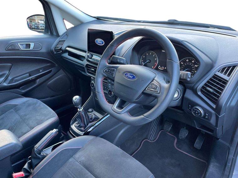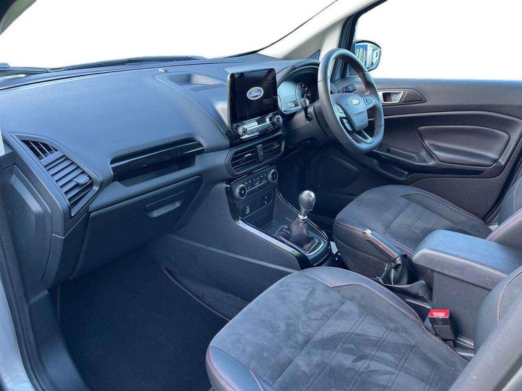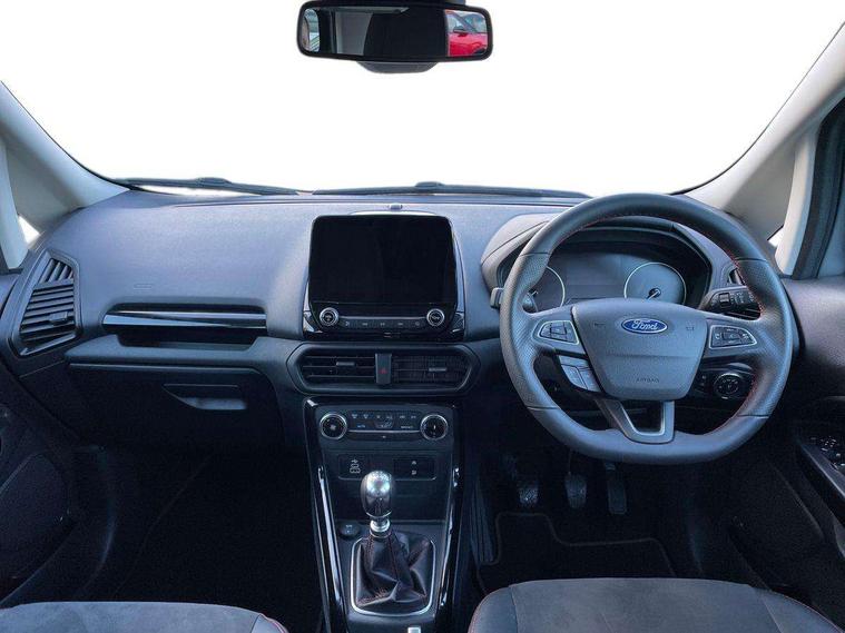 Cruise control, e-Call (emergency call), Easy fuel capless refuelling system, Ford SYNC 3 nav system with DAB radio, 8" screen, emergency assistance, Apple car play/Android auto, 2x USB, 6 speakers, Ford pass connect, Intelligent speed limiter, PAS, Rear parking sensors, Rear view camera, Traffic sign recognition, Trip computer, Sports suspension, Steering wheel mounted audio controls, Auto dimming rear view mirror, Automatic front wipers, Automatic headlights, Black roof rails, Body colour door handles, Body coloured bumpers, Chrome lower window surround, Electrically adjustable and heated door mirrors, Front fog lights, Front grille bars and surround in black, Headlight levelling control, Large rear roof spoiler, LED day running lights, LED third brake light, Power front and rear windows, Puddle lights, Quick-clear heated windscreen, Rear side wing doors, Rear wiper, ST Line body styling kit - Black headlamp bezel, front and rear sport bumpers, body colour lower door claddings, 12V socket in front and rear, 3 seat bench in 2nd row, 60/40 split rear seats, Ambient lighting, Centre console with sliding front armrest, Cooled glovebox, Courtesy lights with map reading light, Driver seat height/lumbar adjust, Driver's side glovebox, Driver/passenger sunvisors and lidded vanity mirrors, EATC - Electronic Auto Temperature control, Folding grab handles, Front head restraints, Front seat back map pockets, Illuminated glovebox, Illuminated luggage compartment, Isofix system on outer rear seats, Luggage compartment carpet, Neosuede/Partial sensico leather upholstery, Overhead console with sunglasses holder, Rake adjustable rear seats, Reach + rake adjustable steering column, Rear headrests, Sensico trimmed steering wheel, handbrake and gearshift gaiter with red stitching, Single front passenger seat, ST-Line Front floor mats with red stitching, Stainless steel sports pedals, Storage drawers under front seats, Tie down hooks, Variable boot floor, 3x3 point rear seatbelts, ABS, Autonomous emergency braking, Child locks on rear doors, Curtain airbags, Driver airbag, Drivers knee airbag, Electronic Stability Programme with hill launch assist, Front passenger airbag deactivation, Front side airbags, Passenger airbag, Pre collision assist system with AEB, Seatbelt reminder for driver and front passenger, Traction control, Tyre pressure monitoring system, Immobiliser, MyKey system, Remote central locking, Thatcham 1 volume sensing alarm, Low rolling resistance tyres, Tyre inflation kit,