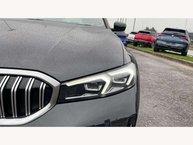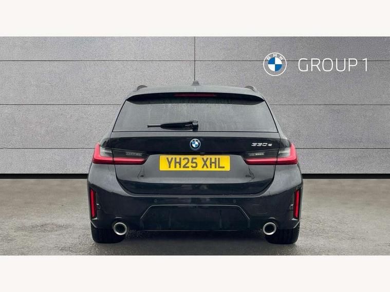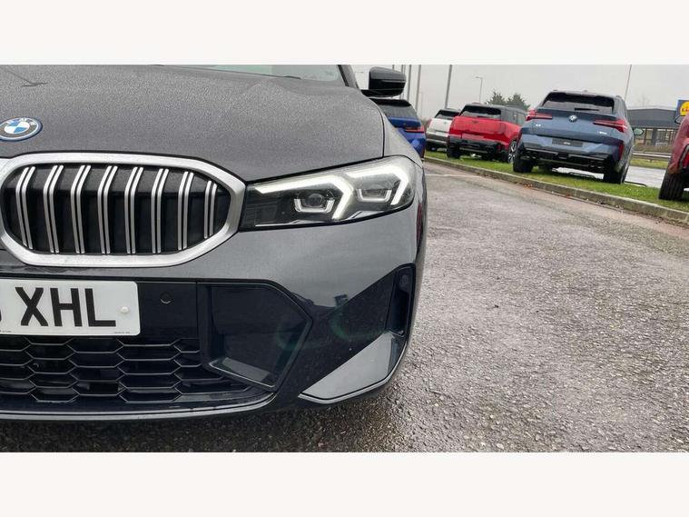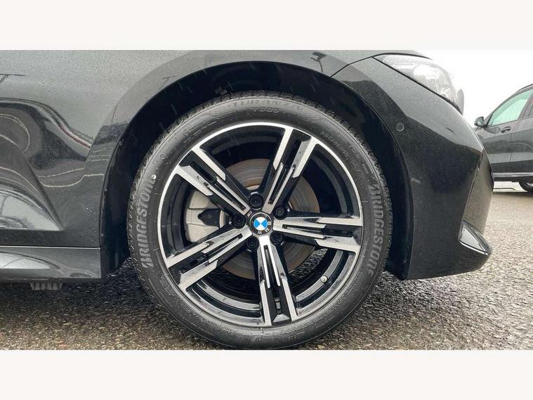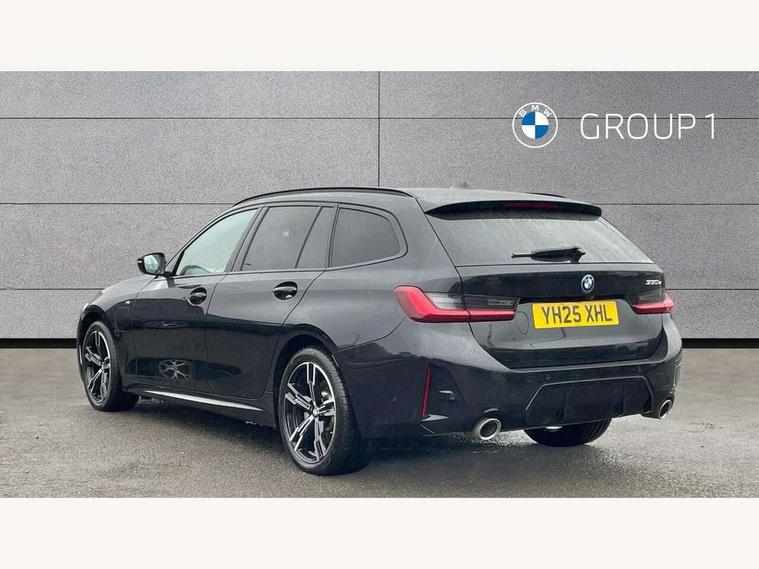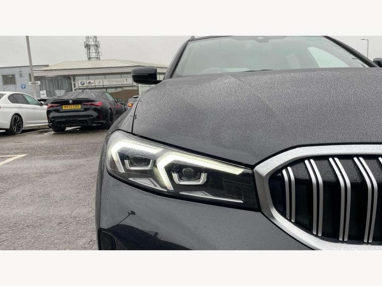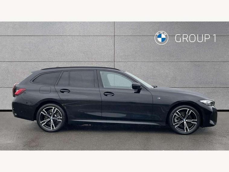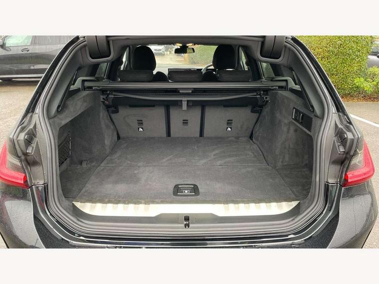 Active guard plus, Attentiveness assist, Automatic Start/stop button, Bluetooth Wi-Fi interface, BMW iDrive, BMW Teleservices, ConnectedDrive Services - last state call, Electric bootlid, Live cockpit plus with Navigation + 12.3" instrument display + 14.9" display, Intelligent voice assist, 2 USB, 4G LTE connect, Oil sensor for level and grade, Personal e-SIM, Shifting point display, Double joint spring strut front axle, Fuel tank breather system, Public mode 3 professional fast charging cable with 5m length, Steptronic Sport automatic transmission with steering wheel mounted gearshift paddles launch control and xtreme drive lever control, DAB tuner, 3rd brake light, Auto dimming rear view mirror, Automatic headlight beam throw control with load dependent regulating reaction, dynamic compensation of braking dive and acceleration squat, Bi-LED Low and high beam headlights, BMW emblem, engine compartment lid and tailgate, Body colour roof fin, Door sill strips, Electric windows - front and rear, with open/close fingertip control, anti-trap facility and comfort closing, Fading support, Follow me home headlight function, Front and rear bumper system with replaceable deformation elements, Front apron plastic in body colour, Fuel filler flap - right rear in body colour, Heat protection glazing on front windows and windscreen, Heated washer jets, High gloss chrome kidney frame with high gloss black kidney struts, High gloss shadow line roof rails, LED daytime running lights, LED rear lights, LED turn indicator, Licence plate panel integrated into front bumper and tailgate, M high gloss shadow line exterior trim, Matt black B-pillar finsher, Matt black window recess cover, Model designation on right side of tailgate, One piece front bumper cover including towing eye cover in body colour, Rain sensor with automatic headlight activation, Rear side wing doors, Rear wiper, Reversing lights, Side frame decorative moulding black matt, Trailer stabilisation logic, Visible exhaust tailpipe finisher, Welcome lights in interior and door handle area, 12V power socket in front storage compartment, 2 front cupholder in centre console with clamping elements and matt black inlay, 3 seat bench in 2nd row, 3 spoke M Sport multifunction flat bottom leather steering wheel, 3 zone automatic air conditioning, 40:20:40 split folding rear seat with loading system, Anthracite headlining, Armrest integrated in front and rear door trim + front centre console armrest, Battery in luggage compartment, BMW ID, Cruise control operation in steering wheel, Driving experience mode switch, Folding rear centre armrest with 2 cupholders, Front and rear headrests, Front and rear velour floor mats, Front reading light, Heated front seats, Height adjustable mechanically and infinitely variable steering column, Illuminated armrest storage compartment, Illuminated glove compartment, Illuminated luggage compartment, Lashing eyelets in luggage compartment, Single front passenger seat, Sunvisors with illuminated vanity mirrors and ticket pocket, Toolkit located in luggage compartment, Connected pack professional - 3 Series Saloon/Touring, Interior and exterior mirror pack - 3 Series Touring/Saloon, M sport exterior styling pack - 3 Series Saloon/Touring, Parking assistant pack - 3 Series, 3x3 point rear seatbelts, BMW emergency call, Child locks on rear doors, Crash sensor activating of airbags, Unlocking doors, hazard warning lights, interior light, safety battery terminal, Drive-off assistant, Driver and front passenger with seat occupancy detection for driver's and passenger side, Driver and passenger side airbags, body protection at side and airbags deploy from seat backrests, Dry braking, Dynamic brake control, Dynamic stability control + (DSC+) - Anti-lock Braking System (ABS) with brake assist and cornering brake control + Automatic Stability Control (ASC), Dynamic Traction Control - DTC, Electric parking brake including automatic hold function and automatic release of the parking brake when driving off, Electronic differential lock control (EDLC), Front airbag deactivation, Front airbags for driver and front passenger, Head airbags in 1st and 2nd row, head protection at side, curtain airbags open from headliner above 1st and 2nd row, Plastic fuel tank, Side impact protection, Tyre pressure sensors, Ventilated front and rear disc brakes, Warning triangle and first aid kit, Alarm system, Centre lock switch, Closing system with central locking, Electronic vehicle immobiliser, Locking wheel bolts, Tyre repair kit,
