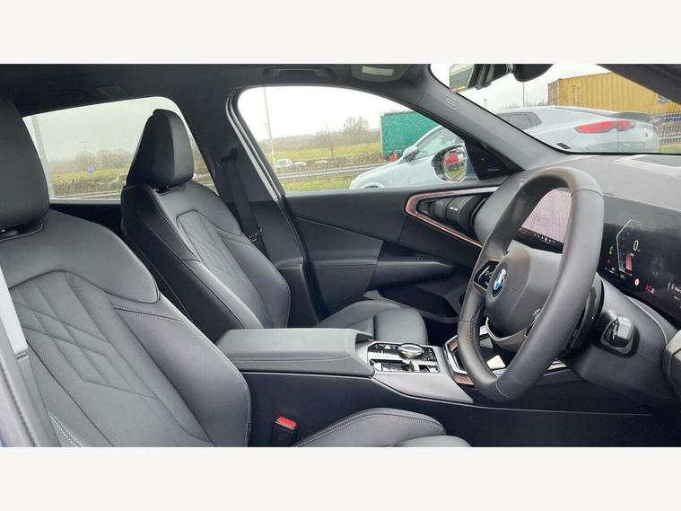 Active guard professional, Attentiveness assist, Automatic operation of tailgate, BMW ConnectedDrive online services, BMW iDrive, BMW Live cockpit plus, BMW Online services, BMW Teleservices, Brake pad wear indicator, Condition based service, Cruise control with brake function + speed limiter, Drive off assistant, Driving Assistant Plus Preparation, Flat tyre monitor, Language version English, My Mode - Personal, Efficient, Sport, Relax, Expressive, Reversing assist camera, Servotronic system, Variable sport steering, Dynamic stability control, Multiple control arm rear axle, Steptronic transmission with gearshift paddles, Two-joint strut-type front axle with tension strut, DAB tuner, Personal eSim, 4 tailpipe tips, B-pillar trim panel in black high-gloss, BMW badge on front and rear, BMW M-specific front/rear bumpers and side sills, BMW M-specific radiator grille with horizontal bars in Dark Silver and M logo, Body colour mirror caps, Daytime running lights, Door handles flush to the surface with lock barrel on driver's side, Dynamic brake lights, Electric adjustable and heated door mirrors, Electric window trap release and convenient opening/closing feature, Headlight beam throw control, Heated rear window, Heated windscreen washer jets, High beam assistant, LED 3rd brake light, LED rear lights, LED tail lights, LED turning indicators, Locking of the doors, M-specific Exterior mirrors, Mirror base and mirror blade in satinised aluminium, Mirror triangle in black high-gloss, Model inscription on right tailgate, Rain sensor with automatic headlight activation, Rear side wing doors, Rear wiper, Reversing light, Side window frame in black high-gloss, Windscreen wipers, 12v power socket in front centre console and luggage compartment, 2 x USB Type C ports for charging and data transmission (front centre console) and 2 x USB Type C ports for charging (rear centre console), 3 rear headrests, 3 seat bench in 2nd row, 3 zone automatic air conditioning, 40:20:40 split folding rear seat with loading system, Ambient lighting, Electric adjustable seats with memory function, Floor mats in velour, Footrest and pedals in black plastic, Four grab handles integrated in roof lining, Front armrest with integrated control panel, Front centre console trim in black high-gloss, Front head restraints, Front passenger seat, Front sports seats, Glove compartment, i-Size / ISOFIX attachment points on both outer rear seats, with covers in black, Interior door handles in dark chrome, Luggage compartment separating net, Multifunction steering wheel, Rear side armrests integrated into door trim, Selector lever with toggle operation, Steering column adjustment, Sun visors with illuminated vanity mirrors, Three upper retaining strap clips integrated into the rear panels of the seat backrests, Through loading system, Two front cupholders and two in the rear center armrest, Wireless charging tray, Connected pro package - X3, Interior and exterior mirror package - X3, 3 point seatbelts, Airbag deployment is controlled with respect to the intensity and scope, Anti-lock braking system (ABS), Automatic hold function, BMW emergency call, Brake assist, Brake drying, Brake energy regeneration, Braking readiness, Central airbag, Child locks on rear doors, Cornering brake control (CBC), Crash Sensor - activation of central locking release, hazard warning light and interior lighting, Driver and front passenger front and side airbags, Dynamic brake control, Electromechanical parking brake, Front and rear disc brakes, Head airbags, Integrated braking system, Post Crash Collision Warning with braking function, Trailer stability control, Tyre pressure sensor, Warning triangle, Alarm system, Closing system with central locking, Comfort access system with BMW digital key plus, Locking wheel bolts, Start/stop button with keyless motor start with acoustic drive, Tyre repair kit plus,