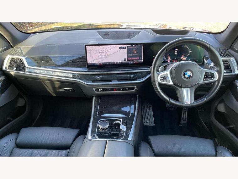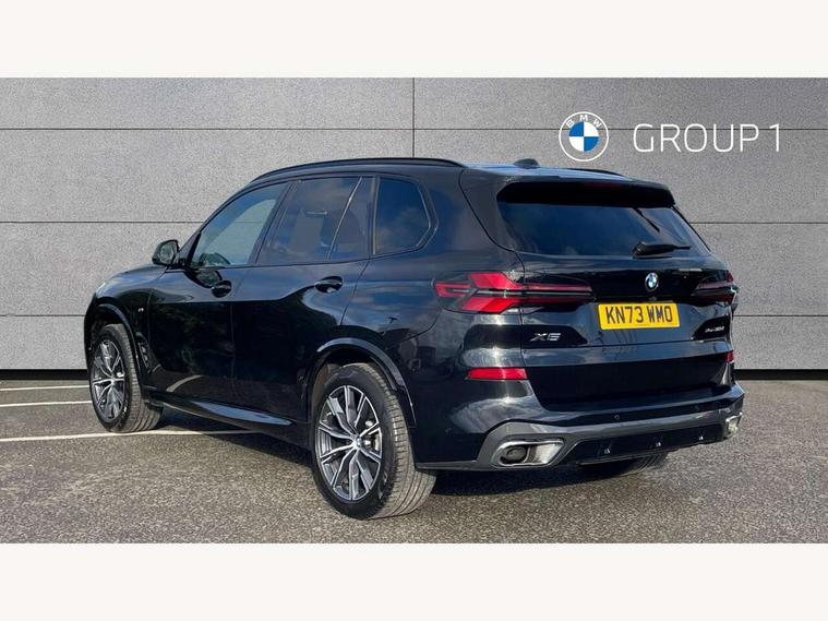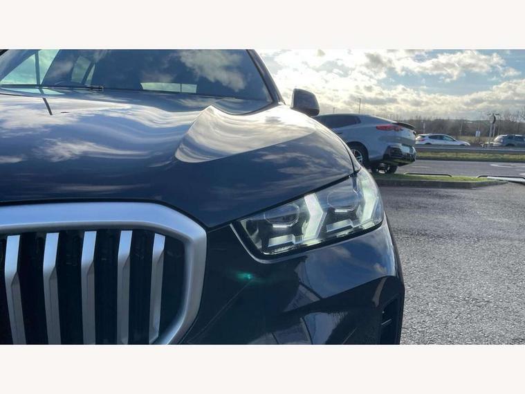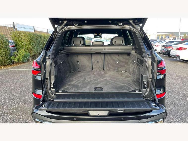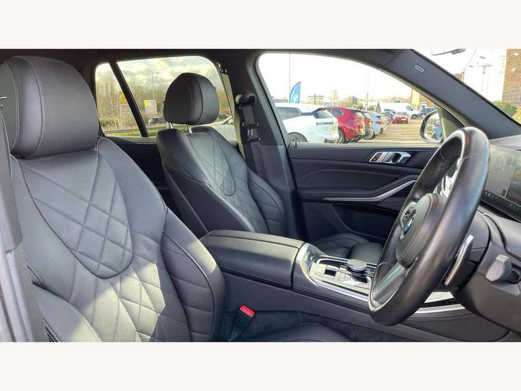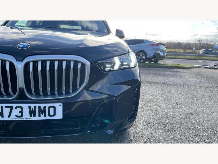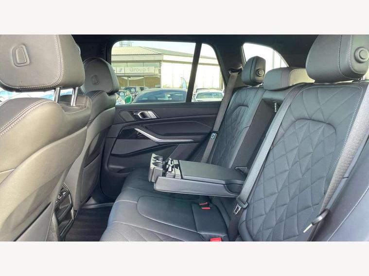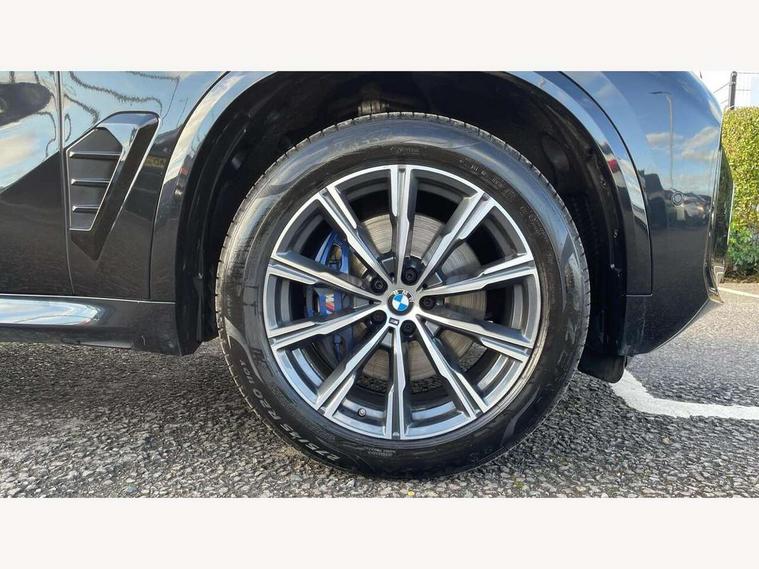 Attentiveness assist, Automatic tailgate operation, BMW ConnectedDrive online services, BMW live cockpit + with curved 12.3 instrument cluster/14.9 central display, nav/Tuner with diversity reception, RDS/4GLTE/remote software upgrade, BMW Recovery system, BMW Teleservices, Condition based service, Cruise control with brake assist, eCall emergency call system, Enhanced bluetooth with wireless charging, Integrated owner's handbook, PAS, Speed limiter, Wi-Fi hotspot, Drive performance control with ECO PRO comfort + sport mode, Eight speed steptronic sport automatic transmission and gearshift paddles on the steering wheel, Hi-Fi loudspeaker system, Adaptive LED Headlights, Front and rear electric windows, High beam assistant, High gloss black shadow line roof rails, LED daytime running lights, Rear side wing doors, Third brake light in rear spoiler, Variable intermittent rear wash/wipe, 12V - Power sockets with 2x centre console and 1x luggage compartment, 3 seat bench in 2nd row, Foldable rear centre armrest with 2 cupholders and storage compartment, Front and rear side armrest integrated into door trim, Headrests for all seats, Luggage compartment separating net, Single front passenger seat, Three spoke sport M leather steering wheel, Velour floormats, Ambient light interior pack - X5, Driving assistant pack with radar based driver assistance system - X5, Expanded exterior mirror pack - X5/X5 M, M aerodynamics pack - X5, 3 rear seatbelts, Active protection, Airbags - driver/front passenger, rear and side, first and second row seats head airbags, front passenger seat airbag deactivation + knee airbag, Anti-lock braking system (ABS), Automatic Stability Control (ASC), Brake energy regeneration, Cornering brake control (CBC), Crash sensor activating central locking release, hazard warning lights, fuel cut off, interior lighting + activation of safety battery terminal clamp, DSC - Dynamic Stability Control, Dynamic Traction Control - DTC, Electromechanical parking brake with automatic drive away release and auto hold function, Electronic brake force distribution, Hill start assistant, M Sport blue painted brake calipers with 'M' designation, Mechanical child proof lock on rear doors, Tyre pressure monitoring system, Tyre pressure sensors, Ventilated front and rear disc brakes, Warning triangle and first aid kit, Closing system with central locking, Comfort access system, Locking wheel bolts, Sensatec instrument panel,