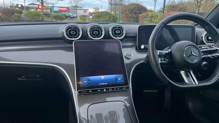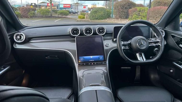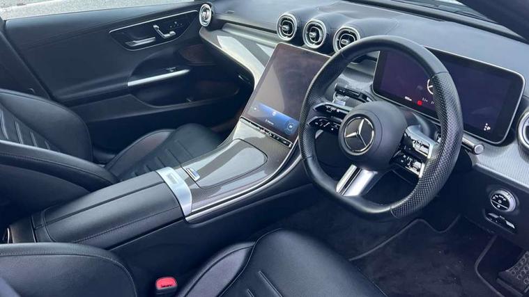 11.9" high resolution multimedia colour display, 12.3" digital instrument cluster display, Active blind spot assist, Active brake assist plus, Active lane keeping assist, AMG DYNAMIC SELECT with a choice of driving modes (Slippery, Comfort, Sport, Sport+, Individual), Attention assist, Cruise control with speedtronic variable speed limiter, E-call, Extended MBUX functions, Finger print sensor, Fluorescent jacket for driver, MBUX augmented reality for navigation, MBUX navigation premium, MBUX voice control activated by keywords "Hey Mercedes", Mercedes connect me, Mercedes me remote services, Outside temperature gauge, Pre-installation for digital key transfer, Remote boot release, Service indicator (ASSYST), Smartphone integration, Sports direct steer speed sensitive steering, Status display for rear seat belts in instrument cluster, 66l fuel tank with increased capacity, 9G TRONIC 9 speed automatic transmission, Agility control sports suspension and lowered by 15 mm, Petrol Particulate Filter, Sporty engine sound system, DAB Digital radio, MBUX multimedia system, Adaptive brake lights, Adaptive high beam assist plus, AMG body styling front apron, rear apron and side skirts, AMG front bumper with sporty air intakes and chrome elements, AMG rear bumper with high gloss chrome elements, AMG side skirts in vehicle colour, B-pillar trim in glossy black, Body coloured bumpers, Body coloured door mirrors, Chrome beltline trim, Daytime running lights, Digital light LED headlamps, Electric windows with one touch opening/closing and obstruction sensors, Electrically adjustable and heated door mirrors, Green tinted glass, LED Indicators, LED tail lights, LED third brake light, Powerdomes on bonnet, Privacy glass, Radiator diamond grille with integrated Mercedes Benz star and louvre silver with chrome pins, Radio aerial integrated into rear window, Rain sensor with automatic windscreen wiper activation, Rear boot, Rear side wing doors, Two visible exhaust pipes integrated into rear bumper, 3 seat bench in 2nd row, 3 spoke flattened bottom AMG multifunction steering wheel in black nappa leather with chrome inserts and perforated leather in grip area, 40:20:40 split folding rear bench seat, AMG sports seats, Artico man-made leather upholstery, Audio and onboard settings control on multifunction steering wheel, Auto Mercedes-Benz child seat recognition sensor, Black air vents with silver chrome elements, Black floor mats with AMG lettering, Black roof liner, Door trim elements high gloss black with silver chrome surroundings and switches, Double cupholder in centre console, Electrically height/reach adjustable steering column, Folding rear seat backrest, Front and rear head restraints, Front centre armrest with storage compartment, Gearshift paddles on steering wheel, Heated front seats, Illuminated door sills with Mercedes Benz lettering, Illuminated glove compartment stowage, Interior lighting - 64 colour Ambient lighting, Overhead control unit in high gloss black, Rear top tether child seat ISOFIX attachment, Single front passenger seat, Sports pedals with stainless steel surfaces and rubber studs, Sunvisors with illuminated vanity mirrors, THERMATIC 2 zone automatic climate control, Interior lighting package - C Class, Memory package - C Class, Mirror pack - C Class, Parking package with 360 degree camera - C Class, Seat comfort pack - C Class, Stowage space pack - C Class, USB package - C Class, 3 rear 3 point seatbelts, Active bonnet pedestrian safety measure which detects an impact and raises bonnet, Adaptive brake system with HOLD function and brake drying in the wet, Anti-lock braking system (ABS), Black seat belts, Brake calipers with Mercedes-Benz lettering + perforated front brake discs, Child proof door locks, Drivers knee airbag, Drivers pelvis airbag, Dual stage driver/passenger airbags, Electric parking brake, Electronic Stability Programme (ESP), Front centre airbag between driver and front passenger seats, Front side airbags, Larger brake discs on front axle, Rear seatbelt warning indicator, Sports braking system with perforated front disc brakes, Tyre pressure monitoring system, Warning triangle and first aid kit, Window airbags for driver, front passenger and rear passenger, Central locking with interior switch, automatic locking and crash sensor with emergency opening function, Chrome surround in electric key, Keyless Go, URBAN GUARD vehicle protection (Thatcham Category 1) consisting of break-in, anti-theft alarm system (ATA), interior monitoring and tow-away protection, Artico man-made leather dashboard with contrast stitching, Centre console trim in metal weave, 19" AMG multi spoke light alloy wheels painted himalayas grey with high sheen finish, Summer tyres, TIREFIT with tyre inflation compressor,