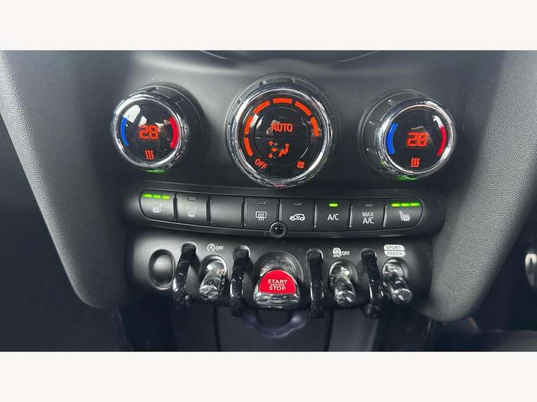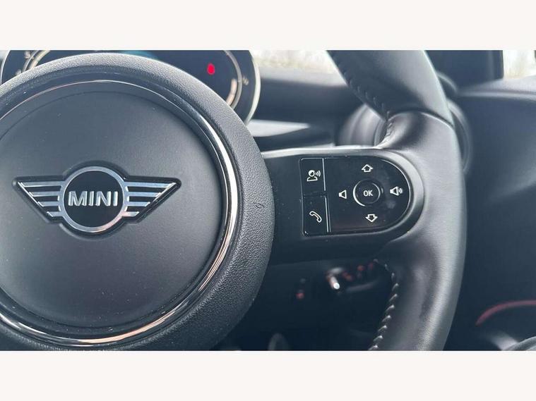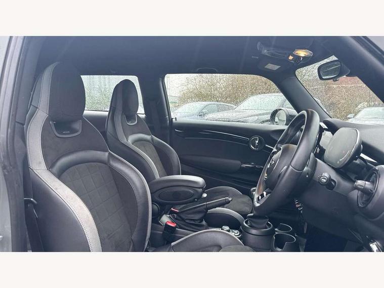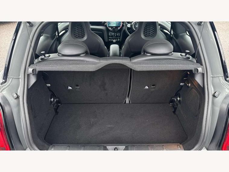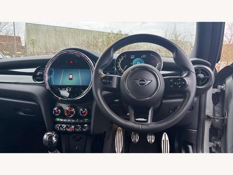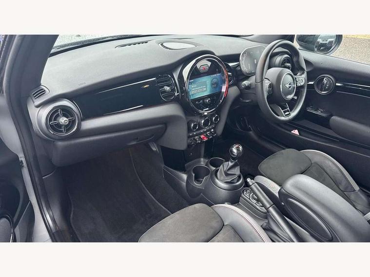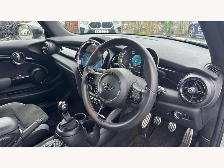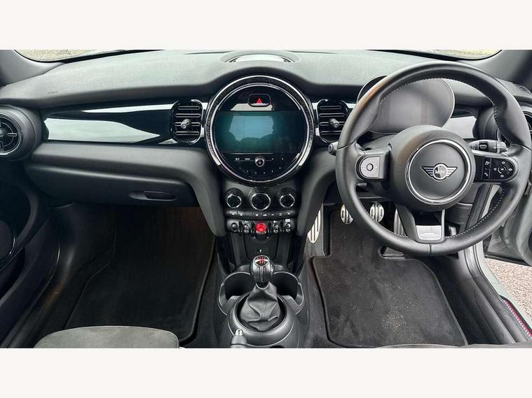 Apple CarPlay, Automatic start/stop function with brake energy recuperation, Compatible mobile phone bluetooth with audio streaming, Cruise control with brake assist, Electro-mechanical speed dependant steering assistance, Flexible car sharing preparation, Instrument cluster, MINI Driving Modes - centre toggle switch to control driving setting (sport, mid and green), Mini E-call, MINI TeleServices, On board computer, Rear park distance control, Service interval indicator, 6 Speed manual transmission including gear change indicator display, Double Vanos system, Fully variable valve control, High precision injection, Intelligent adaptive suspension, Performance Control, 8.8" touchscreen with LED ring, FM tuner and DAB digital radio, 3rd brake light, Automatic headlight activation switch, Body colour fuel filler cap, Chrome border high gloss black slats radiator grille, Dynamic brake lights, Electric front windows, Exhaust tailpipe on left with chrome finisher, Heated rear window, Heated windscreen washer jets, JCW Aerodynamic kit - Front and rear bumpers with sporty JCW styling and part-painted side sills with MINI John Cooper Works door sill finishers, John Cooper Works rear spoiler, LED headlight with closed ring and daytime driving lights, Metal door sill strips with MINI imprint, Model logo Cooper on right of tailgate, Rain sensor window wipers, Rear fog lights, Rear LED lights with union jack design, Rear window wiper, Side scuttle panel with integrated indicator, Sun/heat protection glass, White indicator lenses, 12V Accessory socket in centre console, 2 seat bench in 2nd row, 4 lashing eyes in luggage compartment, 60/40 split folding rear seat, Anthracite headliner including grab handles and clothes hooks, Carbon black colour line - Knee roll and door armrest, Chrome interior highlights, Cupholders, Front and rear isofix with front passenger airbag deactivation, Front floor mats in velour, Glove compartment, Height and length steering column adjustment, Interior lighting with 12 different colours across the dashboard, underneath door bezel with illuminated laser-engraved design on central display, JCW Sport seats with integrated headrests, adjustable thigh support and John Cooper Works logo, Leatherette gearshift lever and handbrake gaiters, LED reading lights, vanity mirror lights, front foot well light and spotlight on front seats, Manual air conditioning, Mechanical seat adjustment - forward/back & backrest for front seats and driver seat height adjust, Multifunction steering wheel, Passenger seat height adjuster, Single front passenger seat, Storage compartments in doors, Sunvisors with vanity mirrors, Walknappa leather steering wheel with grey seam and John Cooper Works badge on Piano Black lower steering wheel spoke, Piano black exterior pack - Mini Hatchback Cooper, 3 point seatbelts on all four seats, 6 Airbags - front, side, head and seat belt tensioners, Anti-lock braking system (ABS), DSC - Dynamic Stability Control, Front and rear disc brakes, Single tone fanfare horn, Tyre pressure monitoring system, Alarm system with tilt sensor, monitoring doors, bonnet interior and tailgate, Electronic vehicle immobiliser, Start/stop toggle with keyless go, Piano black interior trim, Tool kit,