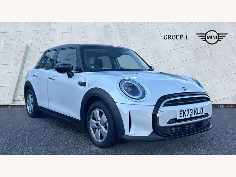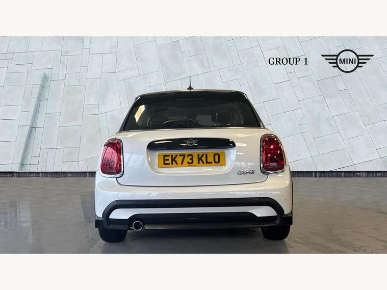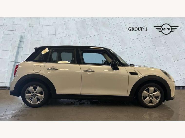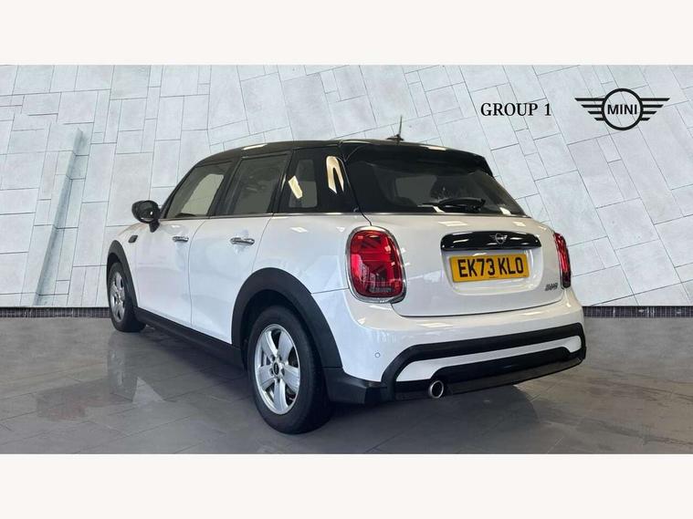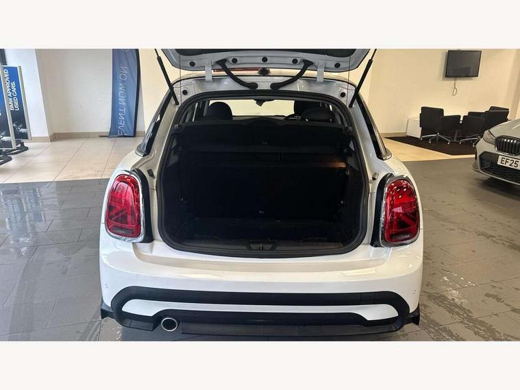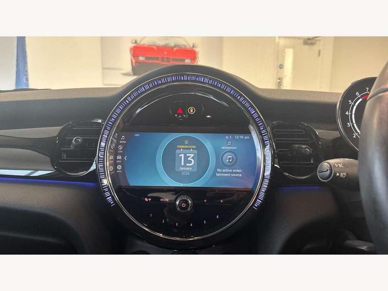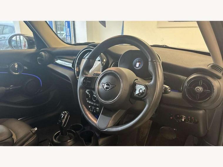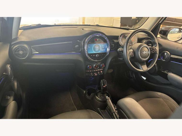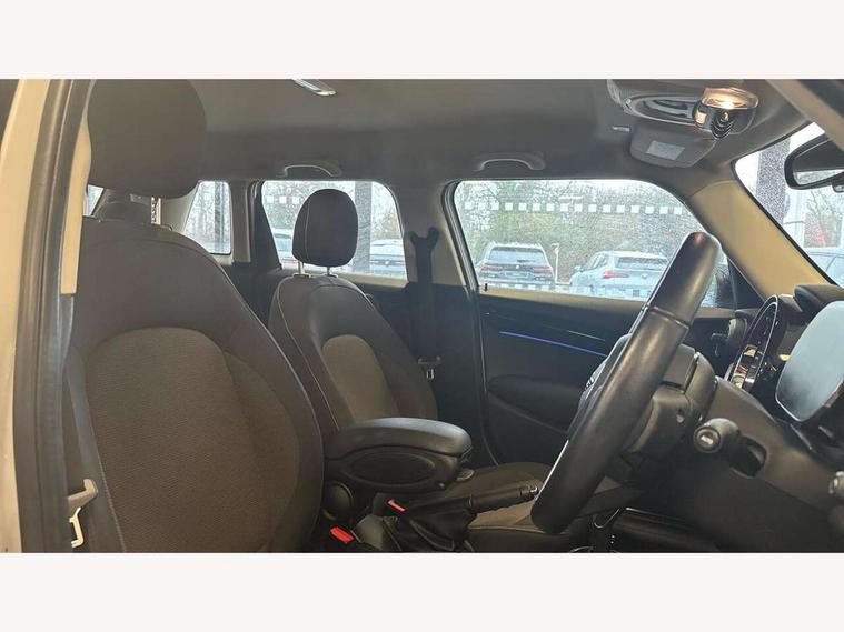 Apple CarPlay, Automatic start/stop function with brake energy recuperation, Compatible mobile phone bluetooth with audio streaming, Electro-mechanical speed dependant steering assistance, Flexible car sharing preparation, Mini E-call, MINI TeleServices, On board computer, Service interval indicator, Double Vanos system, Fully variable valve control, Gear change indicator display, High precision injection, Performance Control, Steptronic transmission with double clutch, 8.8" touchscreen with LED ring, FM tuner and DAB digital radio, 3rd brake light, Automatic headlight activation switch, Body colour fuel filler cap, Chrome border high gloss black slats radiator grille, Dynamic brake lights, Electric front+rear windows, Exhaust tailpipe on left with chrome finisher, Heated rear window, Heated windscreen washer jets, Metal door sill strips with MINI imprint, Model logo Cooper on right of tailgate, Rain sensor window wipers, Rear fog lights, Rear LED lights with union jack design, Rear side wing doors, Rear window wiper, Side scuttle panel with integrated indicator, Sun/heat protection glass, White indicator lenses, 12V Accessory socket in centre console, 3 seat bench in 2nd row, 4 lashing eyes in luggage compartment, 60/40 split folding rear seat, Ambient lighting, Carbon black colour line - Knee roll and door armrest, Chrome interior highlights, Cupholders, Front and rear head restraints, Front and rear isofix with front passenger airbag deactivation, Front and rear velour floor mats, Glove compartment, Height and length steering column adjustment, Interior lighting with 12 different colours across the dashboard, underneath door bezel with illuminated laser-engraved design on central display, Leatherette gearshift lever and handbrake gaiters, LED reading lights, vanity mirror lights, front foot well light and spotlight on front seats, Mechanical seat adjustment - forward/back & backrest for front seats and driver seat height adjust, Multifunction steering wheel, Satellite grey headlining including grab handles and clothes hooks, Single front passenger seat, Sport leather steering wheel with speed limiter and audio/communication controls, Storage compartments in doors, Sunvisors with vanity mirrors, 3 point seatbelts on all five seats, 6 Airbags - front, side, head and seat belt tensioners, Anti-lock braking system (ABS), Child locks on rear doors, DSC - Dynamic Stability Control, Front and rear disc brakes, Hill start assist, Single tone fanfare horn, Tyre pressure monitoring system, Alarm system with tilt sensor, monitoring doors, bonnet interior and tailgate, Electronic vehicle immobiliser, Start/stop toggle with keyless go, Piano black interior trim, Tool kit, Tyre repair kit,