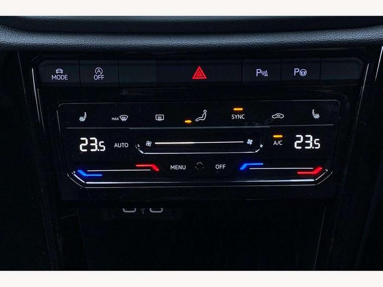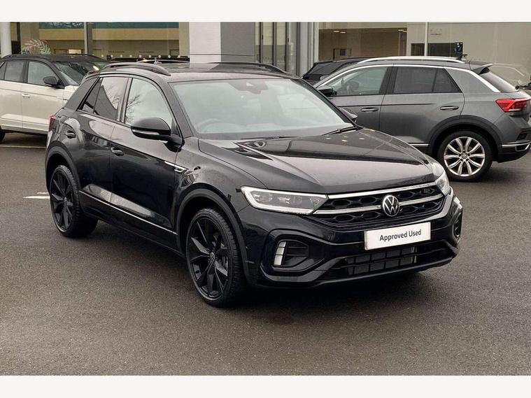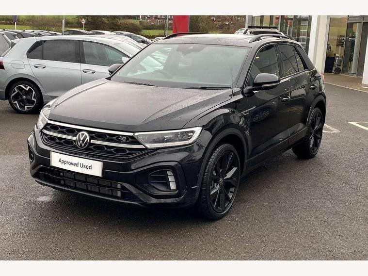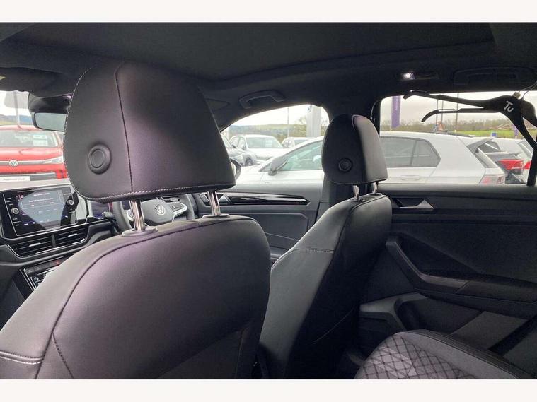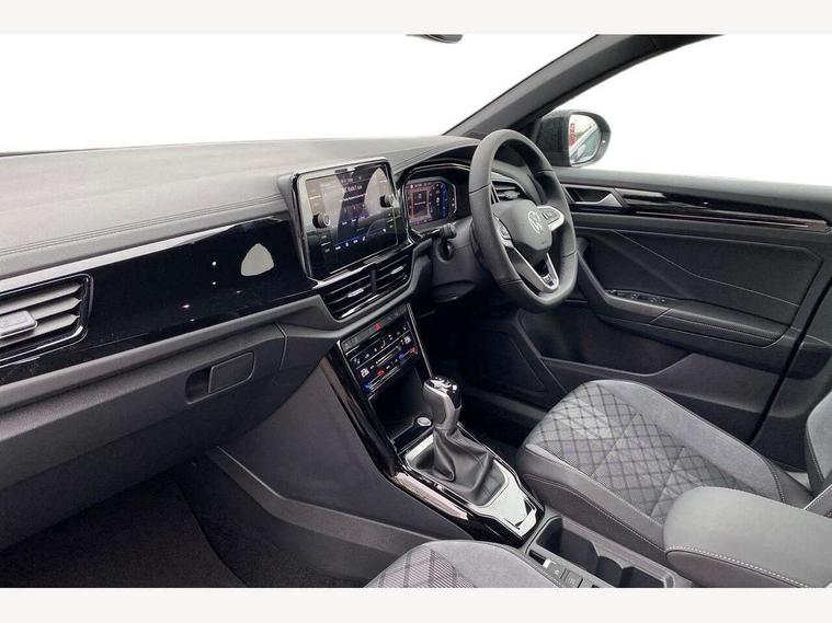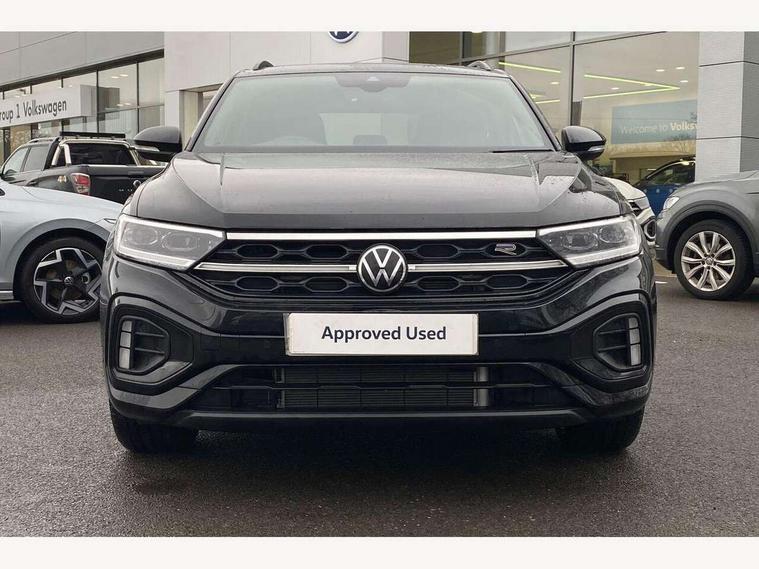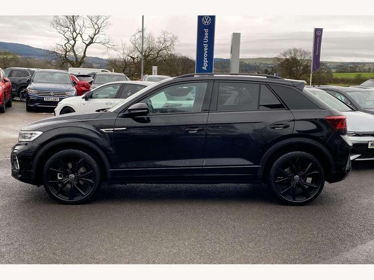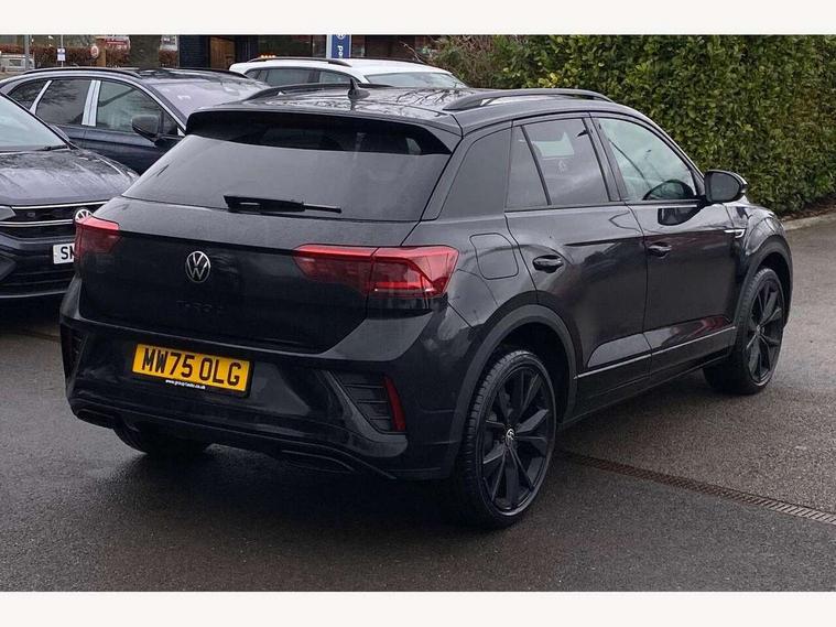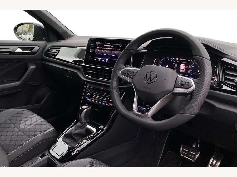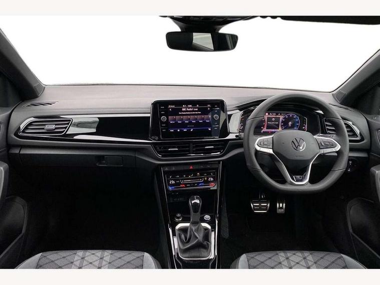 10.25" Digital cockpit pro, Advanced driver attention and drowsiness monitor, Emergency call service, Lane keeping system Lane Assist, Mobile phone interface, Modified key software - reduce switch off time for key status change to Long no motion, Online services, Park assist including front and rear parking sensors, Power assisted speed sensitive steering, Rear view camera, Service interval indicator, Tailgate/trunk lid release from outside, Think blue trainer driver tips and journey analysis, Warning sound and light for front seatbelts unfastened, Wireless app connect, Battery regeneration during braking, Rear shock absorption chassis with increased ride height, Start/stop function with battery regeneration, DAB Digital radio, Diversity antenna for FM reception, Music playback - MP3, WMA and AAC files, SD card slot, Simultaneous pairing of 2 compatible mobile devices, Title and cover art display, We Connect and We Connect Plus functionality, Advanced dynamic light assist for LED matrix headlights, Auto dimming interior rear view mirror, Automatic hazard lights activation under emergency braking, Black roof rails, Dynamic cornering light, Dynamic headlight range control with self adjusting whilst driving, Electrically adjustable and heated door mirrors, Extended roof spoiler, Exterior ambient lighting, Exterior mirrors aspherical on driver side, convex on front passenger side, External USB type C socket and charging sockets, Front windscreen wiper with intermittent wipe and 4 position delay, Heated rear window, Illuminated front grille, IQ LED matrix headlights, LED 3rd brake light, LED rear number plate lights, LED rear tail lights with dynamic turn signal, LED separate daytime running light, Light mode for poor weather, rain, fog or snow, Power windows with comfort operation and circuit breaker, Privacy glass for rear side windows and rear window, R-Line design body coloured bumpers, Rain sensor, Rear exhaust tailpipe, Rear fog light on one side and reversing lights on both sides, Rear side wing doors, Rear wash/wipe with intermittent wipe setting, Remote electrically foldable door mirrors, puddle lights and reverse activated passenger's door mirror, Tilting and sliding panoramic sunroof with rear panoramic sunroof, 12V power socket in centre console, 3 rear head restraints, 3 seat bench in 2nd row, 4 load lashing points in luggage compartment, Air care climatronic air conditoning system with active combination filter and 2-zone temperature control, Chrome plated radiator grille inserts, air vent surrounds and light switch surrounds, Door and side trim panel with leatherette insert, Drawer under drivers seat, Front + rear carpet mats, Front centre armrest, Front comfort sports seats, Front cupholders x 2, Front footwell illumination, Front reading light, Front scuff plates with R Line logo, Front seat back storage pockets, Glove compartment door with light, Instrument lighting, white adjustable panel illumination, Interior ambient lighting and surround lighting, Interior light delay, Isofix child seat preparation, Leather gearshift handle, Load-through provision with cup holder when folded down ('Unsplit rear seat bench, split folding backrest, with centre armrest), Luggage compartment lighting, Non-folding front passenger seat backrest, Single front passenger seat, Stainless steel pedals, Storage compartment in left and right luggage area, Storage compartment in rear doors, Storage compartments in driver and front passenger doors, Sunvisors with illuminated vanity mirrors, Variable boot floor, height adjustable and removable, Black design pack - T-Roc black edition plus, Easy open package with safelock - T-Roc, Sport pack with sports suspension - T-Roc, 3 point height adj front seatbelts + pretensioners, 3 point seatbelts in outer rear with ECE label, ABS, Child locks on rear doors, City emergency braking and pedestrian monitoring, Driver and front passenger airbag with front passenger airbag deactivation, Driver and front passenger safety-optimised head restraints, Drivers seatbelt reminder, Electronic parking brake, Electronic Stability Control (ESC) inc EDL (Electronic Differential Lock) and ASR (Traction Control), Front and rear passengers curtain airbag system including front side airbags, Front disc brakes, Hill start assist, Predictive pedestrian protection, Rear disc brakes, Two tone horn, Tyre pressure loss indicator, Volkswagen roadside assistance, Keyless locking and starting system keyless access with safelock, Gloss deep iron dash trim, 19" Misano black diamond turned alloy wheels with low rolling resistance and anti theft wheel bolts, Tool kit, Trims for alloy wheels, Tyre mobility kit including compressor and sealing foam,