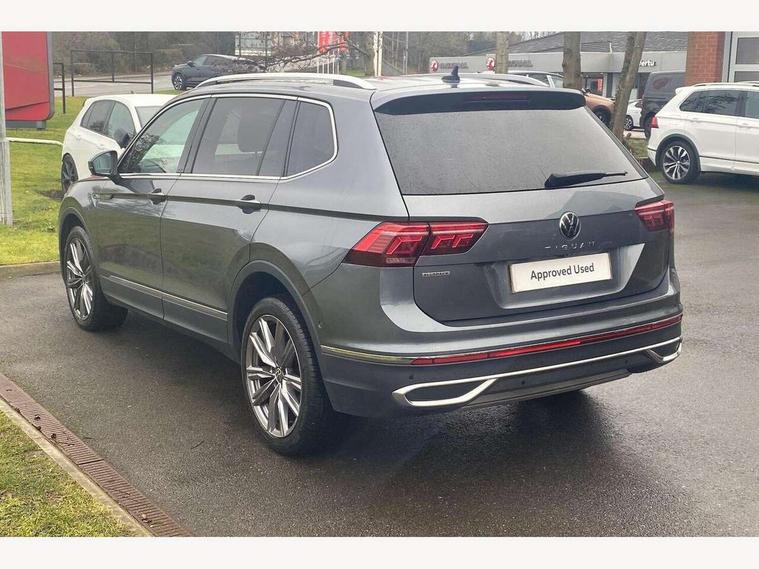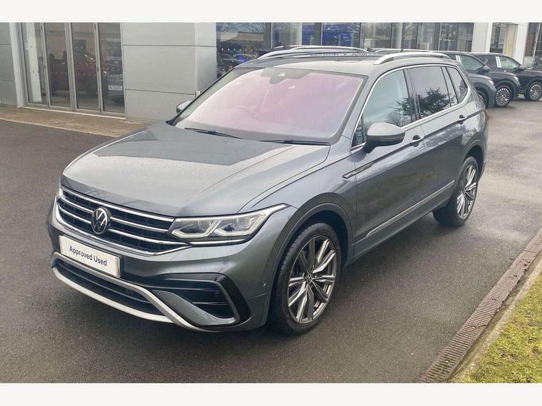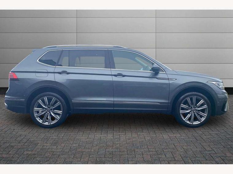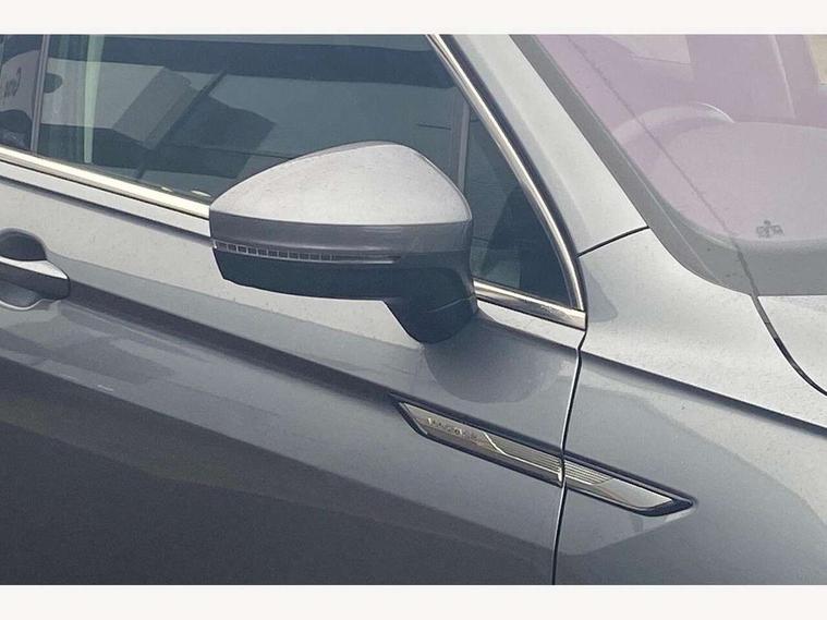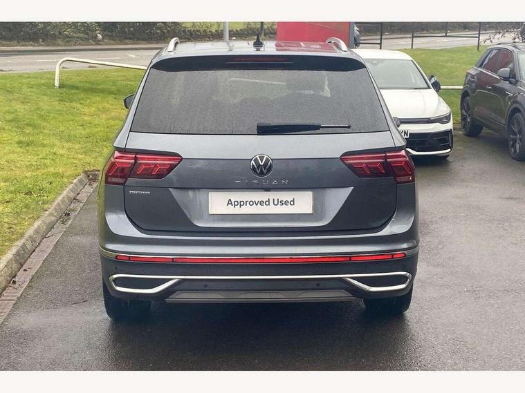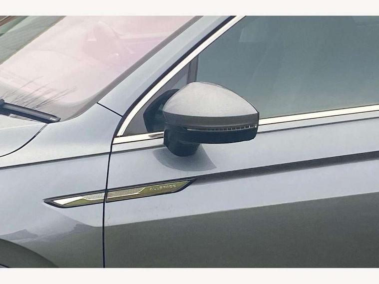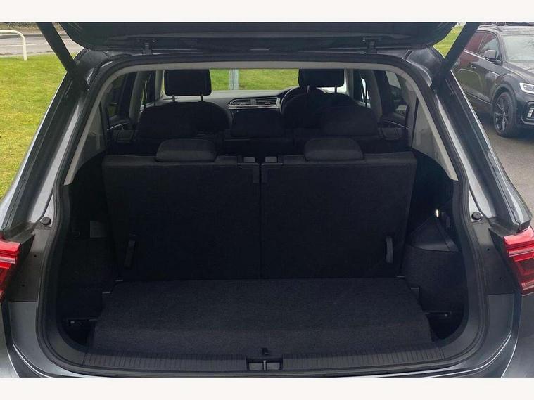 Adaptive cruise control, App-Connect, Digital cockpit pro, Driver alert system, Driver profile selection, Dynamic road sign display, eCall emergency call service, Electric boot lid, Lane change system side assist and rear traffic alert, Lane keeping system Lane Assist, Mobile phone interface comfort with inductive charging feature, Multifunction front facing camera, Power assisted speed sensitive steering, Speedo and rev counter, electronic odometer, trip, service interval display and exterior temperature gauge, Diesel particulate filter, Front wheel drive, Start-stop system with battery regeneration (recuperation - energy recovery during braking), 2 USB-C ports in the front, 1 USB-C charging socket on the center console in the rear, 8 Speakers, DAB Digital radio, Diversity antenna for FM reception, Radio, Auto dimming interior rear view mirror, Automatic headlight control system, Body coloured comfort bumpers, Chrome mouldings on side window, Coming/leaving home lighting function, Exterior badge deletion, Exterior mirror housings painted in silver, Heated windscreen washer jets, IQ light adv HBC, dyn light assist LED matrix headlamps, DH range, dark red LED rear combo light, poor weather, CL, LED headlamp with LED DRL and DCL - PXC, Privacy glass, Rain sensor, Rear fog light, Rear side wing doors, Rear wiper, Silver roof rails, Third brake light, Tilting and sliding panoramic sunroof, 12-volt outlet in centre console rear and luggage compartment, 12V socket in centre console, 3 head restraints in rear, 3 individual folding 2nd row seats, 3rd row 2 individual seats, Air Care Climatronic 3 zone automatic climate control with enhanced air filter and controls in the rear, Door and side trim panel, Drawers under front seats, Driver and front passenger seat height adjustment, Foldable front passenger seat backrest, Front + rear carpet mats, Front centre armrest, Front footwell illumination, Heated front seats, Illuminated scuff plates, ISOFIX anchorage points for mounting 2 child seats on rear seats and i-Size child seats, Leather gearshift handle, Leather-wrapped heated multi-function steering wheel with paddle shift, LED interior light with switch off delay/dimmer and 2 front/rear LED reading lights, Sun visors with illuminated vanity mirrors, Ambience pack - Tiguan Allspace, Driver assistance package - Tiguan Allspace, Easy open and close pack with safelock - Tiguan Allspace, 3 point seat belt for centre rear seat, 3 rear three point seatbelts, ABS+EBD+Brake assist, Driver and front passenger safety-optimised head restraints, Driver's and front passenger's airbag with front passenger's airbag deactivation switch, Electronic parking brake, Electronic Stability Control (ESC) inc EDL (Electronic Differential Lock) and ASR (Traction Control), Height adjustable front 3 point seatbelts + pretensioners, Manual rear child locks, Pedestrian monitoring, PreCrash preventive occupant protection Front and rear, Rear disc brakes, Side airbag in front and rear with curtain airbag, Two tone horn, Warning buzzer for seatbelts if unfastened, Anti theft alarm system with interior monitoring, backup horn and towing protection, Anti-theft wheel bolts, Electronic steering lock, Remote central locking with 2 remote folding keys, Chequered flag tinanium decorative inserts,