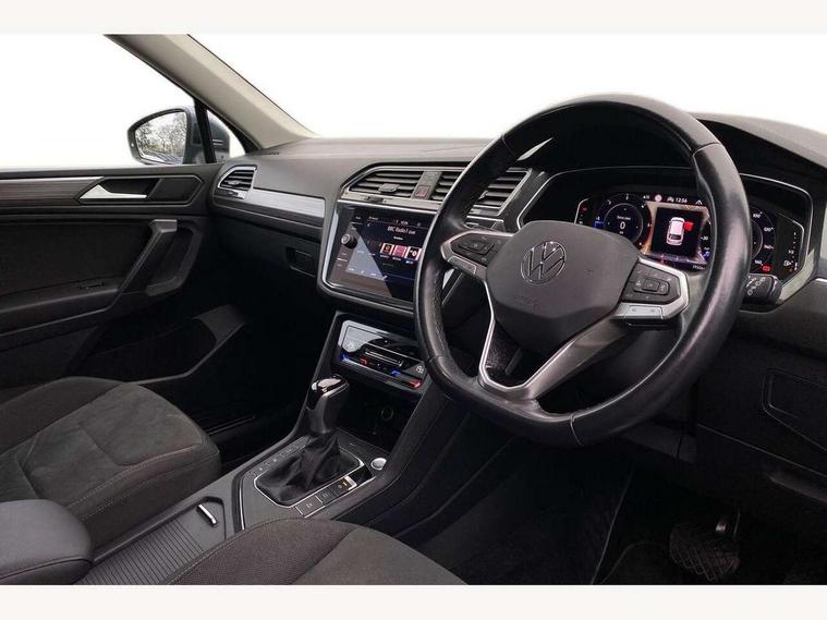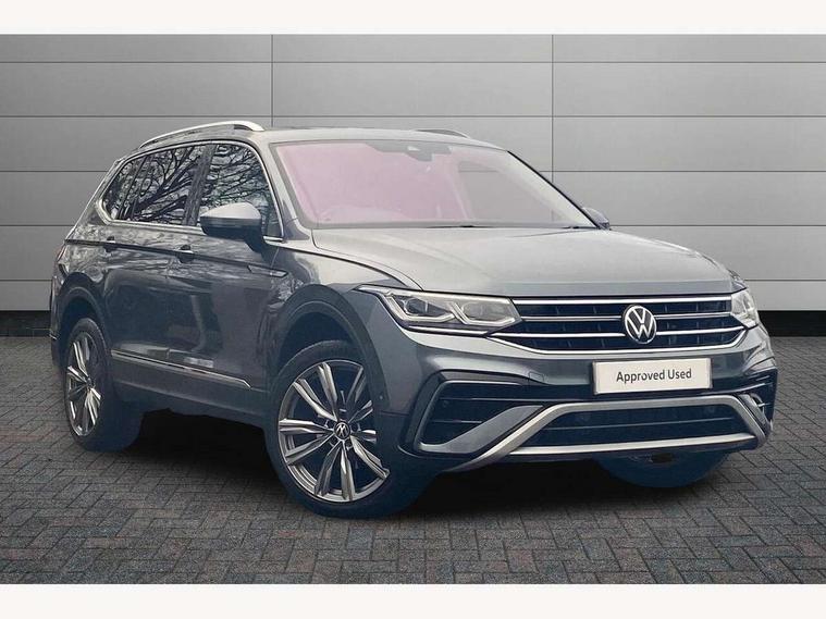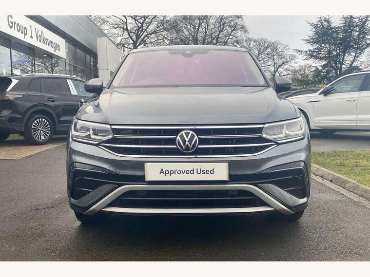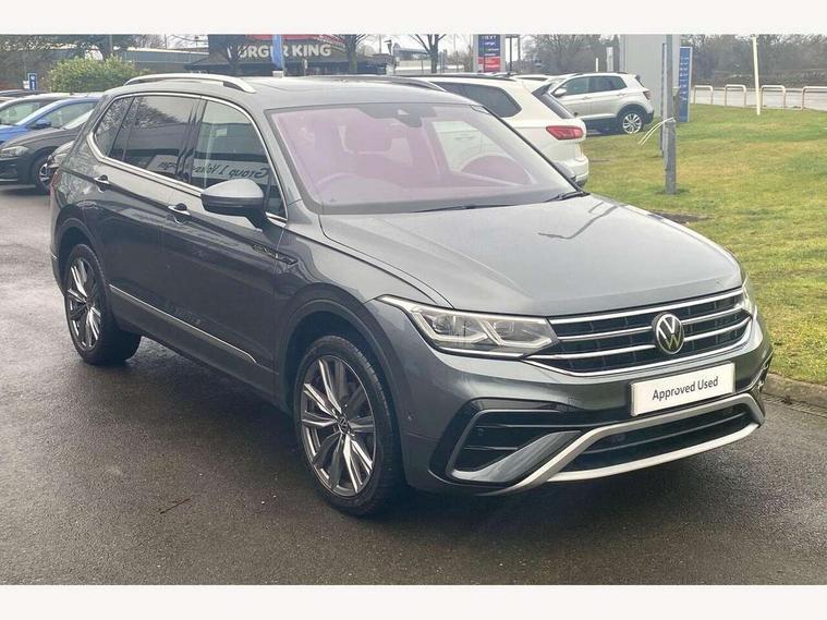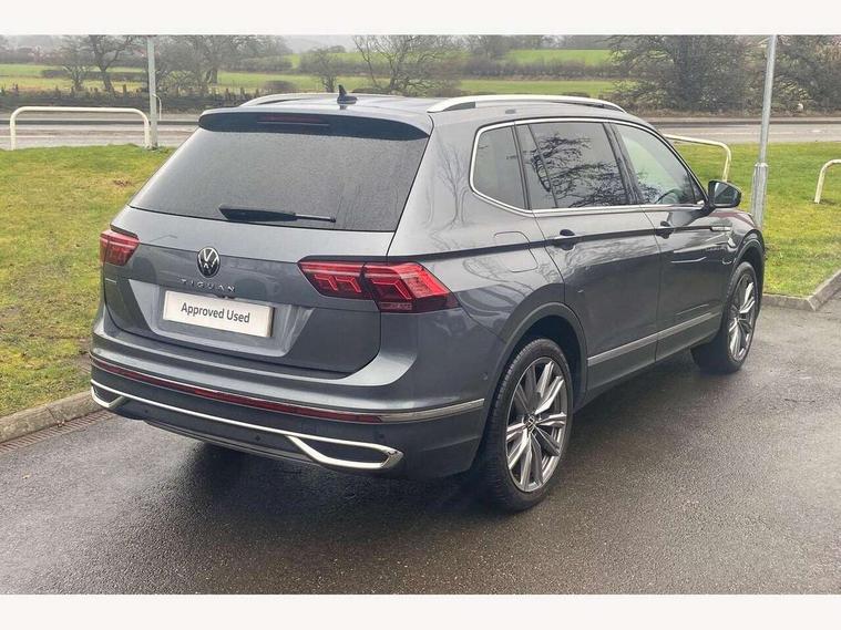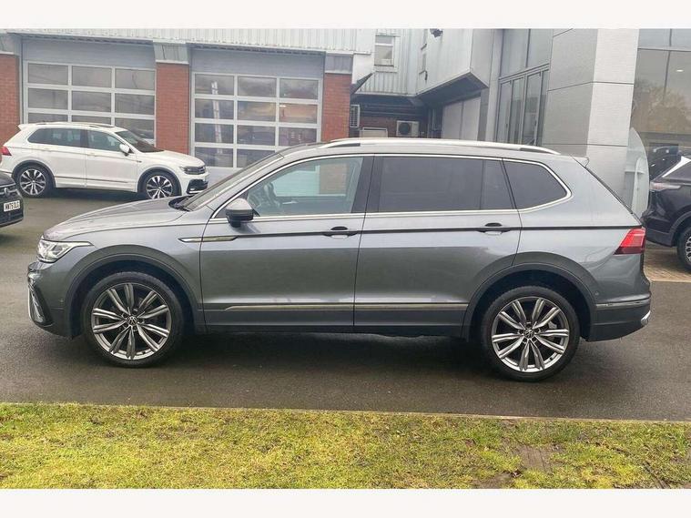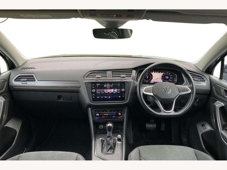 Adaptive cruise control, App-Connect, Digital cockpit pro, Driver alert system, Driver profile selection, Dynamic road sign display, eCall emergency call service, Electric boot lid, Lane change system side assist and rear traffic alert, Lane keeping system Lane Assist, Mobile phone interface comfort with inductive charging feature, Multifunction front facing camera, Power assisted speed sensitive steering, Speedo and rev counter, electronic odometer, trip, service interval display and exterior temperature gauge, Diesel particulate filter, Front wheel drive, Start-stop system with battery regeneration (recuperation - energy recovery during braking), 2 USB-C ports in the front, 1 USB-C charging socket on the center console in the rear, 8 Speakers, DAB Digital radio, Diversity antenna for FM reception, Radio, Auto dimming interior rear view mirror, Automatic headlight control system, Body coloured comfort bumpers, Chrome mouldings on side window, Coming/leaving home lighting function, Exterior badge deletion, Exterior mirror housings painted in silver, Heated windscreen washer jets, IQ light adv HBC, dyn light assist LED matrix headlamps, DH range, dark red LED rear combo light, poor weather, CL, LED headlamp with LED DRL and DCL - PXC, Privacy glass, Rain sensor, Rear fog light, Rear side wing doors, Rear wiper, Silver roof rails, Third brake light, Tilting and sliding panoramic sunroof, 12-volt outlet in centre console rear and luggage compartment, 12V socket in centre console, 3 head restraints in rear, 3 individual folding 2nd row seats, 3rd row 2 individual seats, Air Care Climatronic 3 zone automatic climate control with enhanced air filter and controls in the rear, Door and side trim panel, Drawers under front seats, Driver and front passenger seat height adjustment, Foldable front passenger seat backrest, Front + rear carpet mats, Front centre armrest, Front footwell illumination, Heated front seats, Illuminated scuff plates, ISOFIX anchorage points for mounting 2 child seats on rear seats and i-Size child seats, Leather gearshift handle, Leather-wrapped heated multi-function steering wheel with paddle shift, LED interior light with switch off delay/dimmer and 2 front/rear LED reading lights, Sun visors with illuminated vanity mirrors, Ambience pack - Tiguan Allspace, Driver assistance package - Tiguan Allspace, Easy open and close pack with safelock - Tiguan Allspace, 3 point seat belt for centre rear seat, 3 rear three point seatbelts, ABS+EBD+Brake assist, Driver and front passenger safety-optimised head restraints, Driver's and front passenger's airbag with front passenger's airbag deactivation switch, Electronic parking brake, Electronic Stability Control (ESC) inc EDL (Electronic Differential Lock) and ASR (Traction Control), Height adjustable front 3 point seatbelts + pretensioners, Manual rear child locks, Pedestrian monitoring, PreCrash preventive occupant protection Front and rear, Rear disc brakes, Side airbag in front and rear with curtain airbag, Two tone horn, Warning buzzer for seatbelts if unfastened, Anti theft alarm system with interior monitoring, backup horn and towing protection, Anti-theft wheel bolts, Electronic steering lock, Remote central locking with 2 remote folding keys, Chequered flag tinanium decorative inserts,
