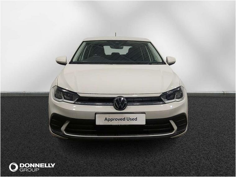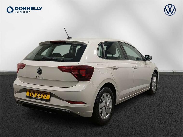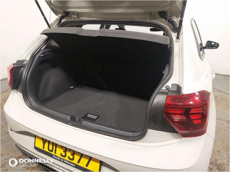 Bluetooth mobile phone interface, Cruise control + speed limiter, Driver alert system, Emergency call service, Lane keeping system Lane Assist, Power assisted speed sensitive steering, Preparation for We connect and We connect plus, Speedo and rev counter, electronic odometer, trip, service interval display and fuel gauge, Standard rear axle, Trip computer, Warning signal and warning light for front and rear seatbelts not fastened, Washer fluid level indicator, Wireless app connect, Front wheel drive, Rear shock absorpion, Start-stop system with battery regeneration (recuperation - energy recovery during braking), DAB Digital radio, Diversity antenna for FM reception, Automatic dimming interior rear view mirror, Body colour bumpers, Body colour door handles, Body colour door mirrors, Electric front windows, Heat insulating darkened glass in side and rear windows, Heat insulating glass windscreen, Power folding adjustable/heated exterior mirrors and front passenger exterior mirror lowering function, Rain sensor, Rear electric windows, Rear fog light, Rear side wing doors, Rear windscreen washer and wiper with interval delay, Third brake light, 12V power socket in centre console, 2 front and 2 rear reading lights, 2 USB-C ports in the front, 2 USB-C charging sockets on the center console in the rear, 3 rear head restraints, 60/40 split folding rear seat and rear seat bench not split, Ceramique headliner, Chrome plated radiator grille inserts, air vent surrounds and light switch surrounds, Door and side trim panel, Driver and front passenger seat height adjustment, Driver/passenger sunvisors with illuminated vanity mirrors, Front centre armrest, Front seat backrest storage pockets, Front standard seats, Handbrake lever handle in leather, Hartley/Thomas cloth upholstery, Isofix child seat preparation easy-fit (for two outer rear seats, and front passenger seat) compatible with I-size, Leather trimmed gear knob, Luggage compartment cover, Luggage compartment floor, Luggage compartment lighting, Multifunction steering wheel, Single front passenger seat, Standard pedal cluster, Light and vision pack - Polo, 3 point height adj front seatbelts + pretensioners, 3x3 point rear seatbelts, ABS, Driver and front passenger airbag with front passenger airbag deactivation, Drivers and front passengers safety optimised head restraints, ESC (Electronic stability control) + EDL (Electronic Differntial lock) and ASR (Traction control), Extended and predictive pedestrian/ cyclist protection, Front assist including city emergency braking, Front curtain and side airbags with center airbag, Front disc brakes, Hill hold control, Manual child lock in rear doors, Rear drum brakes, Single tone horn, Tyre pressure loss indicator, Alarm with interior protection, Anti-theft alarm system with interior monitoring, backup horn, and towing protection, Anti-theft wheel bolts, Electronic engine immobiliser, Lava stone black gloss/matt decorative inserts in dash and front door panels, Low rolling resistance tyres,