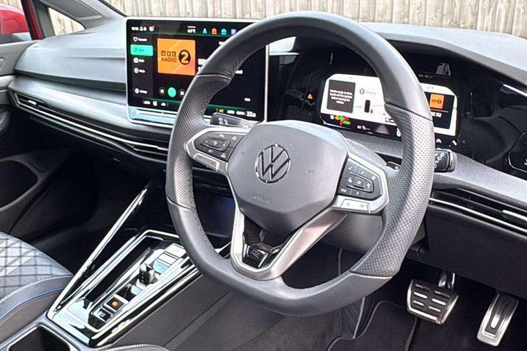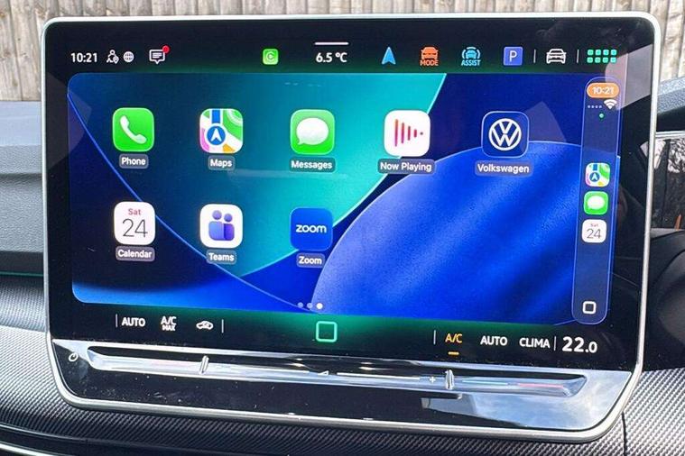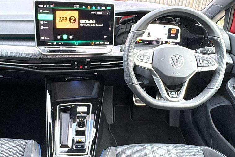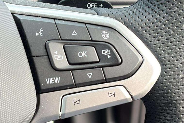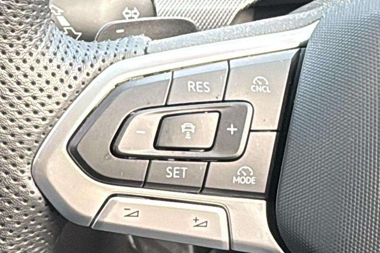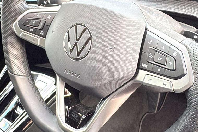 Activated carbon canister, Adaptive cruise control (ACC), Advanced driver attention and drowsiness monitor, Dynamic road sign display, Dynamic steering, E-Sim card for online connectivity, eCall emergency call system, Multi-color Digital cockpit pro, selection of different info profile possible, Multifunction front facing camera for distance control, Navigation system, Oncoming vehicle braking when turning including swerve support, Speed limiter, Speedo, rev counter, electronic odometer, trip, service interval display, exterior temperature and fuel gauge, Traffic jam assist, Voice enhancer and voice control, Warning signal and warning light for front and rear seatbelts not fastened, We connect plus preparation, We connect preparation, Wireless app connect, Hybrid propulsion system, Petrol Particulate Filter, Start-stop system with battery regeneration (recuperation - energy recovery during braking), XDS electronic differential lock for improved traction and handling, 2 USB C ports in front, 2 USB charging sockets on the centre console in the rear charging capacity upto 45W, Digital radio reception (DAB), Diversity antenna for FM reception, Gaming platform via car app, Infotainment system with 12.9" display, Mobile phone interface with inductive charging feature, 3rd brake light, Automatic headlamp activation with Coming home and Leaving home feature, Body colored bumpers in R-Line style, Body colour door handles, Exterior mirrors convex on the left and aspherical on the right, Front and rear electric windows, Heat insulating windshield made of laminated glass, LED separate daytime running light, Rear exhaust tailpipe, Rear fog light on one side and reversing lights on both sides, Rear side wing doors, Rear windscreen washer and wiper with interval delay, Remote electrically foldable door mirrors, puddle lights and reverse activated passenger's door mirror, Welcome light with surround lighting, 12V socket in front centre console, 12V socket in luggage compartment, 3 rear head restraints, 3 seat bench in 2nd row, Ambient lighting with 30 colour including LED light unit in front footwell with selectable light colour, Black roof lining, Brushed stainless steel pedals, Chrome plated radiator grille inserts, air vent surrounds and light switch surrounds, Door insert, side trim panel and arm support in leatherette, Front + rear black carpet mats, Front centre armrest, Front seat lumbar support adjuster, Integrated front head restraints, ISOFIX anchors for child seats on outer rear bench seats and on front passanger seat compatible for i-Size, Luggage compartment lighting, Manual height adjustable front passenger seat, Manually height adjustable driver seat, Plastic gear knob, Premium sports seats in front, Rear cupholder and loadthough, Sardegna cloth upholstery with front and outer rear seats Art Velour inner sides of bolsters, Single front passenger seat, Split folding backrest with centre armrest and unsplit rear seat bench, Sun visors with illuminated vanity mirrors, Titanium black instrument panel, 3 point height adj front seatbelts + pretensioners, 3 rear three point seatbelts, ABS, Autonomous emergency braking front assist with pedestrian and cyclist monitoring, Child locks on rear doors, Driver and front passenger airbag with front passenger airbag deactivation, Electronic parking brake with auto hold, ESC (Electronic Stability Control), Extended pedestrian protection measures, Hill start assist, Rear disc brakes, Two tone horn, Tyre pressure loss indicator, Volkswagen roadside assistance, Anti theft wheel bolts, Preparation for alcohol interlock, Decorative inserts carbon grey for dashboard and front door trim panels, Tool kit for tyre mobility set, Tyre mobility kit Includes 12V compressor and tyre sealant,