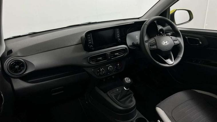 8" Touchscreen satellite navigation including mapcare and LIVE services, Apple car play/Android Auto, Bluelink mobile remote connectivity, Bluetooth connectivity with voice recognition, Cruise control, Driver attention alert system, eCall emergency call system, Forward Collision-Avoidance Assist (FCA) - Pedestrian/Cyclist, Full-width 4.2" LCD instrument cluster, Intelligent speed limit assist, Lane departure warning system with lane keep assist - LKAS, Lane follow assist, PAS, Rear parking sensors, Rear view camera with guidelines, Roadside assistance, Start/Stop function, Tailgate, Trip computer, 2 front/2 rear speakers, Front and rear USB-C ports, Front USB connection, Leading vehicle alert (LVA), Steering wheel audio, phone and cruise controls, 1 speed non intermittent rear windscreen wiper, Black finish on B pillars, Body colour door handles, Body coloured bumpers, Body coloured door mirrors, Electric front windows, Electric rear windows, Electrically adjustable and heated door mirrors, Flat metal emblem, Front grille in matte black, Front intermittent wipers, Halogen headlights, Headlights inner with Black Blade design, Heated rear window, High beam assist, Indicator light on door mirrors, LED daytime running lights, Rear roof spoiler with integrated LED brake light, Rear side wing doors, 12v power outlet - front, 3 seat bench in 2nd row, 60/40 split folding flat to floor rear seats, Auto light control, Bottle holders in front/rear doors + front centre console, Cabin and luggage compartment interior lighting, Cloth upholstery, Driver + passenger vanity mirrors, Driver's seat height adjustment, Driver/passenger sunvisors with ticket holders, Floor mats, Front door pockets, Front Head Restraints - Vertical and Horizontal Adjustment, Glove compartment, Height adjustable steering column, Isofix child seat preparation, Leather wrapped steering wheel and gear knob, Manual air conditioning, Rear door pockets, Single front passenger seat, Vertical adjustment rear head restraints, 3x3 point rear seatbelts, Airbags - front, front side and curtain airbags, Anti-lock brake system (ABS), Autonomous emergency braking (AEB) with forward collision warning system, Brake assist function, Childproof rear door locks, Electronic stability control, Front and rear seatbelt reminder, Front seatbelt pretensioners, Hill start assist control (HAC), Passenger airbag deactivate switch, Traction control, Tyre pressure monitoring system, Immobiliser, Perimeter alarm, Rear occupant alert, Remote central locking, Second remote key, Speed sensitive auto door locking, 15" Alloy wheels, Temporary mobility kit (TMK),