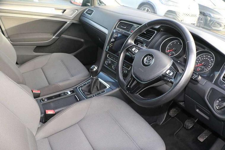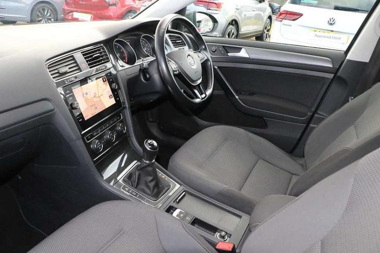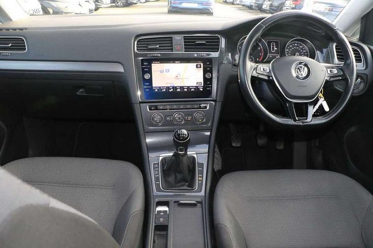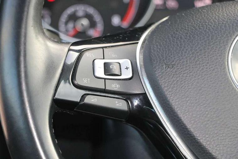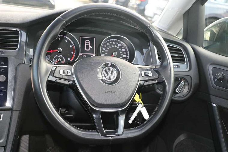 'Lights On' Reminder warning buzzer, ACC - Adaptive cruise control with front assist, forward collision warning, distance monitoring, city emergency brake and speed limiter, Bluetooth telephone and audio connection for compatible devices, Brake pad wear indicator warning light, Driver alert system, Driving Mode Selection with four preset modes - Eco, normal, sport or individual modes, Multifunction computer with visual gear change recommendation for fuel consumption, Power assisted speed sensitive electro-mechanical steering, Push tank flap, Speed limit display, Speedo, rev counter, electronic odometer, trip, service interval display, exterior temperature and fuel gauge, Stop/start system, Think blue trainer driver tips and journey analysis, Warning buzzer and light for front seatbelts unfastened, Battery regeneration during braking, XDS electronic differential lock, Composition media system, DAB Digital radio receiver, Driver Personalisation profile selection, MP3/WMA compatability, Multi device interface (MDI) via USB connection, Premium USB cable in choice of either Apple or Android smartphone compatibility, SMS Functionality, Title and cover art display, USB and SD card connectivity, Volkswagen media control, Black front air intake and radiator grille with chrome insert, Black rear diffuser, Body colour bumpers, Body colour door handles, Body colour door mirrors with integrated indicators, Dusk sensor + automatic driving lights, Electric front windows, Electric rear windows, Electrically adjustable and heated door mirrors, Fully galvanised body, Heated rear windscreen, High level 3rd brake light incorporating LED Technology, LED front fog lights with static cornering light function, Range adjustable headlights via infotainment system with LED daytime running lights, Rear fog lamp, Rear number plate lights incorporating LED technology, Rear tinted glass 65% light absorbing from B pillar backwards, Rear window aerial, Rear window wash/wipe with intermittent wipe, Reflectors in all doors, Tailgate with integrated rear roof spoiler, Windscreen wipers/ intermittent wipe + 4 position delay, 12V socket in luggage compartment, 3 rear headrests, 4 load lashing points in luggage compartment, 60/40 split folding rear seat backrest, Bag hook in luggage compartment x 2, Climate control - 2 zone electronic air conditioning with automatic air recirculation and allergy filter, Cooled glovebox, Cover for storage compartment in centre, Dust/pollen filter, Front and rear reading lights X 2, Front centre armrest with storage compartment and two rear air vents, Front seat back storage pockets, Grab handles front x 2, rear x 2 with integrated coat hooks, Height and reach adjustable steering wheel, Illuminated vanity mirrors, Instrument lighting white adjustable panel illumination, Interior light delay, Isofix preparation for 2 rear child seats, Load through provision with rear centre armrest and cupholders x2, Luggage compartment lighting, Overhead storage box, Pearl grey headlining, Storage box in luggage compartment, Storage compartment in roof console with cover, Storage compartments in centre console, Storage compartments in front doors, Storage compartments in rear doors, Stowable luggage compartment cover, Sun visors, Variable boot floor, height adjustable and removable, Convenience Pack - Golf, Mirror pack - Golf, Winter pack - Golf, 3 rear three point seatbelts, Airbags - Driver's and front passenger's, curtain airbag, Driver's knee, front side impact and passenger's airbag deactivation switch, Anti-lock Braking System (ABS) with Hydraulic Brake Assist (HBA), Automatic post collision braking system, Child locks on rear doors, Driver/Passenger optimised head restraints, Electronic parking brake with auto hold, Electronic stability control (ESC) including Electronic differential lock (EDL) and ASR (Traction control) with deactivation via infotainment system, Front ventilated disc brakes and rear disc brakes, Pre crash preventive occupant protection, Three point height adjustable front seatbelts with tensioners, Tyre pressure loss indicator, Alarm with interior protection and deactivation via infotainment system, Electronic engine immobiliser, Brushed dark silver decorative inserts in dash and door panels, Chrome plated air vent surround, Chrome-plated light switch surround, Polar night black decorative inserts in centre console, Steel space saver spare wheel,