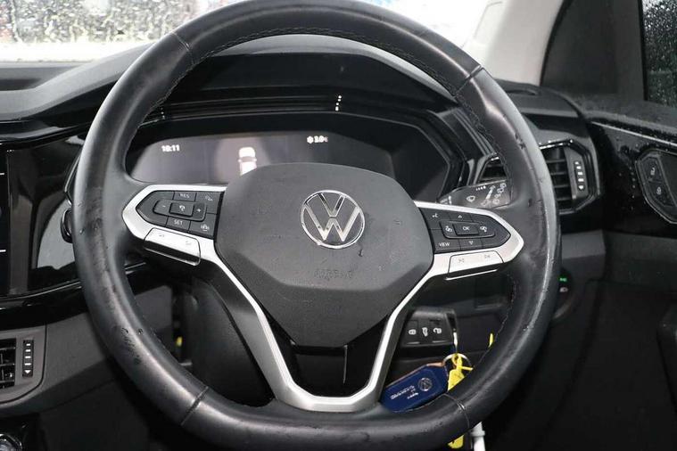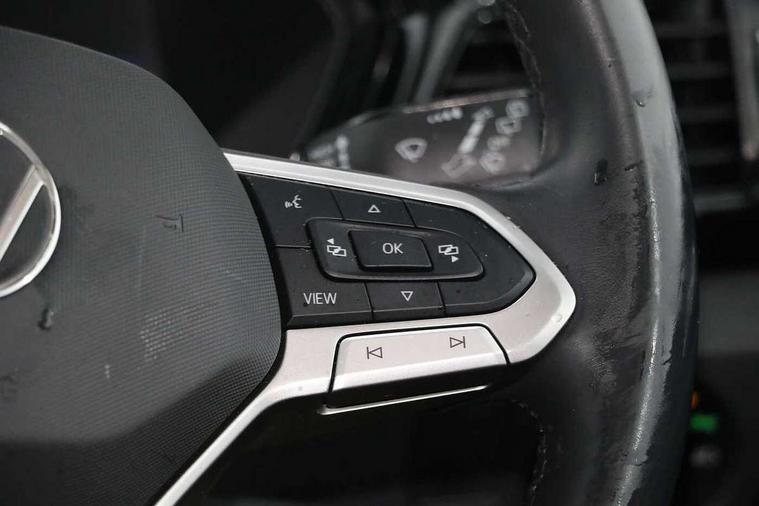 'Lights On' Reminder warning buzzer, Adaptive cruise control including front assist, forward collision warning, autonomous emergency braking, speed limiter, Blind spot monitoring, Bluetooth telephone and audio connection for compatible devices, Car information display, Digital cockpit, Driver alert system, eCall emergency call system, Lane assist, Low washer fluid warning light, Multifunction computer with visual gear change recommendation for fuel consumption, Operating permit alteration, Power assisted speed sensitive steering, Speedo, rev counter, electronic odometer, trip, service interval display, exterior temperature and fuel gauge, Stop/start system, Tailgate, Warning sound and light for doors and tailgate open, Warning sound and light for front seatbelts unfastened, We Connect Go Dongle, Wireless Car net app connect with Apple CarPlay, combined functionality of Apple CarPlay/Android Auto and MirrorLink, Battery regeneration during braking, Misfuel prevention device, 2x USB connection with USB charging sockets and in rear centre console, DAB Digital radio receiver, Diversity antenna for FM reception, Multi device interface (MDI) with USB connection, Music playback - MP3, WMA and AAC files, Premium USB cable for Apple or Android smartphone compatibility, Simultaneous pairing of 2 compatible mobile devices, Title and cover art display, Automatic hazard lights activation under emergency braking, Black door mirrors, Black roof rails, Body colour door handles, Body coloured bumpers, Dusk sensor + automatic driving lights, Electrically foldable, adjustable and heated door mirrors with reverse activated kerb view adjustment on passenger's side, Front and rear electric windows, Front fog lights with static cornering function, Galvanised body, Heated rear window, LED third brake light, Lower door sills and door pillars in black, Radiator grille with high gloss surface and chrome strip, Rear fog light on one side, reversing light on both sides, Rear lights incorporating LED technology, Rear side wing doors, Rear tinted glass 65% approx light absorbing from B pillar backwards, Rear window aerial, Rear windscreen washer and wiper with interval delay, Reflectors in all doors, Tailgate with integrated roof spoiler, Windscreen wipers/ intermittent wipe + 4 position delay, 12V Accessory socket in centre console, 3 rear head restraints and 3 rear three point seat belts with ECE label, 3 seat bench in 2nd row, 60/40 split folding rear seat backrest, Comfort front sport seats, Diag cloth upholstery, Drawer under drivers seat, Driver and front passenger sunvisor with vanity mirror, Driver's sunvisor with ticket holder, Dust and pollen filter, Front + rear carpet mats, Front and rear reading lights X 2, Front centre armrest with storage compartment, Front seat back storage pockets, Front seats with adjustable lumbar support, Glovebox, Heating and fresh air system with 4 stage blower, Height/reach adjust steering wheel, Instrument lighting white adjustable panel illumination, Interior light with delay, Isofix child seat preparation for 2 rear child seats, Luggage compartment cover, Luggage compartment lighting, Manual air conditioning, Moveable and foldable Rear bench seat, Single front passenger seat, Storage compartment in drivers and front passengers door, Three spoke multi-function leather trimmed steering wheel and gearknob, 3-point seat belts in front with electric tensioner + height adjustment, Anti-lock Braking System (ABS) with Hydraulic Brake Assist (HBA), Automatic post collision braking system, Driver and front passenger safety-optimised head restraints, Drivers and Front Passengers airbags with front passengers airbag deactivation switch, ESC with EDL, ASR, EDTC and trailer stabilisation function, Front and rear curtain airbags, Front seat side impact airbags, Hill start assist, Pre crash preventive occupant protection, Proactive passenger protection system in combination with front assist, Rear door child safety locks, Rigid safety cell with front and rear crumple zones, Single torn horn, Tyre pressure loss indicator, Volkswagen roadside assistance, Alarm with interior protection and deactivation via infotainment system, Child security locks in rear doors, Electronic engine immobiliser, Remote tailgate unlocking using key fob, Decorative inserts transition high gloss black/platnium grey, 17" Manila black diamond turned surface alloy wheels + anti theft wheel bolts, Breakdown kit,