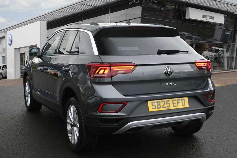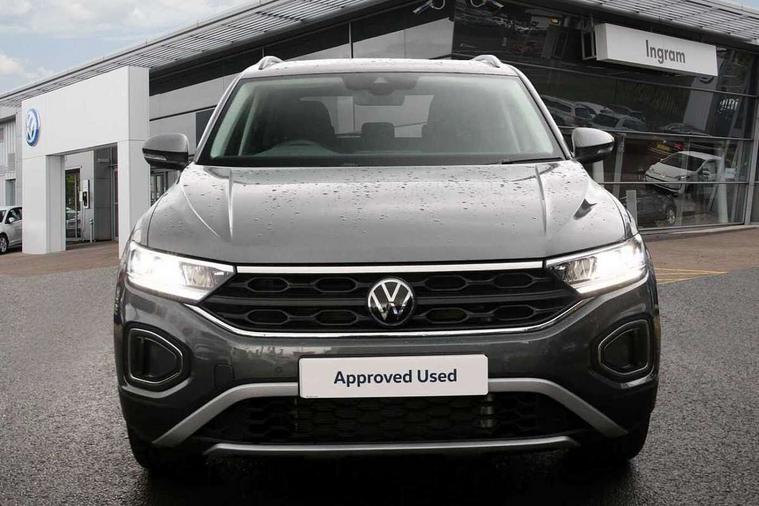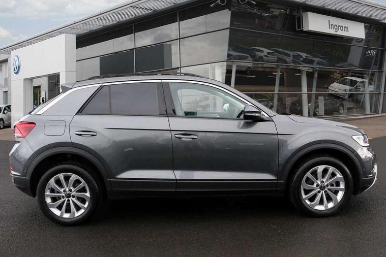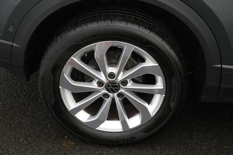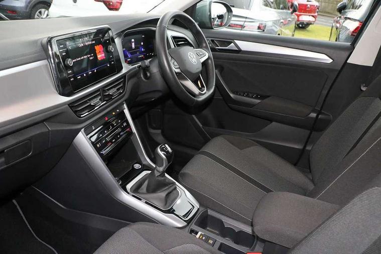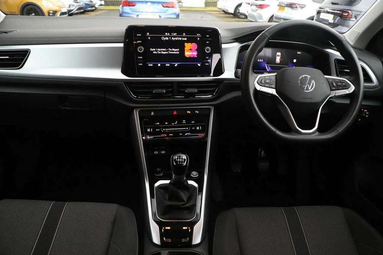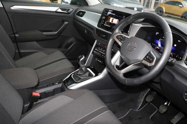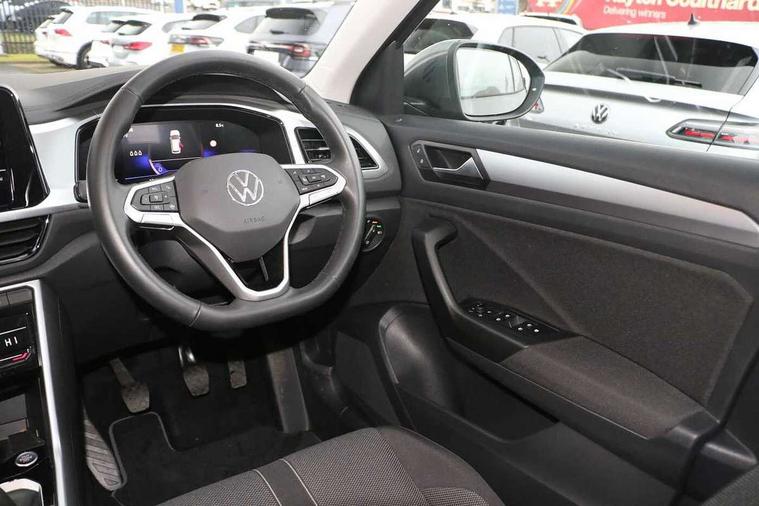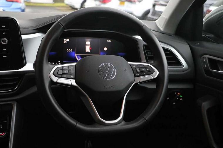 Advanced driver attention and drowsiness monitor, Dynamic road sign display, Emergency call service, Lane keeping system Lane Assist, Mobile phone interface, Modified key software - reduce switch off time for key status change to Long no motion, Online services, Park assist including front and rear parking sensors, Power assisted speed sensitive steering, Rear view camera, Service interval indicator, Tailgate/trunk lid release from outside, Think blue trainer driver tips and journey analysis, Warning sound and light for front seatbelts unfastened, Wireless app connect, Battery regeneration during braking, Front shock absorption, Rear shock absorption chassis with increased ride height, Start/stop function with battery regeneration, DAB Digital radio, Diversity antenna for FM reception, Music playback - MP3, WMA and AAC files, SD card slot, Simultaneous pairing of 2 compatible mobile devices, Title and cover art display, We Connect and We Connect Plus functionality, Auto dimming interior rear view mirror, Automatic hazard lights activation under emergency braking, Automatic headlight control with LED separate daytime running lights with coming/leaving home function, Black roof rails, Body coloured bumpers and radiator grille with chrome trim and front fog lamps with chrome bezel, Body coloured exterior mirror housings and door handles, Electrically adjustable and heated door mirrors, Extended roof spoiler, Exterior mirrors aspherical on driver side, convex on front passenger side, External USB type C socket and charging sockets, Front windscreen wiper with intermittent wipe and 4 position delay, Heated rear window, LED 3rd brake light, LED rear combination lamps, LED rear number plate lights, Power windows with comfort operation and circuit breaker, Privacy glass for rear side windows and rear window, Rain sensor, Rear exhaust tailpipe, Rear fog light on one side and reversing lights on both sides, Rear side wing doors, Rear wash/wipe with intermittent wipe setting, Remote electrically foldable door mirrors, puddle lights and reverse activated passenger's door mirror, 12V power socket in centre console, 3 rear head restraints, 3 seat bench in 2nd row, 4 load lashing points in luggage compartment, Air care climatronic air conditoning system with active combination filter and 2-zone temperature control, Black stitching for floor mats, Ceramique roof liner, Cloth upholstery, Door and side trim panel in cloth, Drawer under drivers seat, Driver/front passenger seat height adjustment, Front centre armrest, Front comfort sports seats, Front cupholders x 2, Front reading light, Front seat back storage pockets, Glove compartment door with light, Instrument lighting, white adjustable panel illumination, Interior ambient lighting and surround lighting, Interior light delay, Isofix child seat preparation, Leather gearshift handle, Load-through provision with cup holder when folded down ('Unsplit rear seat bench, split folding backrest, with centre armrest), Luggage compartment lighting, Lumbar support for driver's and front passengers seat, Non-folding front passenger seat backrest, Single front passenger seat, Storage compartment in left and right luggage area, Storage compartment in rear doors, Storage compartments in driver and front passenger doors, Sunvisors with illuminated vanity mirrors, Variable boot floor, height adjustable and removable, Driver assistance pack without proactive passenger protection - T-Roc Life/Match, 3 point height adj front seatbelts + pretensioners, 3 point seatbelts in outer rear with ECE label, ABS, Child locks on rear doors, City emergency braking and pedestrian monitoring, Driver and front passenger airbag with front passenger airbag deactivation, Driver and front passenger safety-optimised head restraints, Drivers seatbelt reminder, Electronic parking brake, Electronic Stability Control (ESC) inc EDL (Electronic Differential Lock) and ASR (Traction Control), Front and rear passengers curtain airbag system including front side airbags, Front disc brakes, Hill start assist, Predictive pedestrian protection, Rear disc brakes, Two tone horn, Tyre pressure loss indicator, Volkswagen roadside assistance, Alarm with interior protection, Keyless locking and starting system keyless access with safelock, Pewter matt decorative inserts for intrument panel, centre console and door panels at the front, Trims for alloy wheels,