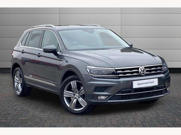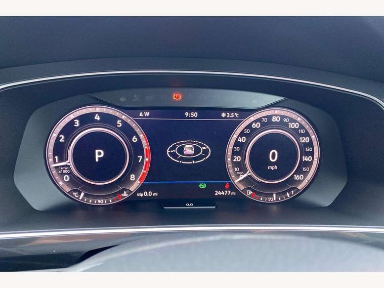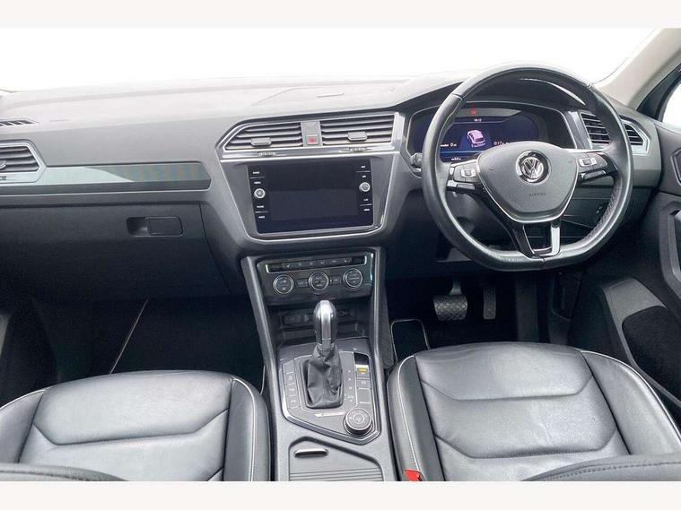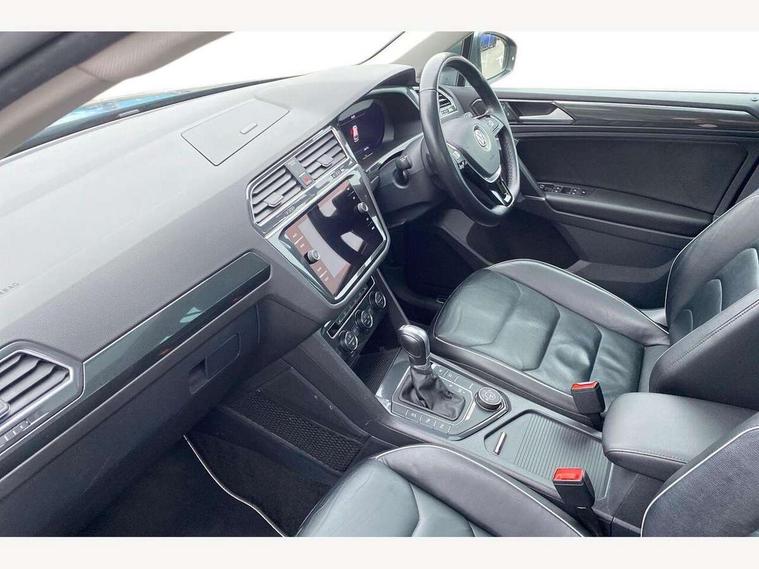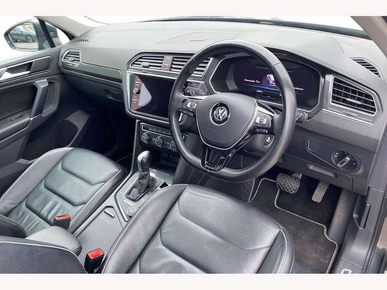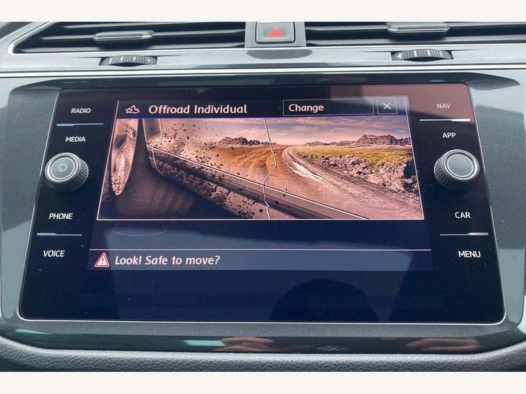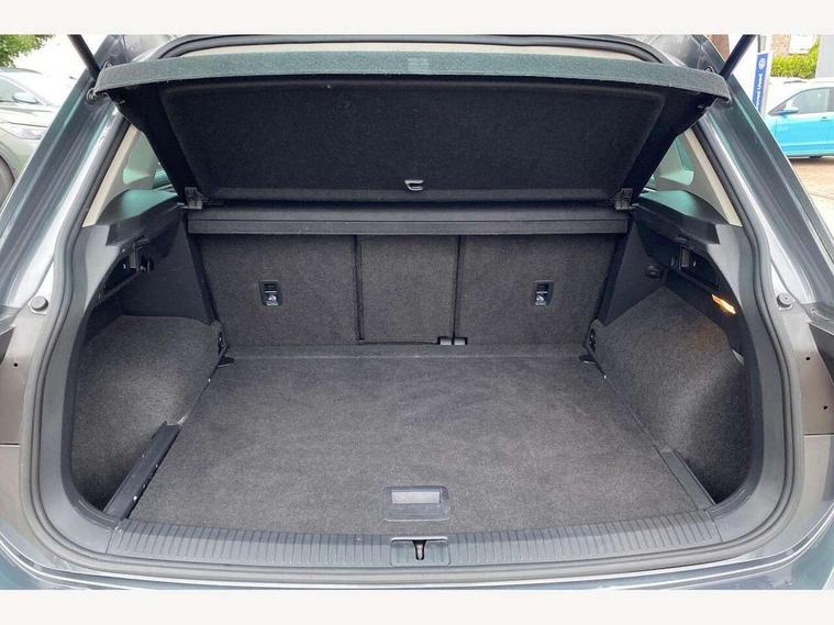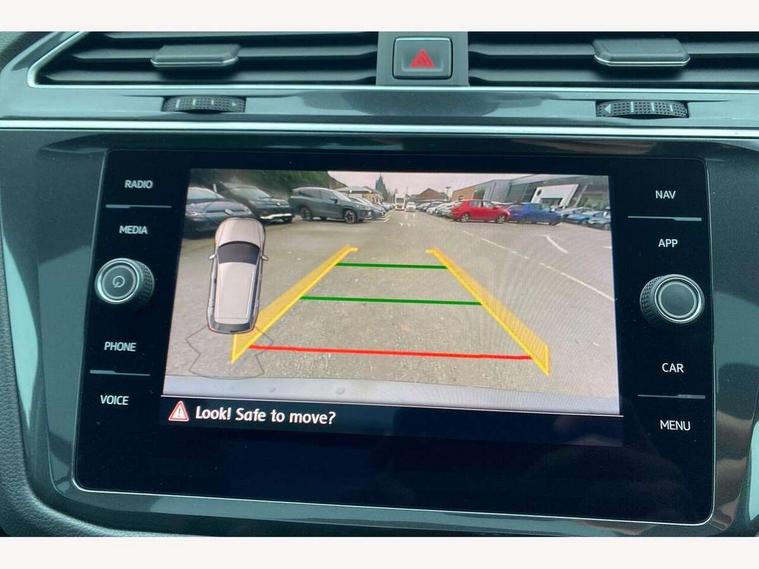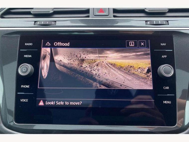 Active information display, Adaptive cruise control, App-Connect, Bluetooth phone integration system, Distance control assist, Drive mode selector, Driver profile selection, Fatigue detection system, Instrument cluster, Lane assist, Low washer fluid warning light, Outside temperature display, Service interval indicator, Speed limiter, Warning lights, XDS electronic differential lock, 2x USB sockets in front, Aux-in socket, DAB Digital radio, MP3 compatible single CD player, SD card slot, Auto dimming interior mirror, Automatic activation of hazard warning lights, Black door protector with chrome inserts, Body colour door handles, Body colour door mirrors, Body coloured bumpers, Chrome side body trim, Chrome side window surrounds, Chrome trimmed radiator grille, Coming/leaving home lighting function, Dusk sensor + auto driving lights, Electric folding door mirrors, Electric heated + adjustable door mirrors, Electric panoramic sunroof with sunblind, Front and rear electric windows, Heated rear window, LED headlights with dynamic light assist daytime running lights and cornering front fog lights, LED rear lights, Rain sensor windscreen wipers, Rear windscreen washer and wiper with interval delay, Silver rear diffuser trim, Silver roof rails, Silver under body guard, Tinted windows (B pillar backwards), Windscreen wipers/ intermittent wipe + 4 position delay, 12V Accessory socket in centre console, 3 rear headrests, 3 zone climate control, 4 load lashing points, 40:20:40 split folding rear seats, Bag hook in luggage compartment, Driver + front passenger lumbar support, Foldable passenger seatback, Front + rear carpet mats, Front centre armrest with 12v socket, Front centre armrest with storage + rear 2 air vents + cupholders, Front seatback folding tables, Height/reach adjust steering wheel, Illuminated driver/passenger vanity mirrors, Illuminated scuff plates, Interior light with delay, Isofix Preparation 2 Rear child seats, Leather gear knob, Load through provision with 2 cupholders when folded, Lockable cooled glovebox, Luggage compartment lighting, Luggage compartment side storage, Map pockets on front seats, Passenger seat height adjuster, Passenger underseat drawer, Rear cupholders, Removable luggage cover, Sliding/reclining rear seats, Storage compartment in driver's door, Storage compartment in passenger's door, Storage compartment in rear doors, Storage tray on dashboard, Sunglasses storage, Variable boot floor, Ambient lighting pack - Tiguan, 3 rear 3 point seatbelts, ABS+EBD+Brake assist, Active bonnet, Active pedestrian safety system, Curtain airbags, Driver/Front Passenger airbags, Driver/Passenger whiplash optimised head restraints, Drivers knee airbag, DTC - Drag torque control, Electronic parking brake with auto hold, ESP with EDL + ASR, First aid kit, Front assist including city emergency braking, Front side airbags, Head airbag system, Height adjustable front 3 point seatbelts + pretensioners, Hill hold control, Passenger airbag deactivate switch, Passenger knee airbag, Pre crash system, Rear side airbags, Seatbelt warning lamp and buzzer, Two tone horn, Warning triangle, Alarm with interior protection, Electronic engine immobiliser, Remote central locking with 2 remote folding keys, Chrome door trim inserts, Piano black interior trim, Steel space saver spare wheel,