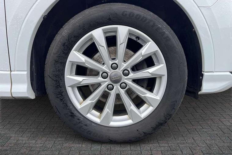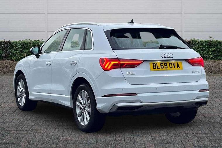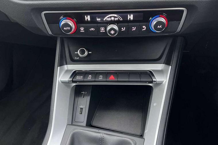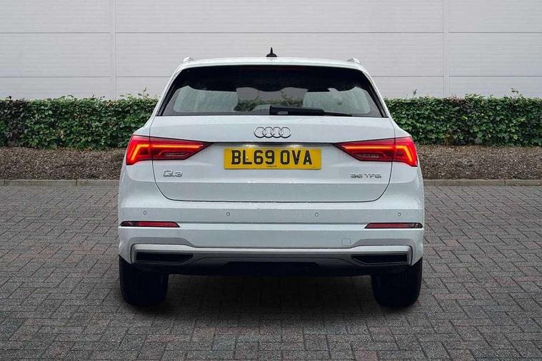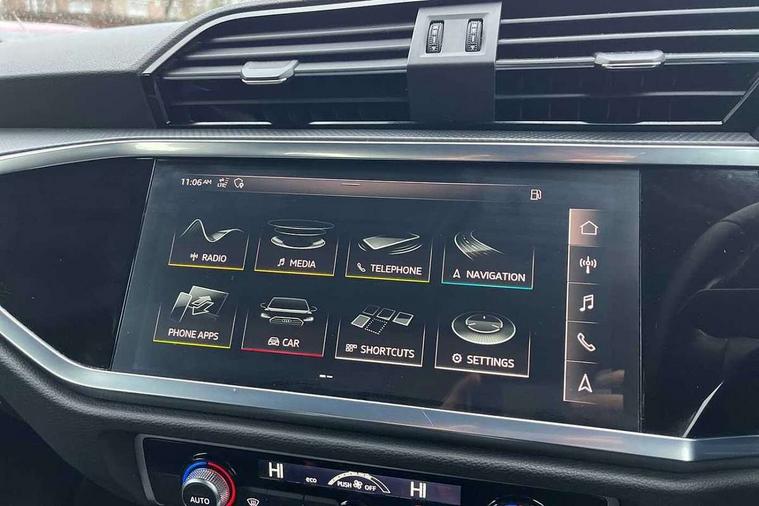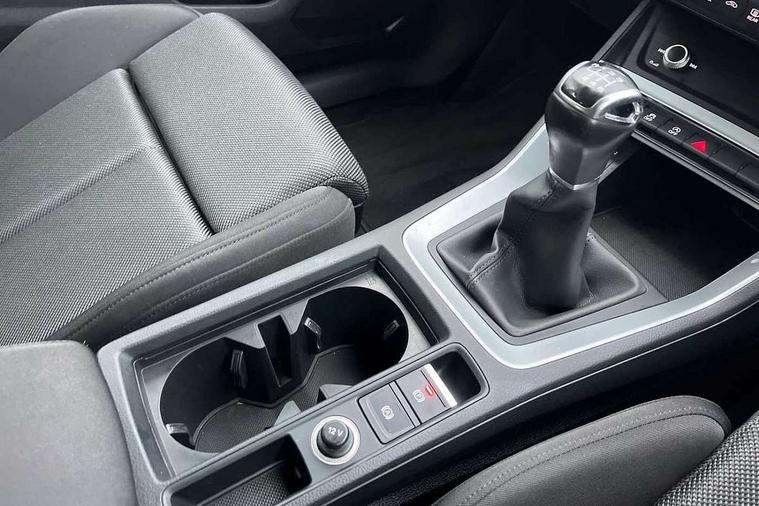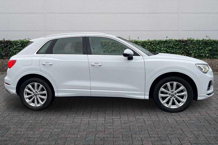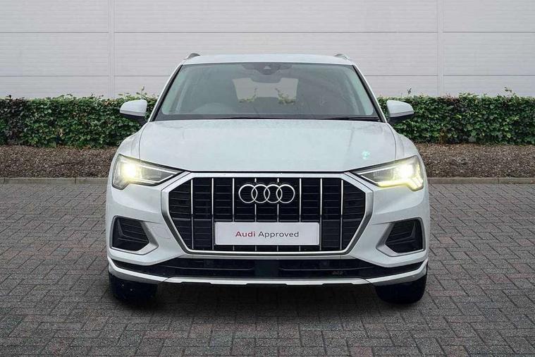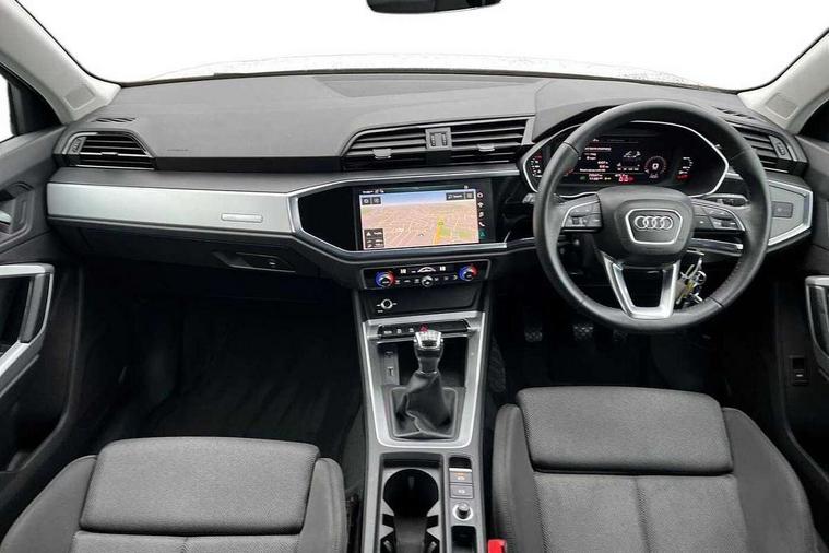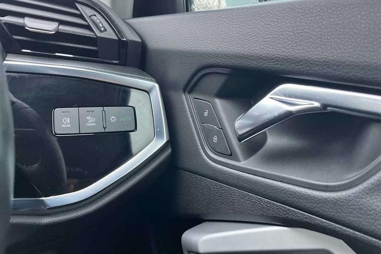 Audi connect safety and service (e-call), Audi drive select, Audi lane departure warning, Audi side assist, Audi smartphone interface, Audi Virtual Cockpit - 10.25" display, Bluetooth interface, Camera based traffic sign recognition, Cruise control + speed limiter, MMI navigation plus with MMI touch, Power opening/closing tailgate, Progressive steering, Rear parking sensors, Service interval indicator, Stop/start system, Voice control system, Standard suspension, 1 x USB type C and 1 USB type A charging points, 6 speakers, DAB digital radio module, Acoustic windscreen, Aluminium roof rails, Aluminium window trim, Auto dimming rear view mirror, Body coloured bumpers, Electrically adjustable and heated door mirrors with integrated LED side indicators, Front and rear electric windows, Front fog lights, Front side air inlets in matt selenite silver, Front spoiler in matt selenite silver, Grille vertical bars in aluminium silver/Matt, High gloss black finish B and C pillars, LED headlights with LED daytime running lights and dynamic rear indicator, LED rear lights, Rain and light sensors, Rear diffuser strip in selenite silver, Titanium black radiator grille, 12V socket in rear centre console, 40:20:40 split folding rear bench seat, Adjustable rear seat bench/backrest, Aluminium door sill trims, Dual zone climate control, Front and rear headrests, Front and rear roof module including reading lights, Front and rear velour floor mats, Front centre armrest with storage compartment and angle adjustment, Glove compartment lighting, Height and reach adjustable steering wheel, ISOFIX child seat mounting and Top Tether with front passenger airbag deactivation, Luggage compartment light, Lunar silver cloth headlining, Manual front seats with height adjustment, Stainless steel luggage compartment sill finisher, Non smoking pack - Q3, 3x3 point rear seatbelts, 6 airbags - Driver, front passenger, curtain and side windows, Audi pre-sense front with pedestrain and cyclist recognition, Electrically operated child locks on rear doors, Electromechanical parking brake, Electronic stabilisation control including ABS, ASR and EDL, Hill descent control, Hill hold assist, Pre sense basic, Seatbelt monitoring, Tyre pressure warning, Warning triangle and first aid kit, Anti theft alarm, Anti theft wheel bolts, Remote central locking, MMI touch colour display in gloss black with aluminium surround,