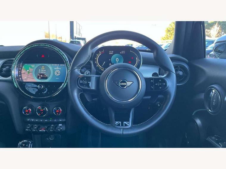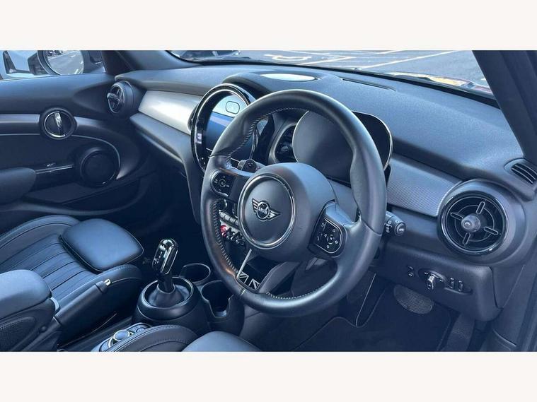 Automatic start/stop function with brake energy recuperation, Compatible mobile phone bluetooth with audio streaming, Cruise control with brake assist, Electro-mechanical speed dependant steering assistance, Flexible car sharing preparation, Instrument cluster, MINI Driving Modes - centre toggle switch to control driving setting (sport, mid and green), Mini E-call, MINI TeleServices, On board computer, Rear park distance control, Service interval indicator, Double Vanos system, Fully variable valve control, Gear change indicator display, High precision injection, Performance Control, Steptronic sport transmission with double clutch and steering wheel paddles, 8.8" touchscreen with LED ring, FM tuner and DAB digital radio, Automatic headlight activation switch, Bonnet scoop, Chrome line exterior - radiator grille bars, tailgate handle, lower front grille grating and rear central fog-light, Dynamic brake lights, Electric front+rear windows, Heated rear window, Heated windscreen washer jets, LED headlight with closed ring and daytime driving lights, Metal door sill strips with Cooper S imprint, Model logo Cooper S on right of tailgate, Radiator grille chrome border with honeycomb structure including S Badge, Rain sensor window wipers, Rear fog lights, Rear LED lights with union jack design, Rear window wiper, Side scuttle panel with integrated indicator, Sun/heat protection glass, White indicator lenses, 12V Accessory socket in centre console, 4 lashing eyes in luggage compartment, 60/40 split folding rear seat, Anthracite headliner including grab handles and clothes hooks, Carbon black colour line - Knee roll and door armrest, Chrome interior highlights, Chrome line interior - air vents, gear lever base, door handles and speakers in doors, Cupholders, Front and rear head restraints, Front and rear isofix with front passenger airbag deactivation, Glove compartment, Height and length steering column adjustment, Interior lighting with 12 different colours across the dashboard, underneath door bezel with illuminated laser-engraved design on central display, Leatherette gearshift lever and handbrake gaiters, LED reading lights, vanity mirror lights, front foot well light and spotlight on front seats, Manual air conditioning, Mechanical seat adjustment - forward/back & backrest for front seats and driver seat height adjust, MINI yours badge on exterior pillar, Multifunction steering wheel, Sport leather steering wheel with speed limiter and audio/communication controls, Storage compartments in doors, Storage pocket on back of front seats, Sunvisors with vanity mirrors, Velour floor mats, Walknappa leather steering wheel with grey seam and MINI Yours badge on Piano Black lower steering wheel spoke, 3 point seatbelts on all five seats, 6 Airbags - front, side, head and seat belt tensioners, Anti-lock braking system (ABS), DSC - Dynamic Stability Control, Front and rear disc brakes, Hill start assist, Two tone horn, Tyre pressure monitoring system, Alarm system with tilt sensor, monitoring doors, bonnet interior and tailgate, Electronic vehicle immobiliser, Start/stop toggle with keyless go, Tool kit,