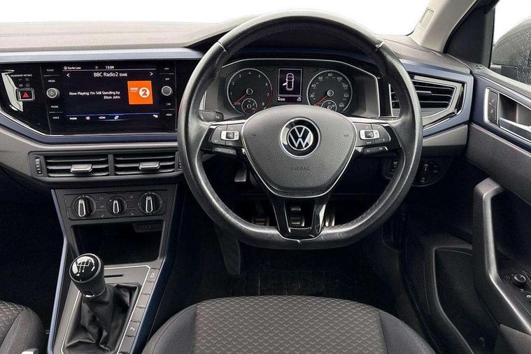Air vents in High gloss black, Limestone grey decorative inserts, Seat covers in the Waveform design, Composition Media Pack - Polo United, Light and sight pack - Polo, Winter pack - Polo, 15" Dublin alloy wheels, Tyre mobility kit, Alarm with interior protection and deactivation via infotainment system, Electronic engine immobiliser, Remote central locking with 2 remote folding keys, DAB digital audio broadcast, Diversity antenna for FM reception, Premium USB cable in choice of either Apple or Android smartphone compatibility, 3 point height adj front seatbelts + pretensioners, 3x3 point rear seatbelts, ABS, Automatic post collision braking, Driver/front passenger airbag, Drivers and front passengers safety optimised head restraints, ESP with EDL + ASR, Front and rear passenger curtain airbags, Front disc brakes and rear drum brakes, Front passenger airbag deactivation, Front seat side impact airbags, HBA (Hydraulic Brake Assist), Hill hold control, Single tone horn, Tyre pressure monitoring system, Black grille with chrome surround, Black radiator grille with chrome louvres, Body colour bumpers, Body colour door handles, Body colour door mirrors with integrated indicators, Body colour rear spoiler, Body coloured side sills, Electric front windows, Electric operated/heated door mirrors, Front fog lights including static cornering, Front windscreen washers and wipers with 4 speed intermittent delay, Halogen clear headlights with range adjustable including automatic headlights on, Heat insulating tinted glass, Heated rear window with auto timer, High level 3rd brake light, Internally adjustable door mirrors, LED daytime running lights, LED rear number plate lights, Manual dimmable interior rear-view mirror, Rear electric windows, Rear tinted glass from B-pillar backwards approx 65% tinted, Rear windscreen washer and wiper with interval delay, reverse activated, United badge on B-pillar, United door sill protector, 2 bag hooks in luggage compartment, 2 front and 2 rear reading lights, 2 front cupholders and 12 V socket with cover, 3 rear head restraints, 4 grab handles, 60/40 split folding rear seat, Atlantic blue dash insert and centre console, Centre console storage with open storage compartment, Chrome interior door handles, Driver and front passenger seat height adjustment, Driver and front passenger sunvisors with illuminated vanity mirrors, Dust/pollen filter, Folding rear seat backrest, Front + rear carpet mats, Front head restraints, Front seat backrest storage pockets, Gear lever gaiter in black trim surround, Glovebox, Handbrake grip button in chrome effect, Height/reach adjustable steering column, Instrument lighting, adjustable panel illumination, Interior light with delay, Isofix Preparation 2 Rear child seats, Leather gear knob and handbrake grip, Leather multifunction steering wheel, Luggage compartment cover, removable, Luggage compartment lighting, Luggage compartment with variable load floor, Lumbar adjustment for front seats, Manual air conditioning, Storage compartment in front doors, Storage compartment in rear doors, Storage compartment under front seats, Sunglasses holder, United cloth upholstery, Cruise control + speed limiter, Digital clock, Discover navigation - 8.0" colour touch screen navigation/infotainment systems with Car- net guide and inform, Driver alert system, Emergency call service, Front assist, radar sensor controlled distance monitor, city emergency braking and predictive pedestrian protection, Multifunction computer plus, Power assisted speed sensitive steering, Speedo and rev counter, electronic odometer, trip, service interval display and fuel gauge, Start/stop system, Ultrasonic front and rear optical and audible parking sensors, Voice activation, Volkswagen connect, Warning buzzer and light for front seatbelts unfastened, Wireless app connect, Battery regeneration during braking, Galvanished body,