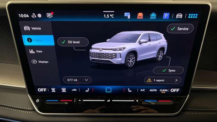 Adaptive cruise control (ACC), Digital Cockpit Pro - 10.25" high resolution dash display screen with customisable menus and information, Driver alert system, Driver attention monitoring system, Dynamic road sign display, E-Sim card for online connectivity, eCall emergency call system, Lane change system, Side assist, Rear traffic alert and Exit warning system, Multifunction front facing camera, Oncoming vehicle braking when turning including swerve support, Power assisted steering with speed sensitive, Start/stop system with regenerative braking, Voice activation spoken voice commands for telephone and navigation system, Warning signal and warning light for front and rear seatbelts not fastened, Wireless App-Connect, Adaptive chassis control DCC pro includes driving mode selection, Charging cable Mode 2 Type 2 / G (10A), Charging cable Mode 3 Type 2 / 3 (16A), Front shock absorption G08, Front wheel drive, Rear shock absorption, Digital radio reception (DAB), Diversity antenna for FM reception, Auto dimming interior rear view mirror, Automatic headlight control system, Body colour door handles, Body-coloured exterior mirror housings, Chrome moldings on the side windows, Comfort bumpers, Coming/leaving home lighting function, Exterior mirrors convex on the left and aspherical on the right, Heat insulating glass in side and rear windows, Laminated safety glass windshield, heat insulating, LED 3rd brake light, Puddle lights, Rain sensor windscreen wipers, Rear fog light on one side, reversing light on both sides, Rear side wing doors, Rear wiper, Reverse activated passenger's door mirror, Surround lighting with welcome light, 12V outlet in center console rear and in luggage compartment, 3 rear headrests, 3 rear seat bench in 2nd row, split folding, longitudinally movable and folding with load-through hatch, Carpet mats, front and rear, Centre console with illuminated storage compartment with sliding cover and two drinks holders, Door and side trim panel with leatherette insert, Flat luggage compartment floor, Front centre armrest, ISOFIX anchors for child seats on outer rear seats and front passenger seat compatible with i-Size, Mechanical rear seat release, Power adjustable lumbar support in front, Single front passenger seat, Sun visors with illuminated vanity mirrors, 3 Point seat belts in front with pretensioners, 3 point seatbelts in outer rear with ECE label, Autonomous emergency braking front assist with pedestrian and cyclist monitoring, Driver and front passenger airbag with front passenger airbag deactivation, Electronic parking brake with auto hold, First aid kit with warning triangle and safety vest, Front and rear curtain airbags, Front and rear side airbags, Front centre airbag, Front disc brakes, Hill start assist, Rear disc brakes, Two tone horn, Decorative material set,
