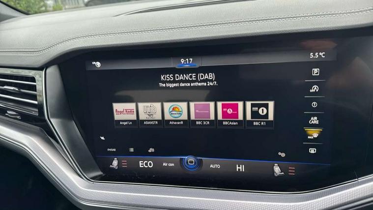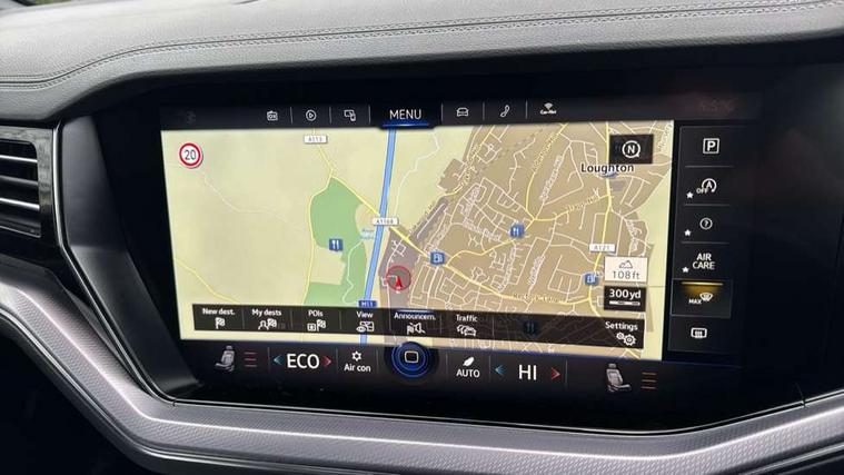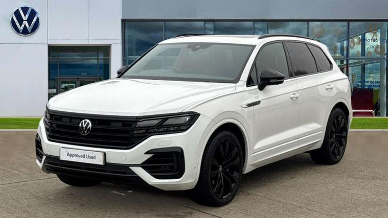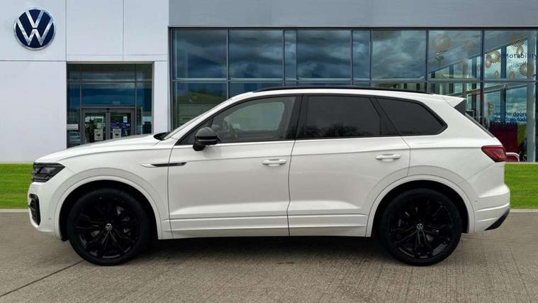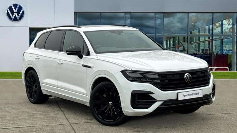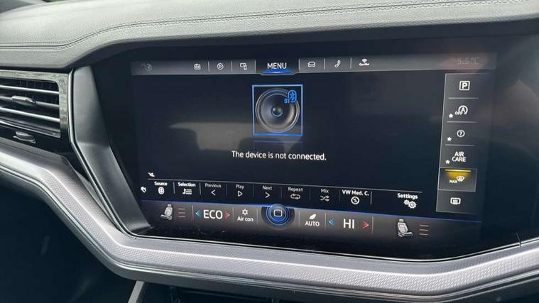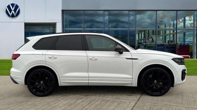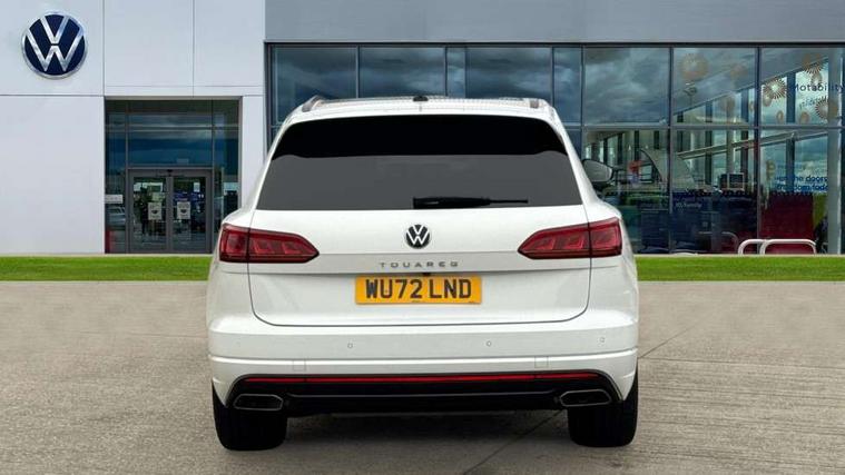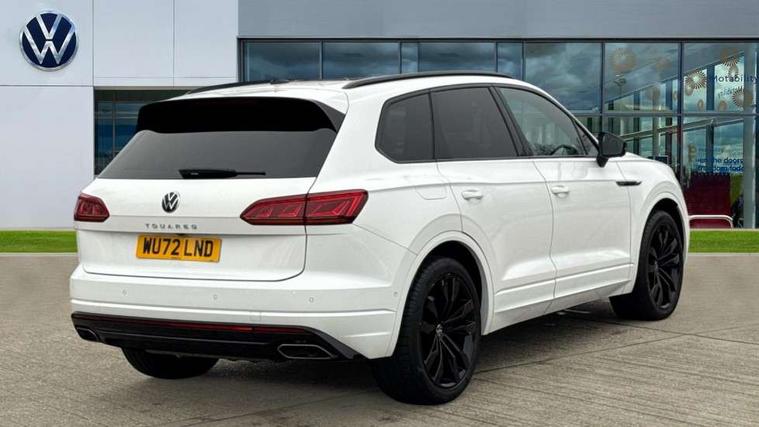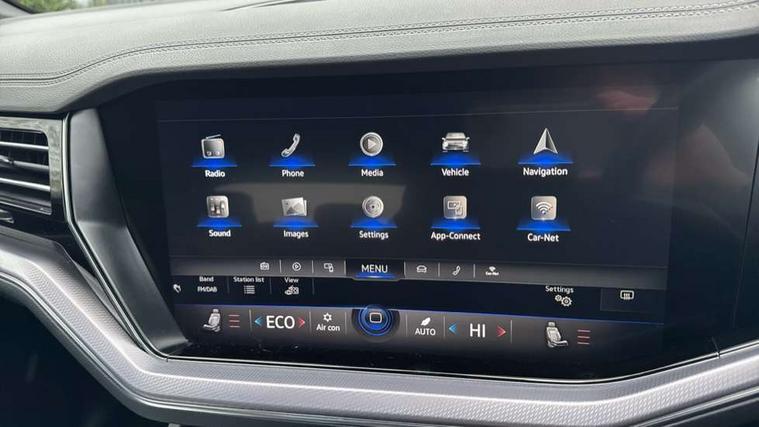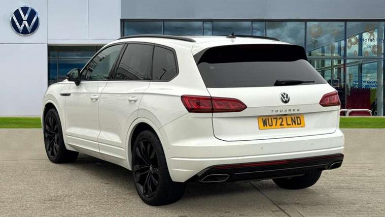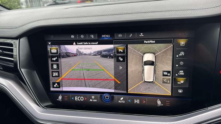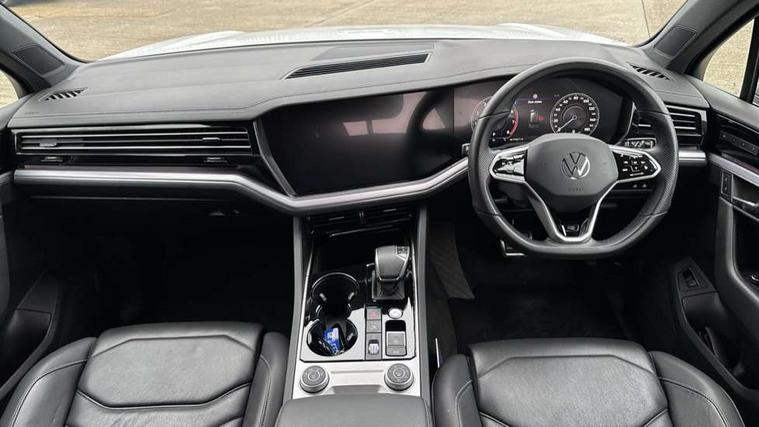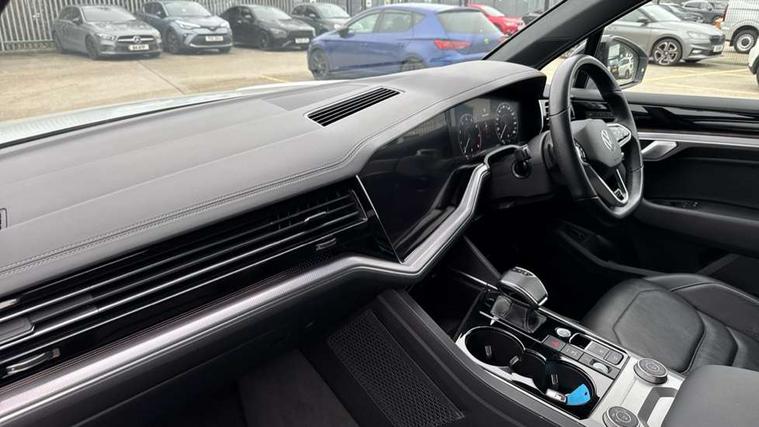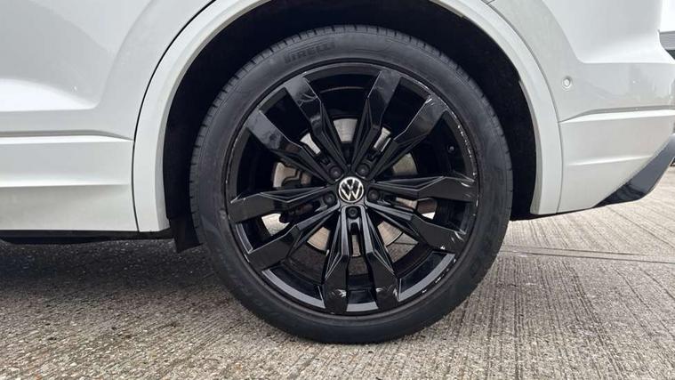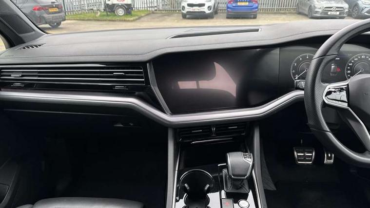 2D/3D map view, ACC - Adaptive cruise control with front assist, forward collision warning, distance monitoring, city emergency brake and speed limiter, Apple car play/Android Auto, Audible and visual fatigue detection system, Bluetooth hands free telephone connection, Car information display, Drive select with Damper control, Driver alert system, Driver profile selection, Dynamic road sign display camera controlled system with visual warning for traffic and road signs, eCall emergency system, Fully electric tailgate + keyless entry and start, Instrument cluster, MirrorLink, Multifunction camera, Multifunction computer premium with 7" colour display, One touch indicators with repeat function, Service interval indicator, Speed sensitive power steering, Start/stop system with regenerative braking, Tailgate power latch, Think blue trainer driver tips and journey analysis, Traffic sign recognition, Voice control system, Wireless Smartphone charger, Torsen limited slip differential, DAB Digital radio, Dynamic navigation based on TMC+, Gesture control for infotainment system, Multi device interface (MDI) with illuminated USB-C connection, Music playback - MP3, WMA and AAC files, SD card slot, Simultaneous pairing of 2 compatible mobile devices, SMS functionality - read, compose and send SMS messages using touch-screen display, Title and cover art display, Volkswagen media control, Adaptive low beam for urban and motorway use, Auto dimming rear view mirror, Automatic coming/leaving home lighting function, Automatic headlights, Black anodised roof rails, Black door mirrors, Black rear diffuser, Black side window surrounds, Black upper and lower grille louvres extending into headlights and radiator grille, Body colour door handles, Body coloured wheel arches, C signature gloss black front air intake, Chromed tailpipe on the left and right integrated in the bumper with trapezoid design, Dusk sensor, Dynamic headlight range control, Electric front tilt/slide panoramic sunroof and fixed rear sunroof, Electrically power adjustable, heated, folding, auto dimming, front passenger exterior door mirror lowering function, Front and rear electric windows, Galvanised body, Gloss black finish B pillar, Gloss black rear diffuser, Headlight washers, Heat insulating darkened glass in side and rear windows, Heated windscreen washer jets, IQ.Light-LED matrix headlight, daytime running light with dynamic cornering light and indicator, LED 3rd brake light, LED rear fog light, LED rear number plate lights, Plastic scuff plates in door apertures, Poor weather light, Puddle lights, Rain sensor, Rear side wing doors, Rear wiper, 12V socket in front and rear centre console and boot, 2 Coat hooks on B pillar, 3 rear head restraints, 3 seat bench in 2nd row, 3 spoke sport heated leather multi-function sports steering wheel with gear shift paddles - generation 2, 4 way adjustable front head restraints, 4 way electric lumbar support for driver and front passenger, 4 zone climate control, 40:20:40 split folding slide/recline rear seat, B pillar vents, Black lower edge of door extending sills, Branded points of interest, Double sun visor for drivier and passenger with LED illuminated vanity mirrors, Electric luggage compartment cover, Folding rear centre armrest with 2 cupholders, Front + rear carpet mats, Front centre armrest with storage box, Gear shift indicator, Height/reach adjust steering wheel, Illuminated air conditioned glovebox, Isofix preparation for 2 rear child seats, Jack and tool kit, Leather trimmed gear knob with gloss black inlay/aluminum trim, Leatherette door trim, LED luggage compartment lighting, Load through provision, Luggage compartment with load lashing rings, Plastic loading edge protection, Rear seat remote release levers, Single front passenger seat, Soul black headlining, Stainless steel pedals, Innovision cockpit pack - Touareg, 3 point front seatbelts with pre-tensioners, ABS, Active bonnet, Automatic post collision braking system, Curtain airbags, Driver/Front Passenger airbags, EBD + Brake Assist, EDL, Electronic parking brake with auto hold, ESC with ASR, Front seat side impact airbags, Hill descent control, Hill start assist, Passenger airbag deactivate switch, Seatbelt warning lamp and buzzer, Three 3 point rear seatbelts, Two tone horn, Volkswagen roadside assistance, Warning triangle and first aid kit, Alarm with interior monitoring in cab, backup horn and towing protection, Child security locks for front and rear doors, Electronic engine immobiliser, Remote central locking, Black decorative trims on the side windows, High gloss black centre console,