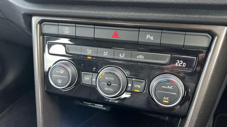 App-Connect, 2 USB connection charging sockets, Adaptive cruise control, Automatic start/stop system, Bluetooth telephone and audio connection for compatible devices, Car information display, Dusk sensor, Front assist, radar sensor controlled distance monitor, city emergency braking + predictive pedestrian protection, Lane assist, Multifunction computer with visual gear change recommendation for fuel consumption, Power assisted speed sensitive steering, Service interval indicator, Think blue trainer driver tips and journey analysis, Warning sound and light for doors and tailgate open, Warning sound and light for front seatbelts unfastened, Battery regeneration during braking, Bluetooth - Simultaneous pairing of 2 compatible mobile devices, DAB Digital radio, Multi device interface (MDI) with USB connection, Music playback - MP3, WMA and AAC files, Premium USB cable in choice of either Apple or Android smartphone compatibility, SD card slot, SMS functionality - read, compose and send SMS messages using touch-screen display, Title and cover art display, Auto dimming interior rear view mirror, Automatic hazard lights activation under emergency braking, Black grained lower door protectors, Black grained wheel arches, Body colour bumpers with silver metallic underbody fascia, Body colour door handles, Chrome trim on upper and lower radiator grille, Door mirror integrated indicators, Electrically foldable, adjustable and heated door mirrors with puddle lights and reverse activated kerb-view adjustment on passenger's door mirror, Front and rear electric windows, Front windscreen wiper with intermittent wipe and 4 position delay, Fully galvanised body, Heated rear window, High level 3rd brake light, LED rear number plate lights, Manual coming/automatic leaving home lighting function, Rain sensor, Rear windscreen washer and wiper with interval delay, 12V socket in centre console storage area, 2 front reading lights, 3 rear head restraints, 4 load lashing points in luggage compartment, Climate control - 2 zone electronic air conditioning with automatic air recirculation and allergy filter, Drawer under drivers seat, Front centre armrest with storage compartment, longitudinal and height adjustable and two rear air vents, Front cupholders x 2, Front seat back storage pockets, Glovebox, Height adjustable front seats, Height/reach adjust steering wheel, Illuminated vanity mirrors, Instrument lighting, white adjustable panel illumination, Interior light delay, Isofix easy fit child seat preparation for 2 outer rear seats, Load through provision with single cup holder when folded down, Luggage compartment cover, removable, Luggage compartment lighting, Split folding rear seat backrests with centre armrest, Storage compartment in left and right luggage area, Storage compartment in rear doors, Storage compartments in driver and front passenger doors, 3 rear three point seatbelts, ABS, Driver and front passenger safety-optimised head restraints, Electronic parking brake with auto hold, ESC with EDL, ASR, EDTC and trailer stabilisation function, Front and rear curtain airbags, driver and front passenger airbags with passenger deactivation switch and front side impact airbags, Rigid safety cell with front and rear crumple zones, Three point height adjust front seatbelts + pretensioners, Tyre pressure loss indicator, Ventilated front and rear disc brakes, Volkswagen roadside assistance, Alarm with remote central locking and interior protection, Electronic engine immobiliser, Remote central locking with 2 remote folding keys, Dark oak brown decorative inserts in dash and door panel, Steel space saver spare wheel,