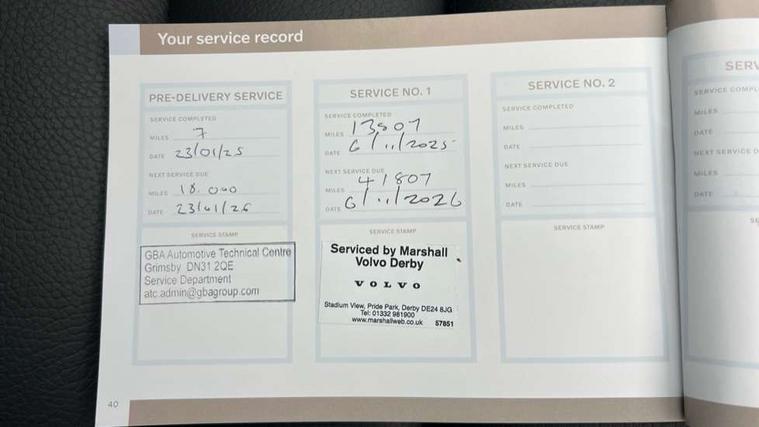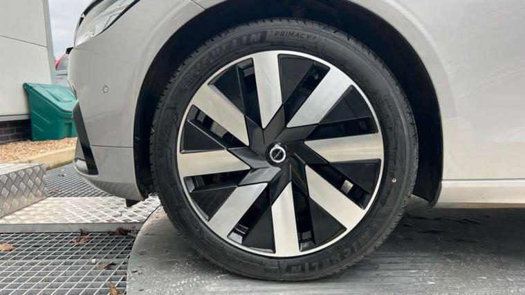 12.3" Progressive Driver Display, 360 degree surround view parking camera with side proximity sensors, 9" centre console touch screen, Adjustable steering wheel force, Apple CarPlay and Android Auto, Bluetooth handsfree system, Drive mode settings, Driver alert control with lane keeping aid, Driver assistance (pilot assist and adaptive cruise control), Driver awareness - Blind spot system + steer assist, cross traffic alert with autobrake, rear collision warning and mitigation, E-call, Emergency assist, Front and rear park assist, Google automotive services - Enabled entertainment apps, navigation with google maps, voice recognition with google assistant, Handsfree bootlid opening/closing, Intelligent speed assistance, Oncoming Lane Mitigation, Power operated tailgate/boot lid, Speed sensitive steering, Volvo on call app, 6m 3 phase 16amp Type 2 / mode 3 charge cable, 7m 10amp charge cable with 3 pin plug, 8 speed automatic transmission with start/stop + manual change functions, Dynamic chassis, Electric rear axle drive, Lithium-Ion Battery 18.8kWh, On board charger - 6.4 kW 2 phase/3.7kW single phase, Recharging port located in nearside front wing, DAB Radio (Digital Audio Broadcasting), Low speed exterior sound speaker, Premium Sound by Harman Kardon, dirac unison, dolby pro logic II surround sound, 13 speakers/600W output and fresh air subwoofer, Steering wheel remote infotainment controls, Adaptive brake lights with high level LED brake lights, Auto dimming interior + exterior mirrors, Automatic headlight levelling system, Automatic LED Headlights + Active high beam incorporating daytime running lights, Front and rear power windows, Heated windscreen, High gloss black door mirrors and window surround, High gloss black front and rear bumper decoratives, High gloss black mesh front grille and surround, Home safe and approach lighting, Integrated roof rails in high gloss black, Puddle lights, Rain sensor with automatic windscreen wiper activation, Rear LED lights with sequential indicators, Rear side wing doors, Rear wiper, Roof antenna, Roof spoiler, Variable front intermittent wipers, Visible VIN plate, 2 zone electronic climate control with Clean zone air quality system + pollen filter, 3 seat bench in 2nd row, 3 Spoke tailored steering wheel with chrome trim, Air purifier particulate matter (PM) 2.5 filter, Ambient door and instrument panel lighting, B Pillar ventilation, Boot lid/tailgate illumination, Bright metal luggage scuff plate, Cargo divider with grocery bag holder, Centre console cupholder and storage, Charcoal carpets and floor mats, Driver and front passenger seat power height adjustment, Extended front seat cushions, Front 12V socket tunnel console and cargo area, Front and rear cabin courtesy light, Front and rear door pocket lights, Front and rear footwell and side step illumination, Front and rear reading lights and centre armrest Storage Illumination, Front headrests, Glovebox compartment with illumination, Heated front seats, Heated rear seats outer positions, Heated steering wheel, Height/reach adjustable steering column, Illuminated luggage compartment, Illuminated recharge aluminium tread plates, Illuminated vanity mirrors + ticket holder, Inner door release handle illumination, Integrated sun curtains in rear doors, ISOFIX attachment on outer rear seats, Leather upholstery, Load cover, Load protection net, Luggage compartment load hooks, Memory function for drivers seat and exterior mirrors, Multi directional lumbar support, Power folding rear headrests, Rear armrest with cupholder, Single front passenger seat, Underfloor cargo storage, Versatile split folding rear seat - 60/40, 3x3 point rear seatbelts, Active bonnet, City safety with steering support with Pedestrian + cyclist + front collision warning with full auto brake and rear auto brake, Driver and front passenger airbags, Drivers knee airbag, Front seats SIPS airbags, Hill start assist, IC (Inflatable Curtains) - Full Length, Passenger airbag cut-off switch, Power child locks on rear doors, Power parking brake with auto hold function, Road sign information display, Run off Road Mitigation, Run off Road Protection, Seatbelt reminder and pretensioners for all seats, SIPS (Side Impact Protection System), Slippery road and hazard light alert, Stability and Traction Control with Spin control, Engine Drag Control and Corner Traction Control, Tyre pressure monitoring system, Vehicle deceleration control with Anti-lock Brake System, Electronic Brake Distribution and Emergency Brake Assist, Warning triangle and first aid kit, WHIPS whiplash protection system - front, 2x Key integrated remote control central locking + fuel flap with deadlocking system and auto open/close power windows, Anti-theft alarm including immobiliser/volume sensor + level sensor, Care key with user defined top speed, Keyless drive includes keyless entry and keyless start, Locking wheel nuts, Private locking for tailgate, Tailored Instrument Panel and Door Tops with Contrast Stitching, 19'' 8 spoke diamond cut black alloy wheels, Tyre sealant kit and compressor,