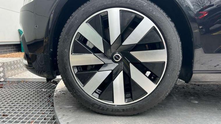 12.3" Progressive Driver Display, 360 degree surround view parking camera with side proximity sensors, 9" centre console touch screen, Adjustable steering wheel force, Apple CarPlay and Android Auto, Bluetooth handsfree system, Drive mode settings, Driver alert control with lane keeping aid, Driver assistance (pilot assist and adaptive cruise control), Driver awareness - Blind spot system + steer assist, cross traffic alert with autobrake, rear collision warning and mitigation, E-call, Emergency assist, Front and rear park assist, Google automotive services - Enabled entertainment apps, navigation with google maps, voice recognition with google assistant, Handsfree bootlid opening/closing, Intelligent speed assistance, Oncoming Lane Mitigation, Power operated tailgate/boot lid, Speed sensitive steering, Volvo on call app, 6m 3 phase 16amp Type 2 / mode 3 charge cable, 7m 10amp charge cable with 3 pin plug, 8 speed automatic transmission with start/stop + manual change functions, Dynamic chassis, Electric rear axle drive, Lithium-Ion Battery 18.8kWh, On board charger - 6.4 kW 2 phase/3.7kW single phase, Recharging port located in nearside front wing, DAB Radio (Digital Audio Broadcasting), Low speed exterior sound speaker, Premium Sound by Harman Kardon, dirac unison, dolby pro logic II surround sound, 13 speakers/600W output and fresh air subwoofer, Steering wheel remote infotainment controls, Adaptive brake lights with high level LED brake lights, Auto dimming interior + exterior mirrors, Automatic headlight levelling system, Automatic LED Headlights + Active high beam incorporating daytime running lights, Front and rear power windows, Heated windscreen, High gloss black door mirrors and window surround, High gloss black front and rear bumper decoratives, High gloss black mesh front grille and surround, Home safe and approach lighting, Integrated roof rails in high gloss black, Puddle lights, Rain sensor with automatic windscreen wiper activation, Rear LED lights with sequential indicators, Rear side wing doors, Rear wiper, Roof antenna, Roof spoiler, Variable front intermittent wipers, Visible VIN plate, 2 zone electronic climate control with Clean zone air quality system + pollen filter, 3 seat bench in 2nd row, 3 Spoke tailored steering wheel with chrome trim, Air purifier particulate matter (PM) 2.5 filter, Ambient door and instrument panel lighting, B Pillar ventilation, Boot lid/tailgate illumination, Bright metal luggage scuff plate, Cargo divider with grocery bag holder, Centre console cupholder and storage, Charcoal carpets and floor mats, Driver and front passenger seat power height adjustment, Extended front seat cushions, Front 12V socket tunnel console and cargo area, Front and rear cabin courtesy light, Front and rear door pocket lights, Front and rear footwell and side step illumination, Front and rear reading lights and centre armrest Storage Illumination, Front headrests, Glovebox compartment with illumination, Heated front seats, Heated rear seats outer positions, Heated steering wheel, Height/reach adjustable steering column, Illuminated luggage compartment, Illuminated recharge aluminium tread plates, Illuminated vanity mirrors + ticket holder, Inner door release handle illumination, Integrated sun curtains in rear doors, ISOFIX attachment on outer rear seats, Leather upholstery, Load cover, Load protection net, Luggage compartment load hooks, Memory function for drivers seat and exterior mirrors, Multi directional lumbar support, Power folding rear headrests, Rear armrest with cupholder, Single front passenger seat, Underfloor cargo storage, Versatile split folding rear seat - 60/40, 3x3 point rear seatbelts, Active bonnet, City safety with steering support with Pedestrian + cyclist + front collision warning with full auto brake and rear auto brake, Driver and front passenger airbags, Drivers knee airbag, Front seats SIPS airbags, Hill start assist, IC (Inflatable Curtains) - Full Length, Passenger airbag cut-off switch, Power child locks on rear doors, Power parking brake with auto hold function, Road sign information display, Run off Road Mitigation, Run off Road Protection, Seatbelt reminder and pretensioners for all seats, SIPS (Side Impact Protection System), Slippery road and hazard light alert, Stability and Traction Control with Spin control, Engine Drag Control and Corner Traction Control, Tyre pressure monitoring system, Vehicle deceleration control with Anti-lock Brake System, Electronic Brake Distribution and Emergency Brake Assist, Warning triangle and first aid kit, WHIPS whiplash protection system - front, 2x Key integrated remote control central locking + fuel flap with deadlocking system and auto open/close power windows, Anti-theft alarm including immobiliser/volume sensor + level sensor, Care key with user defined top speed, Keyless drive includes keyless entry and keyless start, Locking wheel nuts, Private locking for tailgate, Tailored Instrument Panel and Door Tops with Contrast Stitching, 19'' 8 spoke diamond cut black alloy wheels, Tyre sealant kit and compressor,