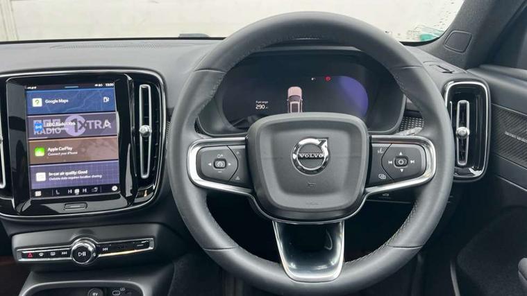 12.3" Progressive Driver Display, 360 degree surround view parking camera with side proximity sensors, 9" centre console portrait touch screen, Adjustable steering wheel force, Bluetooth hands free telephone kit, E-call, Front park assist, Google automatic services - Nav with google maps, apple carplay/android auto, voice recognition with google assistant, Hands free power tailgate, Lane keep assist with driver alert control, Oncoming Lane Mitigation, Rear park assist, Speed limiter, Speed sensitive steering, Wireless/Inductive Mobile Phone Charging, Dynamic chassis, DAB Digital radio, Premium Sound by Harman Kardon, Dolby Pro Logic II Surround Sound, Dirac Unison, 12 speakers/600W and subwoofer, Steering wheel mounted remote controls, Active bending pixel LED headlights with adaptive shadow technology, Active high beam incorporating daytime running lights, Adaptive brake lights with high level LED brake lights, Auto dimming interior mirror, Automatic headlamp levelling, Dark tinted windows for rear door side windows and cargo compartment, Front aluminium tread plates, Front and rear electric windows, Headlight cleaning system, High gloss black front and rear skid plate, High gloss black mesh front grille with high gloss black surround, High gloss black window trim, Home safe and approach lighting, Integrated roof rails in high gloss black, LED front fog lights, Power glass tilt and slide panoramic sunroof with sun curtain, Puddle lights, Rain sensor with automatic windscreen wiper activation, Rear side wing doors, Rear wiper, Roof antenna, Roof spoiler, Visible VIN plate, 12V socket in front tunnel console and luggage compartment, 2-Zone electronic climate control with CleanZone air quality system and pollen filter, 3 seat bench in 2nd row, 3 Spoke tailored steering wheel with chrome trim, 60/40 versatile split folding rear seat, A-pillar parking ticket holder, Ambient front door and instrumental panel lighting, Centre console cupholders and storage, Flexible load floor and grocery bag holder, Floor mats, Front door pocket and front cupholder illumination, Front footwell illumination, Front headrests, Front reading light and theatre lighting, Front seat cushion extensions, Front tunnel pocket, Glovebox bag hook, Heated front seats, Height adjustable passenger seat, Height/reach adjustable steering column, High gloss centre tunnel deco, Illuminated glovebox, Illuminated luggage compartment, Illuminated tailgate, Illuminated vanity mirrors, Integrated waste bin, Isofix attachments on outer rear seats, Load protection net, Multi directional lumbar support, Power driver seat with memory + exterior mirrors memory, Power folding rear headrests, Power passenger seat, Rear armrest / integral cup holders / storage tray, Rear reading and courtesy lights, Single front passenger seat, Underfloor cargo storage, Climate pack without heated front seats - XC40, Driver assist pack - XC40, 3x3 point rear seatbelts, City safety with steering support with Pedestrian + cyclist + front collision warning with full auto brake and rear auto brake, Drivers knee airbag, Dual stage driver/passenger airbags, Electronic parking brake with auto hold, First aid kit, Front and outer rear seatbelt reminder and pretensioners, Front seats SIPS airbags, Hill descent control, Hill start assist, Inflatable curtain, Passenger airbag cut-off device, Power child locks on rear doors, Road sign information display, Run off Road Mitigation, Run off Road Protection, SIPS (Side Impact Protection System), Slippery road and hazard light alert, Stability and Traction Control with Spin control, Engine Drag Control and Corner Traction Control, Tyre pressure monitoring system, Vehicle deceleration control with Anti-lock Brake System, Electronic Brake Distribution and Emergency Brake Assist, Warning triangle, WHIPS whiplash protection system - front, Anti-theft alarm including immobiliser/volume sensor + level sensor, Key integrated remote control central locking + fuel flap with deadlocking system and auto open/close power windows, Keyless drive includes keyless entry and keyless start, Locking wheel nuts,