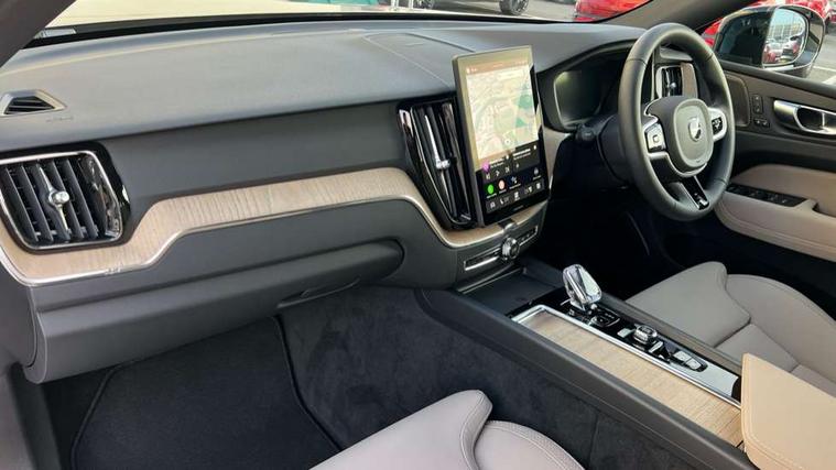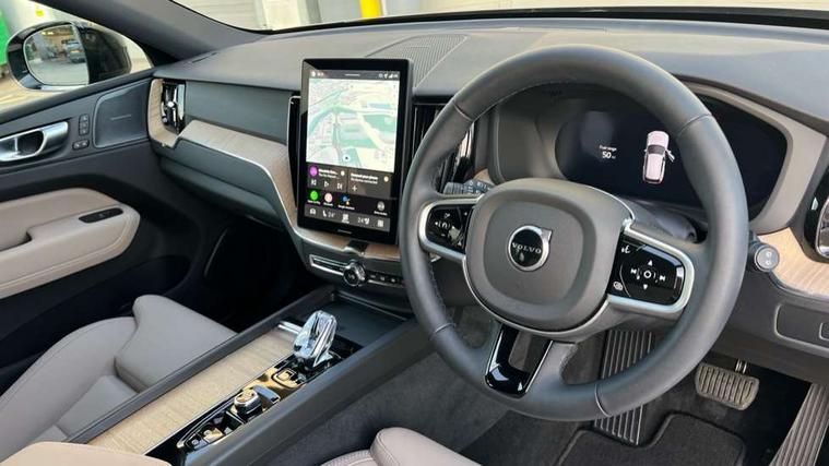 11.2" centre console touch screen, 12.3" Progressive Driver Display, 360 degree surround view parking camera with side proximity sensors, Adaptive cruise control, Adjustable steering wheel force, Android auto (Wired), Apple carplay (wired), Bluetooth handsfree system, Driver alert control with lane keeping aid, Emergency services call system, Front and rear park assist, Google Automotive Services, Intelligent speed assistance, Oncoming Lane Mitigation, PAS, Power operated tailgate with handsfree opening and closing, Service interval indicator, Speed limiter, Speed sensitive steering, Trip computer, Volvo cars services with app, Volvo on call with App, Wireless/Inductive Mobile Phone Charging, 8 speed automatic transmission with start/stop + manual change functions, DAB Digital radio, Premium Sound by Harman Kardon, dirac unison, dolby pro logic II surround sound, 13 speakers/600W output and fresh air subwoofer, Steering wheel remote infotainment controls, Adaptive brake lights with high level LED brake lights, Auto dimming interior + exterior mirrors, Automatic headlight levelling system, Automatic LED Headlights + Active high beam incorporating daytime running lights, Electric adjustable/heated/auto power folding door mirrors, Electric front+rear windows, Front aluminium tread plates, Heated front windscreen, High gloss black door mirrors and window surround, High gloss black front and rear bumper decoratives, High gloss black mesh front grille with high gloss black surround, Home safe and approach lighting, Integrated roof rails in high gloss black, Puddle lights, Rain sensor with automatic windscreen wiper activation, Rear side wing doors, Rear wiper, Roof antenna, Roof spoiler, Tinted windscreen, Visible VIN plate, 12V socket in front tunnel console and luggage compartment, 3 seat bench in 2nd row, 3 Spoke tailored steering wheel with chrome trim, 4 Zone electronic climate control, A-pillar parking ticket holder, Air purifier particulate matter (PM) 2.5 filter, B Pillar ventilation, Bright metal luggage scuff plate, Centre console cupholders and storage, Charcoal floor mats, Front and rear courtesy lights, Front and rear door pocket illumination, Front cupholder illumination, Front footwell illumination, Front reading lights, Front seat cushion extensions, Glovebox compartment with illumination, Head restraints for all seats, Heated front seats, Heated steering wheel, Height/reach adjustable steering column, Illuminated luggage compartment, Illuminated vanity mirrors + ticket holder, Inner door release handle illumination, ISOFIX attachment on outer rear seats, Load cover, Load protection net, Multi directional lumbar support, Power driver seat with memory + exterior mirrors memory, Power height adjustable passenger seat, Power passenger seat with memory, Quilted nordico leather upholstery, Rear armrest with cupholder, Rear footwell and front and rear side step illumination, Rear reading lights, Rear seat concealed storage, Single front passenger seat, Tailgate illumination and ambient door lighting, Underfloor stowage compartment, Versatile split folding rear seat - 60/40, Driver assist pack without Adaptive cruise control - XC60, 5 three point seatbelts, City safety with steering support with Pedestrian + cyclist + front collision warning with full auto brake and rear auto brake, Drivers knee airbag, Dual stage driver/passenger airbags, Electronic parking brake with auto hold, First aid kit, Front seats SIPS airbags, Hill descent control - Off-road drive mode, Hill start assist, IC (Inflatable Curtains) - Full Length, Passenger airbag cut-off device, Power child locks on rear doors, Road sign information display, Run off Road Mitigation, Run off Road Protection, Seatbelt reminder and pretensioners, SIPS (Side Impact Protection System), Slippery road and hazard light alert, Stability and Traction Control with Spin control, Engine Drag Control and Corner Traction Control, Tyre pressure monitoring system, Vehicle deceleration control with Anti-lock Brake System, Electronic Brake Distribution and Emergency Brake Assist, Warning triangle, WHIPS whiplash protection system - front, Anti-theft alarm including immobiliser/volume sensor + level sensor, Key integrated remote control central locking + fuel flap with deadlocking system and auto open/close power windows, Keyless Drive (includes Keyless Entry and Keyless Start), Locking wheel nuts, Private locking for tailgate, Summer tyres,