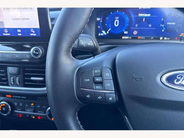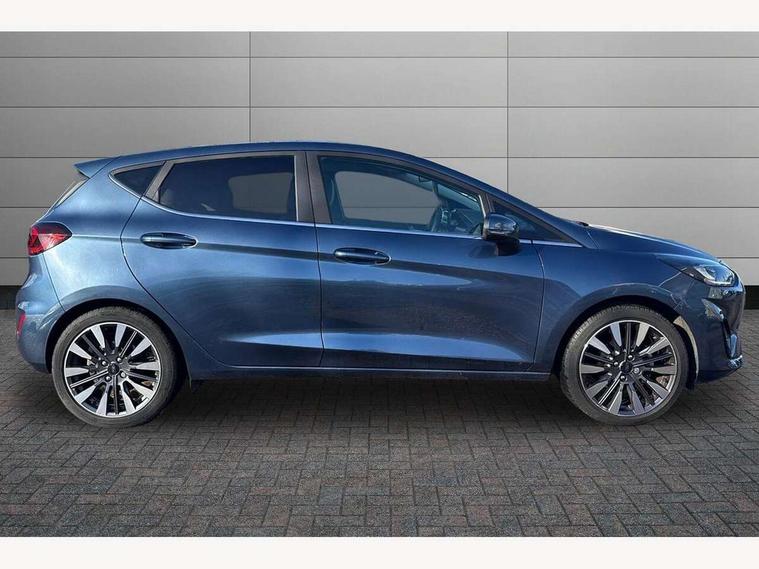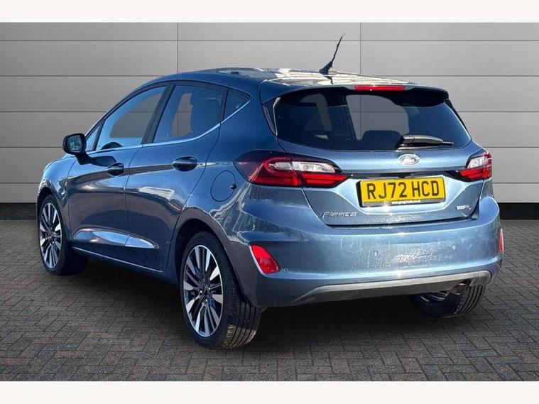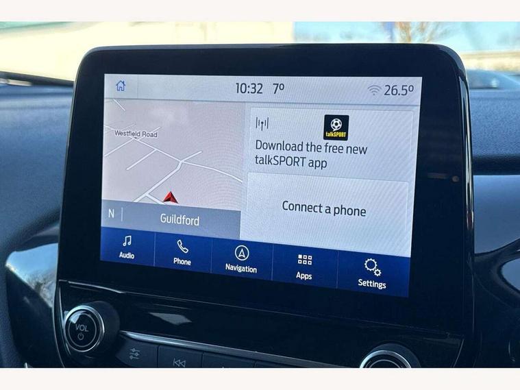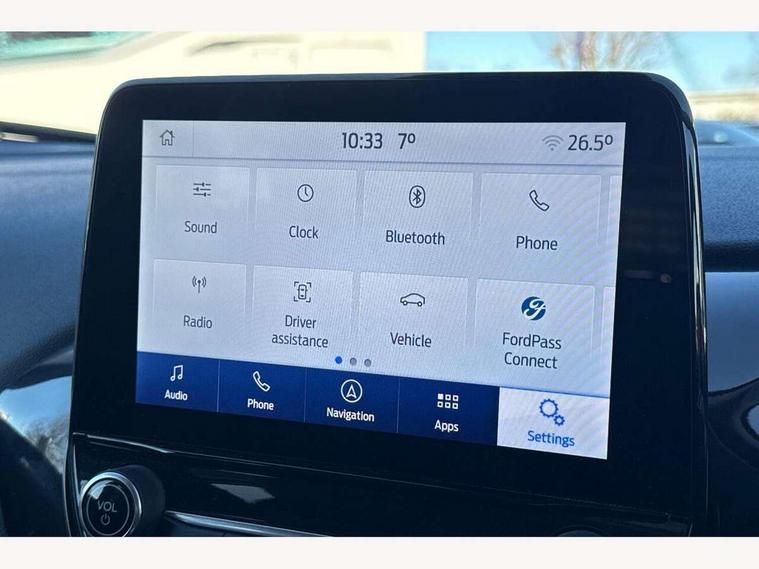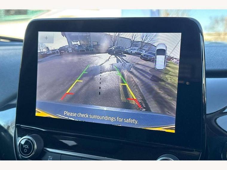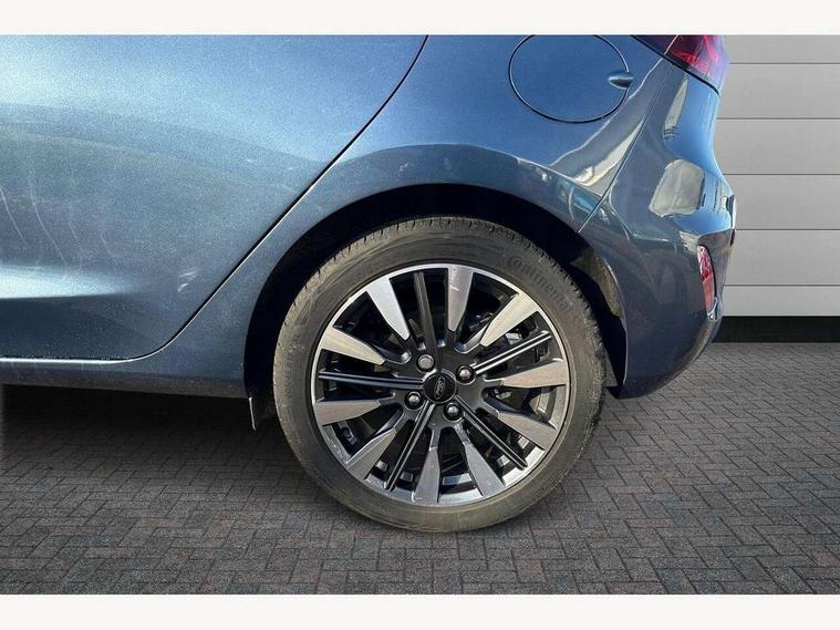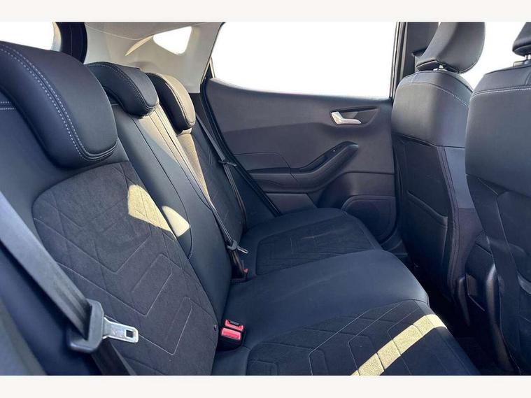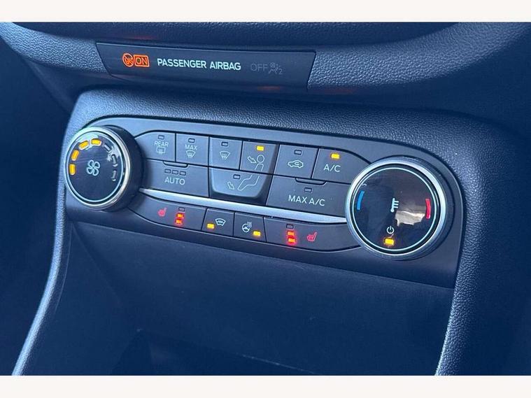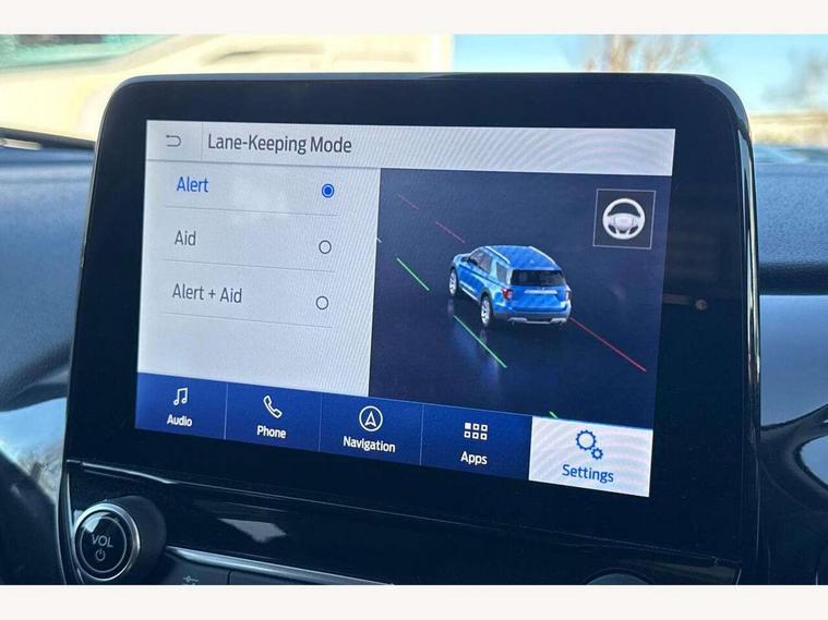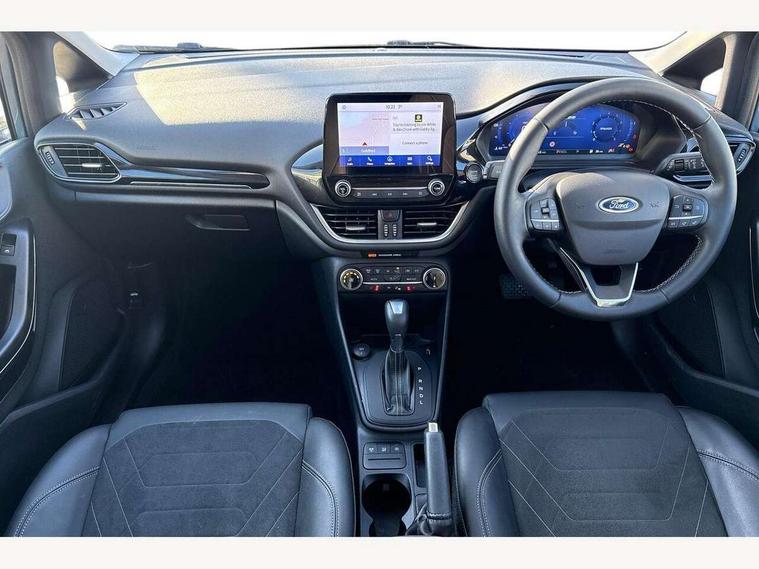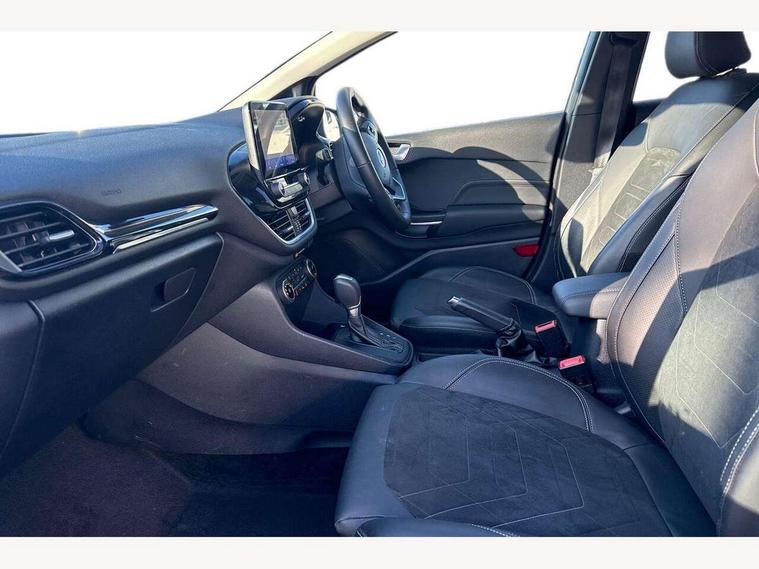 4.2" TFT instrument cluster screen, Bluetooth system, Electric power steering, Ford easy fuel, Rear parking distance sensors, Selectable drive modes (Normal, Sport, Track), Traffic sign recognition, Trip computer, 2 USB ports, Auxiliary input socket, B&O Premium audio system with 8" touchscreen, 10 speakers, 360 degree sound system, Ford SYNC 3 navigation system and Ford pass connect, DAB Digital radio, Steering wheel mounted controls, Auto high beam, Body colour bumpers, Body colour door handles, Body colour rear spoiler, Body coloured electrically operated and heated door mirrors with side indicators, Chrome beltline trim, Chrome front grille, Chrome lower window surround, Cornering front fog lights, Electric front windows/one touch facility, Electric rear windows, LED Night signature to rear lights, Power foldable door mirrors with puddle lights, Quickclear heated windscreen, Rain sensing wipers and auto dimming rear view mirror, Rear privacy glass, Rear wiper, 3 spoke leather trimmed steering wheel with audio control, 60/40 split folding rear seat, Adjustable head restraints, Boot carpet, Centre console with opening armrest, 2x cupholders, 12v and USB, Chrome inner door handles, Drivers and Passenger lumbar support, EATC - Electronic Auto Temperature control, Footwell illumination, Front floor mats in velour, Front map reading lights, Front seat and rear pockets, Height adjustable passenger seat, Illuminated glovebox, Leather gear knob, LED ambient lighting, Load area light, Luxury woven headliner, Manual 4-way driver seat adjust, Overhead console with sunglasses holder, Pollen filter, Rake/reach adjustable steering wheel, Sensico partial premium upholstery, Sensico wrapped steering wheel, NCAP Pack - Fiesta, 3 point seatbelts on all rear seats, ABS+EBA, Curtain airbags, Driver and passenger airbags, Drivers knee airbag, Electronic stability control with hill start assist, Front passenger airbag deactivation, Front side airbags, Seatbelt warning, Two tone horn, Tyre pressure monitoring system, Ford keyfree system with Keyless entry and keyless start, MyKey system, Remote central locking & engine immobiliser, Thatcham Cat.1 alarm, 17" 8 spoke alloy wheels,