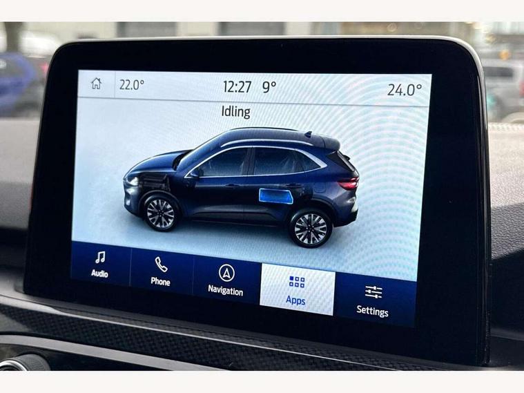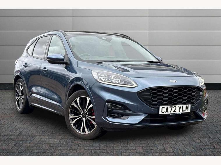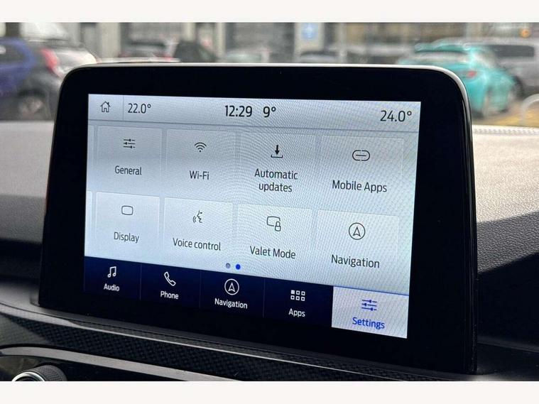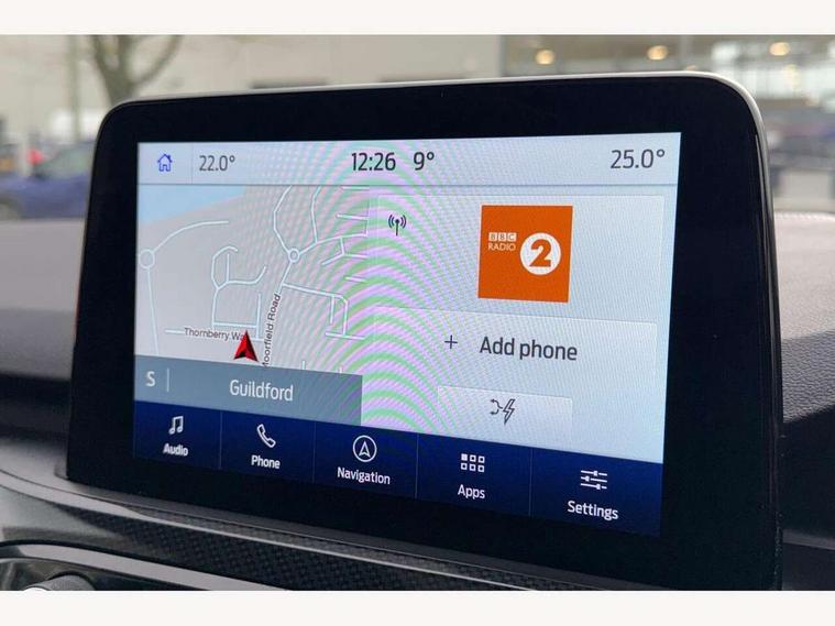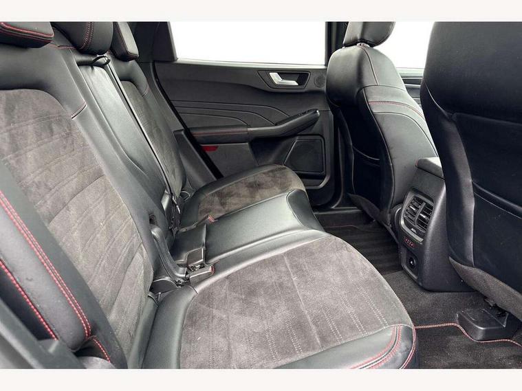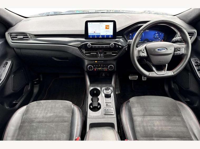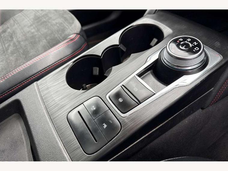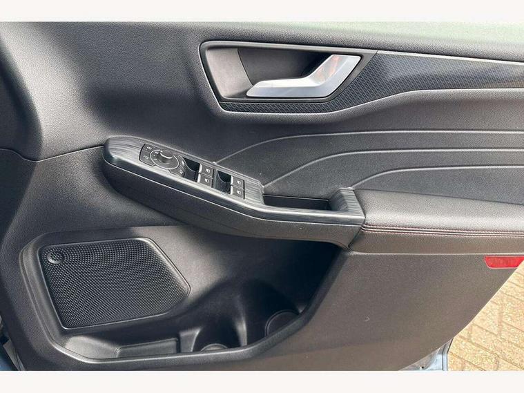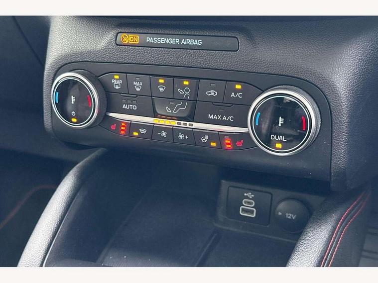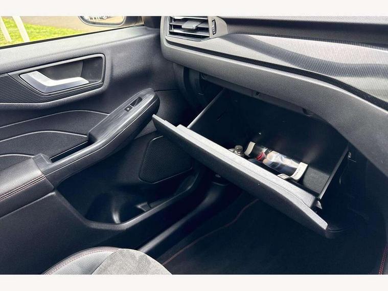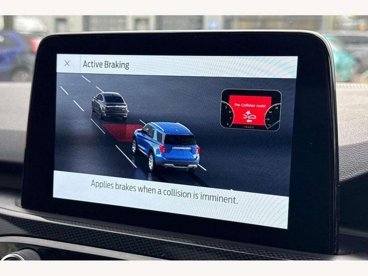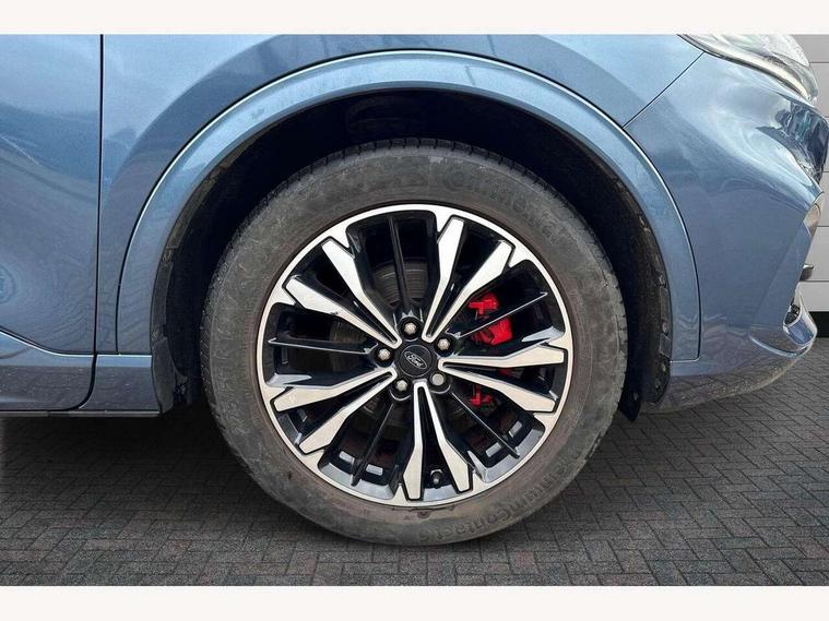 12.3" digital colour instrument cluster, Ford easy fuel, Ford SYNC 3 with 8" TFT LCD touchscreen, App Link, andriod auto/apple carPlay, emergency assistance and navigation with Ford pass connect, Front and rear parking sensors, Hands free power tailgate, Lane keeping aid with lane departure warning, Power assist steering, Rear view camera, Selectable drive modes, Service interval indicator, Sports suspension, Twist beam rear suspension, B&O premium audio system with 10 speakers and subwoofer, 2 USB ports, DAB radio/CD, Auto headlamps with high and low beam, Black roof rails, Day/night rear view mirror, Front LED fog lamps, Large rear spoiler, LED daytime running lights, LED rear lights, Power folding heated door mirrors with puddle lights, Power front/rear windows with global close, Power opening panoramic roof, Privacy glass, Quickclear heated windscreen, Rear side wing doors, Rear wiper, ST Line body styling kit with unique front and rear fascia and bumper, rear painted diffuser, front painted skid plates, dark mesh upper grille, ST Line front scuff plates, Third brake light, Twin exhausts, 10 way power adjustable drivers seat, 2nd row sliding seats with 60:40 split, 8 way manual passenger seat including lumbar support and height adjust, Alloy pedals, Centre console with electronic parking brake, Dark headlining and pillars, Electronic automatic temperature control (EATC), Flat bottomed leather steering wheel in sensico with red stitching, Front and rear head restraints, Heated passenger and driver seats, Heated rear seats, Heated steering wheel, Partial premium touch sensico leather upholstery with black cloth inserts and red stitching, Rear charging point, Single front passenger seat, Sports seats, ST Line front and rear floor mats, 3x3 point rear seatbelts, Airbags - front driver/passenger, front and rear curtain, Drivers knee airbag, Electronic stability control (ESC) and ABS, Ford MyKey Gen 2 safety system, Manual child proof rear door locks, Post collision braking, Pre collision assist with autonomous emergency braking, Rear seat Occupancy alert, Red brake calipers, Tyre pressure monitoring system, Engine immobiliser, Keyless entry and Ford power start button (Keyless start), Locking wheel nuts, Remote powered central double locking doors, Thatcham category 1 alarm,