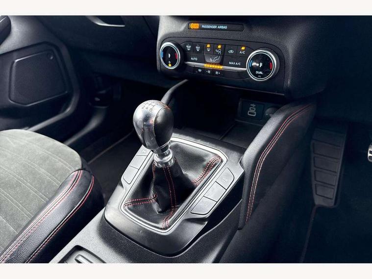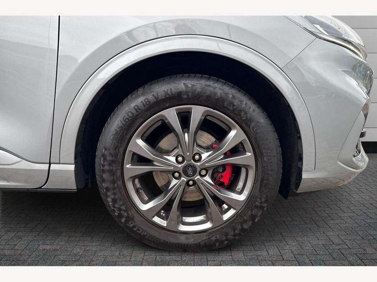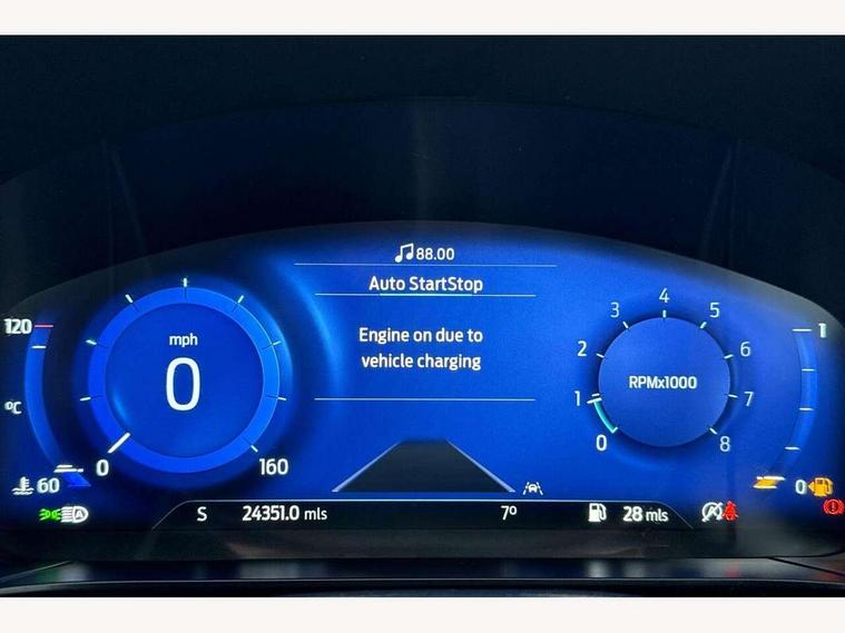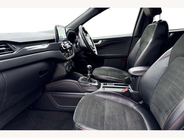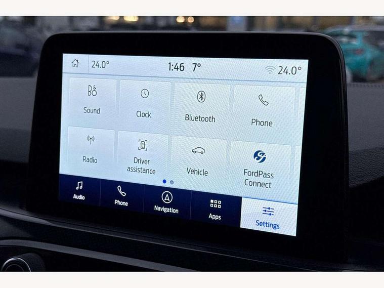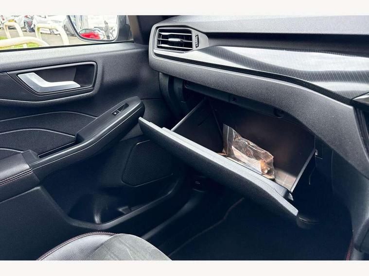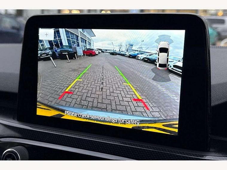 12.3" digital colour instrument cluster, Ford easy fuel, Ford SYNC 3 with 8" TFT LCD touchscreen, App Link, andriod auto/apple carPlay, emergency assistance and navigation with Ford pass connect, Front and rear parking sensors, Hands free power tailgate, Lane keeping aid with lane departure warning, Power assist steering, Rear view camera, Selectable drive modes, Service interval indicator, Sports suspension, Twist beam rear suspension, B&O premium audio system with 10 speakers and subwoofer, 2 USB ports, DAB radio/CD, Auto headlamps with high and low beam, Black roof rails, Body colour bumpers, Day/night rear view mirror, Front LED fog lamps, Large rear roof spoiler, LED daytime running lights, LED rear lights, Power folding, electrically adjustable and heated door mirrors with puddle lights, Power front/rear windows with global close, Quickclear heated windscreen, Rain sensing wipers, Rear privacy glass, Rear side wing doors, Rear wiper, ST Line body styling kit with unique front and rear fascia and bumper, rear painted diffuser, front painted skid plates, dark mesh upper grille, ST Line front scuff plates, Third brake light, Twin exhausts, 2nd row sliding seats with 60:40 split, Alloy pedals, Centre console with electronic parking brake, Dark headlining and pillars, Electronic automatic temperature control (EATC), Flat bottomed leather steering wheel in sensico with red stitching, Front and rear head restraints, Partial premium touch Sensico with black cloth inserts and red stitching, Rear centre head restraint, Single front passenger seat, Sports seats, ST Line front and rear floor mats, ST Line gear knob, 3x3 point rear seatbelts, Airbags - front driver/passenger, front and rear curtain, Drivers knee airbag, Electronic stability control (ESC) and ABS, Ford MyKey Gen 2 safety system, Manual child proof rear door locks, Post collision braking, Pre collision assist with autonomous emergency braking, Rear seat Occupancy alert, Red brake calipers, Tyre pressure monitoring system, Engine immobiliser, Keyless entry and Ford power start button (Keyless start), Locking wheel nuts, Remote powered central double locking doors, Thatcham category 1 alarm,
