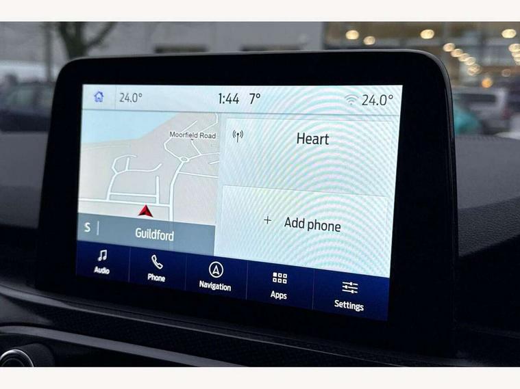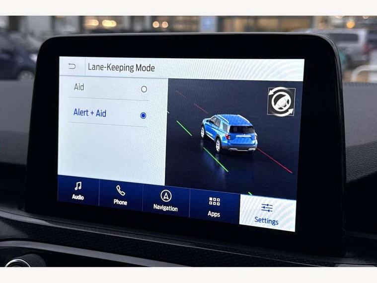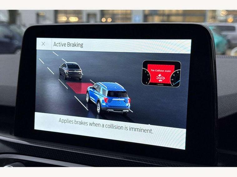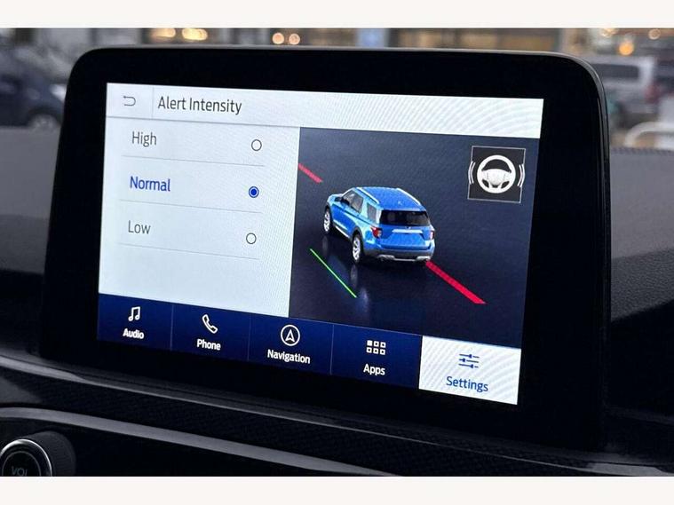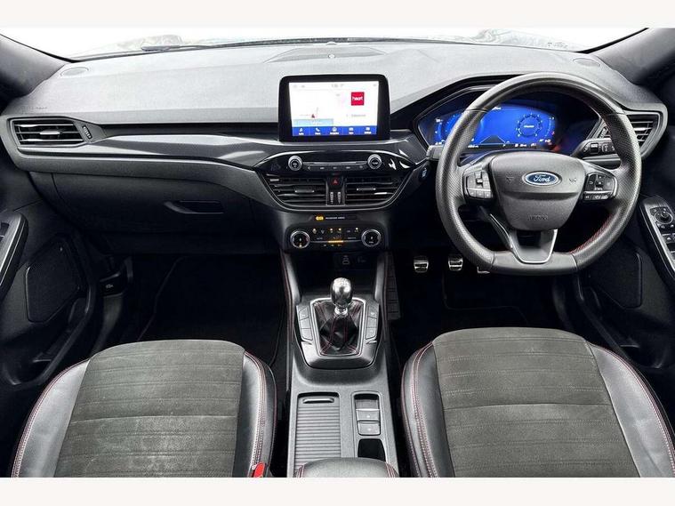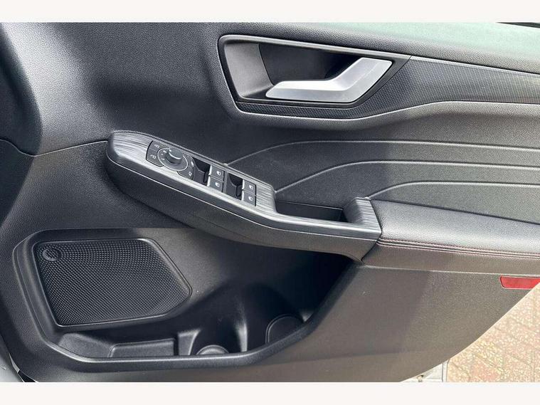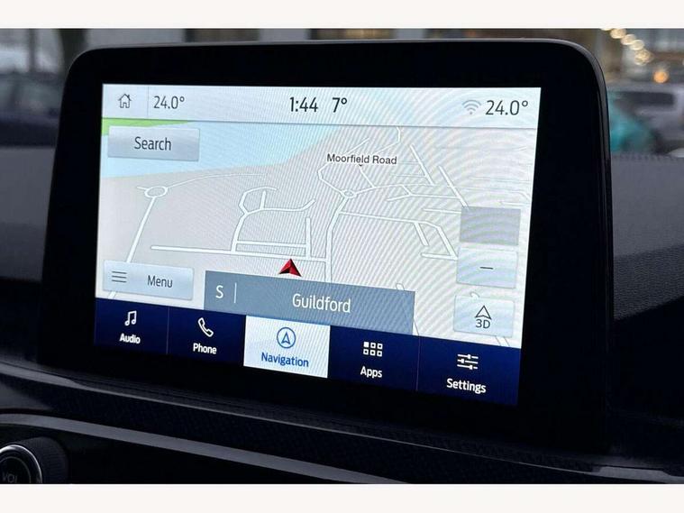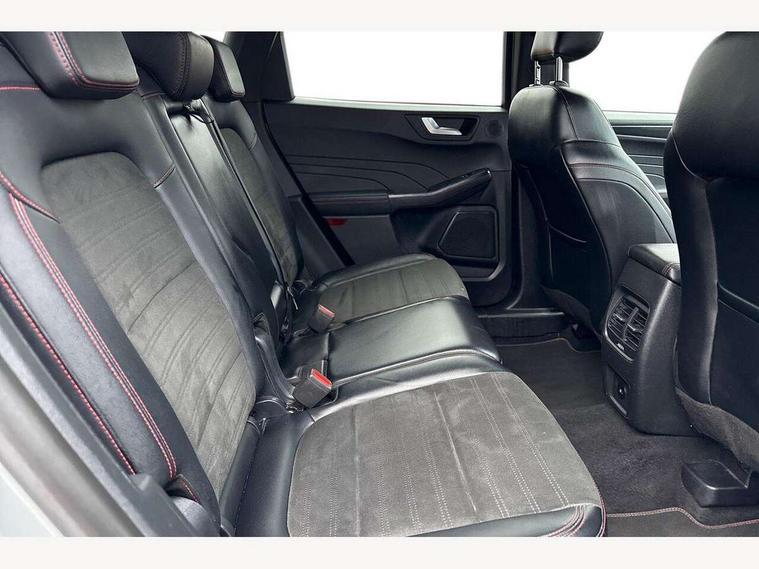 12.3" digital colour instrument cluster, Ford easy fuel, Ford SYNC 3 with 8" TFT LCD touchscreen, App Link, andriod auto/apple carPlay, emergency assistance and navigation with Ford pass connect, Front and rear parking sensors, Hands free power tailgate, Lane keeping aid with lane departure warning, Power assist steering, Rear view camera, Selectable drive modes, Service interval indicator, Sports suspension, Twist beam rear suspension, B&O premium audio system with 10 speakers and subwoofer, 2 USB ports, DAB radio/CD, Auto headlamps with high and low beam, Black roof rails, Body colour bumpers, Day/night rear view mirror, Front LED fog lamps, Large rear roof spoiler, LED daytime running lights, LED rear lights, Power folding, electrically adjustable and heated door mirrors with puddle lights, Power front/rear windows with global close, Quickclear heated windscreen, Rain sensing wipers, Rear privacy glass, Rear side wing doors, Rear wiper, ST Line body styling kit with unique front and rear fascia and bumper, rear painted diffuser, front painted skid plates, dark mesh upper grille, ST Line front scuff plates, Third brake light, Twin exhausts, 2nd row sliding seats with 60:40 split, Alloy pedals, Centre console with electronic parking brake, Dark headlining and pillars, Electronic automatic temperature control (EATC), Flat bottomed leather steering wheel in sensico with red stitching, Front and rear head restraints, Partial premium touch Sensico with black cloth inserts and red stitching, Rear centre head restraint, Single front passenger seat, Sports seats, ST Line front and rear floor mats, ST Line gear knob, 3x3 point rear seatbelts, Airbags - front driver/passenger, front and rear curtain, Drivers knee airbag, Electronic stability control (ESC) and ABS, Ford MyKey Gen 2 safety system, Manual child proof rear door locks, Post collision braking, Pre collision assist with autonomous emergency braking, Rear seat Occupancy alert, Red brake calipers, Tyre pressure monitoring system, Engine immobiliser, Keyless entry and Ford power start button (Keyless start), Locking wheel nuts, Remote powered central double locking doors, Thatcham category 1 alarm,