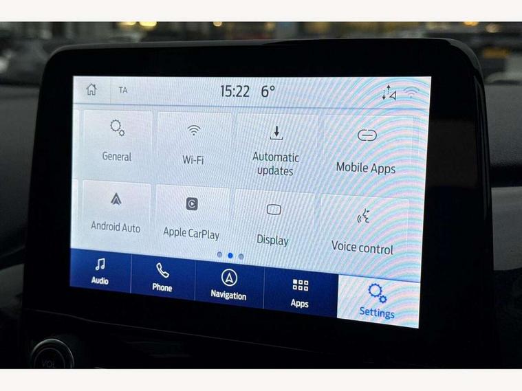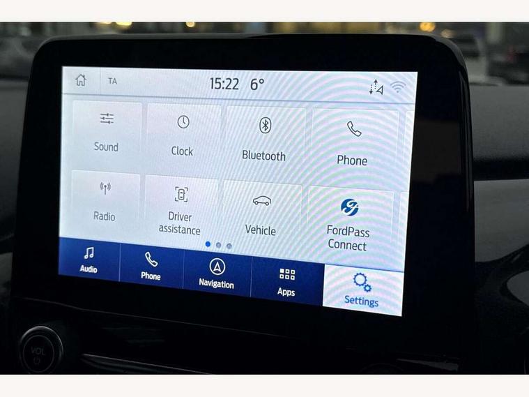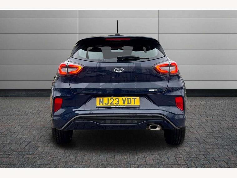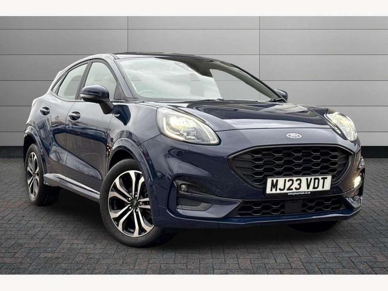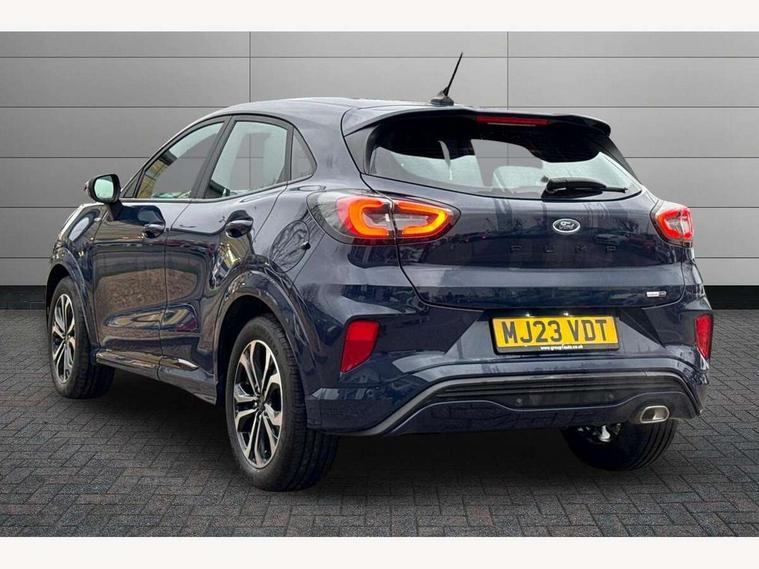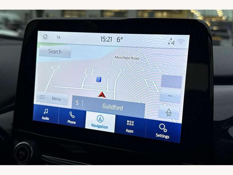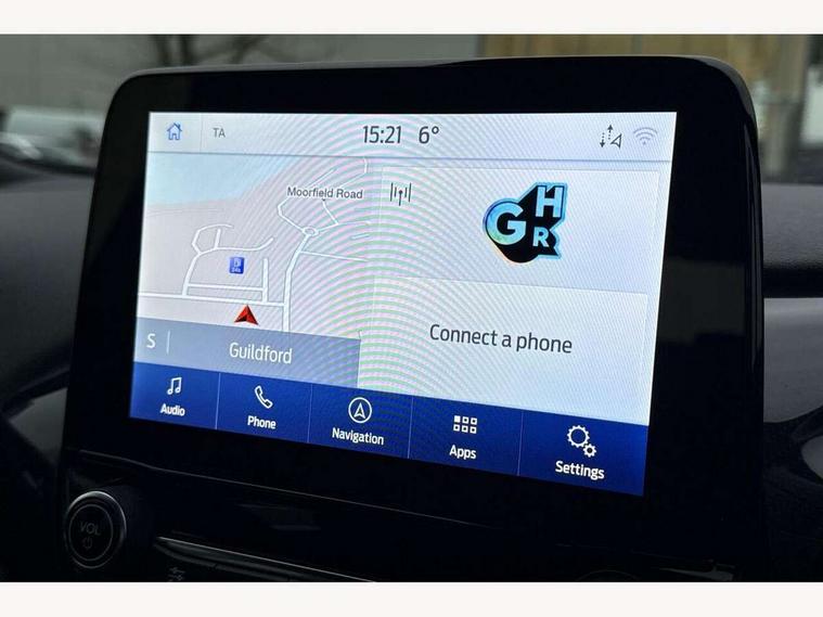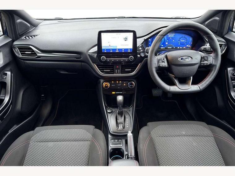 Driver impairment monitor, Emergency call service, Ford easy fuel, Full digital 12.3" instrument cluster, Lane keeping aid with lane departure warning, Power assist steering, Power start button, Rear parking sensor, Selectable drive modes(Normal, Eco, Sport, Slippery and Trail), Speed sign recognition, Sport suspension, Automatic headlights with auto high beam, Automatic rain sensing wipers, LED rear lamps, Power foldable heated door mirrors with puddle lamps, Projector headlamps with LED day time running lights and front fog lamps, Quickclear heated windscreen, Rear side wing doors, Rear wiper, ST-Line body styling kit with unique grille and large body colour rear spoiler, Third brake light, 3 seat bench in 2nd row, Centre console with armrest and stowage, Ford megabox extended bootspace, Front and rear head restraints, Front floor mats, Manual 2 way passenger seat adjustment, Manual 4 way driver seat adjust with lumbar adjustment, Single front passenger seat, ST- Line cloth trim with red stitching, ST-Line flat bottomed sensico leather steering wheel with leather handbrake and aluminium gear knob, Ford SYNC 3 navigation pack - Puma, 3 rear seatbelts, Child safety lock, Electronic stability control (ESC) and hill start assist, Pedestrian/cyclist detection & post-collision braking, Pre collision assist system, Tyre pressure monitoring system (TPMS), Thatcham alarm,