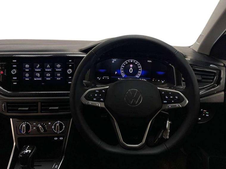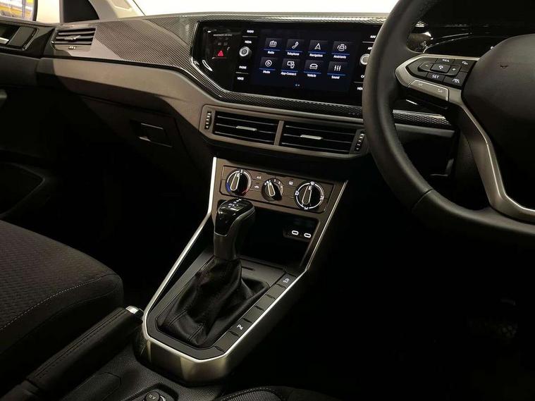 Advanced driver attention and drowsiness monitor, Bluetooth mobile phone interface, Dynamic road sign display, Emergency call service, Mobile phone preparation with inductive charging function, Multifunction front facing camera for distance control, Power assisted speed sensitive steering, Predictive adaptive cruise control without follow-to-stop and speed limiter, Preparation for navigation system with media and internet package, Preparation for We connect and We connect plus, Rear view camera, Speedo and rev counter, electronic odometer, trip, service interval display and exterior temperature gauge, Standard rear axle, Travel Assist - Lane keeping system and traffic jam assist, Travel assist including emergency assist, Trip computer, Warning signal and warning light for front and rear seatbelts not fastened, Washer fluid level indicator, Wireless app connect, Front wheel drive, Rear shock absorpion, Start-stop system with battery regeneration (recuperation - energy recovery during braking), DAB Digital radio, Diversity antenna for FM reception, Automatic dimming interior rear view mirror, Automatic headlight control with LED separate daytime running lights with coming/leaving home function, Body colour bumpers with chrome inserts, Body colour door handles, Body colour door mirrors, Electric front windows, Engine badge deletion, Headlight range adjustment, Heat insulating and laminated safety glass windshield, LED Headlights, LED rear combination lamps, Power folding adjustable/heated exterior mirrors and front passenger exterior mirror lowering function, Rain sensor, Rear electric windows, Rear fog light, Rear side wing doors, Rear tinted glass from B-pillar backwards approx 65% tinted, Rear windscreen washer and wiper with interval delay, Third brake light, 12V power socket in centre console, 2 front and 2 rear reading lights with switch off delay and dimmer, 2 USB-C ports in the front, 2 USB-C charging sockets on the center console in the rear, 3 rear head restraints, 60/40 split folding rear seat and rear seat bench not split, Carpet mats, front and rear, Ceramique roof lining, Chrome plated radiator grille inserts, air vent surrounds and light switch surrounds, Door and side trim panel, Driver and front passenger seat height adjustment, Driver/passenger sunvisors with illuminated vanity mirrors, Front centre armrest, Front seat backrest storage pockets, Front standard seats, Handbrake lever handle in leather, Hartley/Thomas cloth upholstery, Headliner in recycled material, Isofix child seat preparation easy-fit (for two outer rear seats, and front passenger seat) compatible with I-size, Leather trimmed gear knob, Luggage compartment cover, Luggage compartment lighting, Removable luggage compartment floor, Single front passenger seat, Standard climatic zones, Standard pedal cluster, Three spoke leather wrapped multifunction steering wheel with shifting paddles, Light and vision pack - Polo, 3 point height adj front seatbelts + pretensioners, 3 point seat belt for centre rear seat, 3 point seatbelts, outer rear with ECE lable, ABS, Driver and front passenger airbag with front passenger airbag deactivation, Drivers and front passengers safety optimised head restraints, ESC (Electronic stability control) + EDL (Electronic Differntial lock) and ASR (Traction control), Extended and predictive pedestrian/ cyclist protection, Front assist with autonomous emergency braking (for Adaptive Cruise Control ACC up to 130 mph), Front curtain and side airbags with center airbag, Front disc brakes, Hill hold control, Manual child lock in rear doors, Rear drum brakes, Single tone horn, Tyre pressure loss indicator, Alarm with interior protection, Anti-theft alarm system with interior monitoring, backup horn, and towing protection, Anti-theft wheel bolts, Electronic engine immobiliser, Lava stone black gloss/matt decorative inserts in dash and front door panels, 16" Torsby alloy wheels, Low rolling resistance tyres,