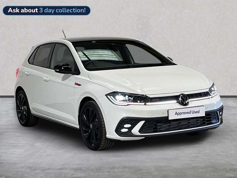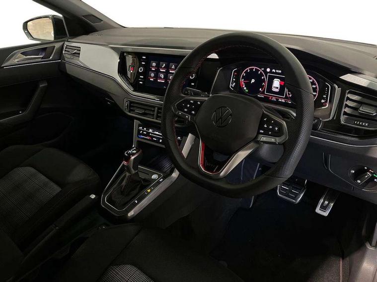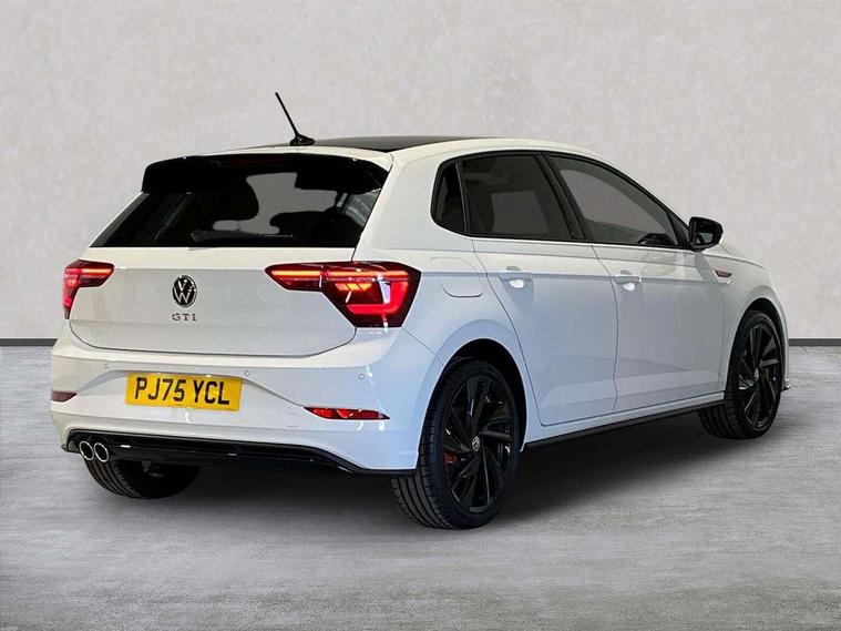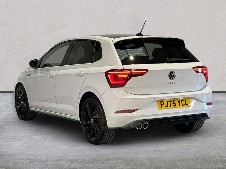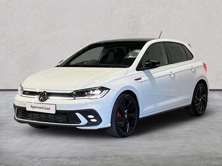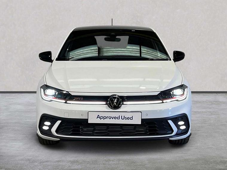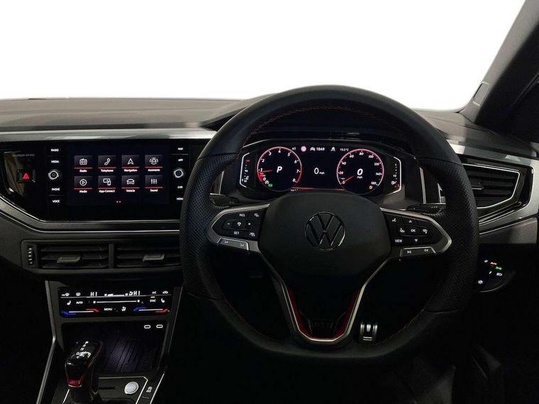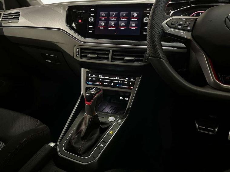 Adaptive cruise control with follow-to-stop and speed limiter, Advanced driver attention and drowsiness monitor, Bluetooth mobile phone interface, Digital Cockpit Pro with 10.25" Display, Dynamic road sign display, Eco mode, Emergency call service, Multifunction camera, Power assisted speed sensitive steering, Preparation for We connect and We connect plus, Speedo and rev counter, electronic odometer, trip, service interval display and fuel gauge, Travel Assist - Lane keeping system and traffic jam assist, Travel assist including emergency assist, Trip computer, Warning signal and warning light for front and rear seatbelts not fastened, Washer fluid level indicator, Wireless app connect, Adaptive chassis control, Front wheel drive, Heavy duty rear axle, Rear shock absorpion sports version, Sports select suspension lowered by 15mm, Start-stop system with battery regeneration (recuperation - energy recovery during braking), DAB Digital radio, Diversity antenna for FM reception, Body colour bumpers, Body colour door handles, Electric front windows, Front scuff plates in aluminium with GTI logo, Heat insulating glass windscreen, Power folding adjustable/heated exterior mirrors and front passenger exterior mirror lowering function, Rain sensor, Rear electric windows, Rear fog light, Rear side wing doors, Rear windscreen washer and wiper with interval delay, Sport bumpers with air intakes with honeycomb structure, Third brake light, Twin chrome exhaust tailpipes, 12V power socket in centre console, 2 USB-C ports in the front, 2 USB-C charging sockets on the center console in the rear, 3 rear head restraints, 60/40 split folding rear seat and rear seat bench not split, Air care climatronic air conditoning system with active combination filter and 2-zone temperature control, Black roof lining, Carpet mats, front and rear, Chrome plated radiator grille inserts, air vent surrounds and light switch surrounds, Door and side trim panel, Driver and front passenger seat height adjustment, Driver/passenger sunvisors with illuminated vanity mirrors, Front centre armrest, Front footwell illumination, Front seat backrest storage pockets, GTI sports gearshift knob in aluminium leather, Handbrake lever handle in leather, Headliner in recycled material, Isofix child seat preparation easy-fit (for two outer rear seats, and front passenger seat) compatible with I-size, LED interior light with switch off delay and dimmer, 2 reading lights front and rear, Luggage compartment cover, Luggage compartment floor, Luggage compartment lighting, Lumbar adjustment for front seats, Single front passenger seat, Stainless steel pedals, Standard pedal cluster, Three spoke leather wrapped multifunction sports steering wheel with shifting paddles, IQ LED matrix headlights pack - Polo, Light and sight pack - Polo GTI, 3 point height adj front seatbelts + pretensioners, 3x3 point rear seatbelts, ABS, Driver and front passenger airbag with front passenger airbag deactivation, Drivers and front passengers safety optimised head restraints, ESC (Electronic stability control) + EDL (Electronic Differntial lock) and ASR (Traction control), Extended and predictive pedestrian/ cyclist protection, Front and rear disc brakes with red brake calipers, Front curtain and side airbags with center airbag, Hill hold control, Manual child lock in rear doors, Two tone horn, Tyre pressure loss indicator, Alarm with interior protection, Anti-theft alarm system with interior monitoring, backup horn, and towing protection, Anti-theft wheel bolts, Electronic engine immobiliser, Chrome applications on rotary light, mirror adjustment, window regulator switches, outlet with frame in black, Low rolling resistance tyres,