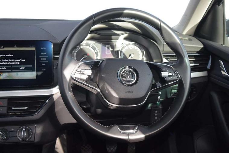 Amundsen satellite navigation with 9.2" glass colour touchscreen display, web radio, voice control and traffic sign recognition, Bluetooth system, E-call, Front assist system, Gesture control, PAS, Service indicator, Speed limiter, Wireless SmartLink for apple car play, android auto and mirrorlink, 8 Speakers, Auxiliary input socket, DAB Digital radio, Body colour bumpers, Body colour door mirrors and handles, Chrome grille surround, Dimming rear view mirror with black surround, Electrically adjustable and heated door mirrors, Front and rear electric windows, Headlight range control, Heated rear window, LED rear lights - low functionality, LED third brake light, Light sensors, Privacy glass, Rain sensor, Rear fog lights, Rear side wing doors, Rear wiper, 12V Accessory socket in centre console, 3 seat bench in 2nd row, Chrome inner door handles, Cloth upholstery, Front head restraints, Glove compartment with illumination, Height adjustable driver and front passenger seats - manual, Ice scraper, Isofix child seat fittings on outer rear seats, ISOFIX on front passenger seat, Manual lumbar support for front seats, Rake/reach adjustable steering wheel, Reading lights, Single front passenger seat, Sun visors with illumination on front passenger, Textile floor mats, Third rear headrest, Top tether for front passenger seat, Umbrella in driver's door, 3x3 point rear seatbelts, Airbags - driver and front passenger, ESP, Front passenger airbag deactivation switch, Front side airbags with curtain airbags, Hill hold control, Manual parking brake, Manual rear child locks, One tone horn, Rear disc brakes, Seatbelt reminder for driver an co-driver, Traction control, Tyre pressure monitor, Anti-theft alarm system with interior monitoring, backup horn, towing protection and remote central locking with SAFE system, Anti-theft wheel bolts, Electronic engine immobilizer, Silver haptic decorative insert on the dashboard with hot stamping in glossy black,