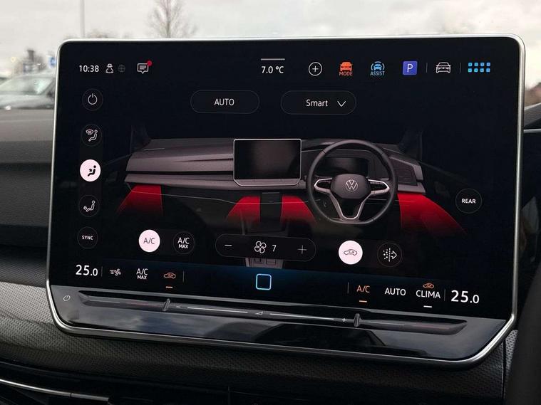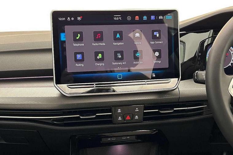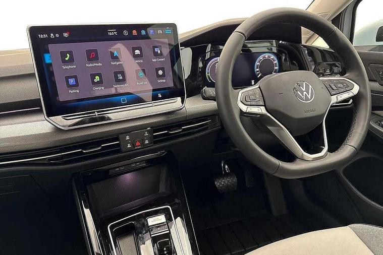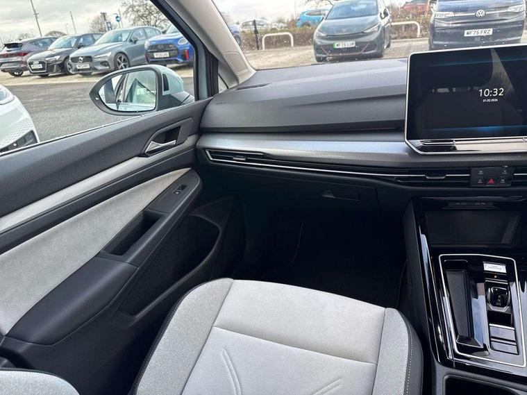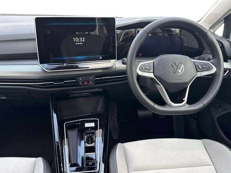 Activated carbon canister, Adaptive cruise control (ACC), Advanced driver attention and drowsiness monitor, Dynamic road sign display, E-Sim card for online connectivity, eCall emergency call system, Multi-color Digital cockpit pro, selection of different info profile possible, Multifunction front facing camera for distance control, Navigation system, Oncoming vehicle braking when turning including swerve support, Side assist blind spot lane change system, rear traffic alert and exit warning system, Speed limiter, Speedo, rev counter, electronic odometer, trip, service interval display, exterior temperature and fuel gauge, Traffic jam assist, Voice enhancer and voice control, Warning signal and warning light for front and rear seatbelts not fastened, We connect plus preparation, We connect preparation, Wireless app connect, Charging cable Mode 2 Type 2 (10A), Charging cable mode 3, type 2 32 A, Hybrid propulsion system, Start-stop system with battery regeneration (recuperation - energy recovery during braking), XDS electronic differential lock for improved traction and handling, 2 USB C ports in front, 2 USB charging sockets on the centre console in the rear charging capacity upto 45W, 6 Speakers - 4 in front and 2 in rear with central speaker, Digital radio reception (DAB), Diversity antenna for FM reception, Gaming platform via car app, Infotainment system with 12.9" display, Mobile phone interface with inductive charging feature, 3rd brake light, Automatic headlamp activation with Coming home and Leaving home feature, Body colour bumpers, Body colour door handles, Body colour door mirrors, Chrome trimmed front air intake surrounds, Chrome trims on the side window bottom, Exterior mirrors convex on the left and aspherical on the right, Front and rear electric windows, Heat insulating windshield made of laminated glass, LED separate daytime running light, Rear exhaust tailpipe, Rear fog light on one side and reversing lights on both sides, Rear side wing doors, Rear windscreen washer and wiper with interval delay, Remote electrically foldable door mirrors, puddle lights and reverse activated passenger's door mirror, Welcome light with surround lighting, 12V socket in front centre console, 12V socket in luggage compartment, 3 rear head restraints, 3 seat bench in 2nd row, Air care climatronic 3 Zone automatic climate control with rear air conditioning control panel, Ambient lighting with 30 colour including LED light unit in front footwell with selectable light colour, Chrome plated radiator grille inserts, air vent surrounds and light switch surrounds, Front + rear black carpet mats, Front centre armrest, ISOFIX anchors for child seats on outer rear bench seats and on front passanger seat compatible for i-Size, Luggage compartment lighting, Plastic gear knob, Rear cupholder and loadthough, Single front passenger seat, Soul black instrument panel, Split folding backrest with centre armrest and unsplit rear seat bench, Standard pedal cluster, Storm grey roof lining, Sun visors with illuminated vanity mirrors, Driver assistance pack - Golf Estate/Hatchback Auto, 3 point height adj front seatbelts + pretensioners, 3 rear three point seatbelts, ABS, Autonomous emergency braking front assist with pedestrian and cyclist monitoring, Child locks on rear doors, Driver and front passenger airbag with front passenger airbag deactivation, Electronic parking brake with auto hold, ESC (Electronic Stability Control), Extended pedestrian protection measures, Hill start assist, Rear disc brakes, Two tone horn, Tyre pressure loss indicator, Volkswagen roadside assistance, Anti theft wheel bolts, Preparation for alcohol interlock, New brushed dark metal decorative inserts for dashboard and front door panels, Tool kit for tyre mobility set, Tyre mobility kit Includes 12V compressor and tyre sealant,