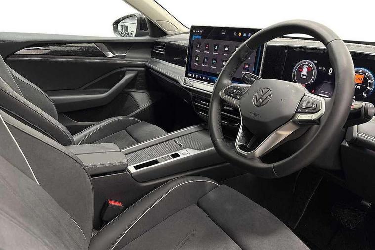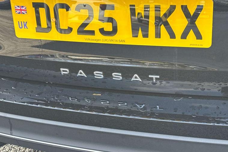 2 x Front USB-C ports, 2 x USB-C charging sockets on the centre console in the rear, charging capacity up to 45W, Adaptive cruise control, Advanced driver attention and drowsiness monitor, Chat GPT function for IDA voice assistant, Digital cockpit pro 10.25" high resolution, Discover media navigation system includes streaming and internet, Dynamic road sign display, E-Sim card for online connectivity, eCall emergency call service, Electronic engine sound, Full electric tailgate operation, Inductive smartphone charging without external antenna connection, Memory feature for park assist, Oncoming vehicle braking when turning including swerve support, Park assist with park distance control, Predictive speed limiter, Preparation for We connect and We connect plus, Wireless app connect, Battery 340 A (58 Ah), Front wheel drive, Petrol Particulate Filter, 8 Speakers, Auto dimming interior rear view mirror, Automatic headlights, Body colour bumpers, Body colour door handles, Heat insulating glass in side and rear windows, LED third brake light, Rain sensor, Rear side wing doors, Rear wiper, Welcome light with surround lighting, 3 seat bench in 2nd row, 3 zone air care climatronic with rear air conditioning control panel, Front + rear carpet mats, Front head restraints, Isofix child seat preparation, easy-fit (for two outer rear seats, and front passenger seat), compatible with I-size, Luggage compartment cover, power operated, Single front passenger seat, Standard pedal cluster, Sun visors with illuminated vanity mirrors for driver and front passenger, Sunblind for rear side windows, Three rear head restraints, Unsplit rear seat bench, split folding backrest, Infotainment package plus - Passat Estate, Park and comfort pack - Passat Estate, 3x3 point rear seat belts, ABS (Anti locking brake system) includes BAS (Brake assist) and EBD (Electronic brake pressure distribution), Autonomous emergency braking front assist with pedestrian and cyclist monitoring, Disc brakes in front, Driver/Front Passenger airbags, Drivers knee airbag, Electronic parking brake with auto hold, ESC (Electronic stability control) + EDL (Electronic Differential lock) and ASR (Traction control), EDTC (Engine drag torque control), Extended safety system with proactive passenger protection system, Front passenger airbag deactivation switch, Hill hold function, Tyre pressure loss indicator, Warning triangle and first aid kit, Alarm with interior protection, Electronic engine immobiliser, Keyless locking and starting system keyless access with safelock, Aluminium decorative inserts, Tool kit for tyre mobility set, Trims for alloy wheels,