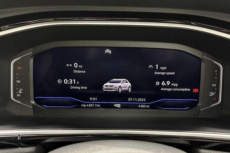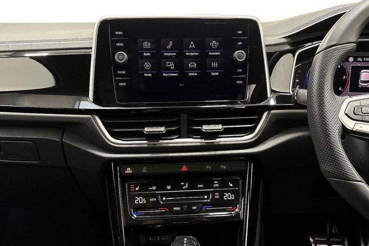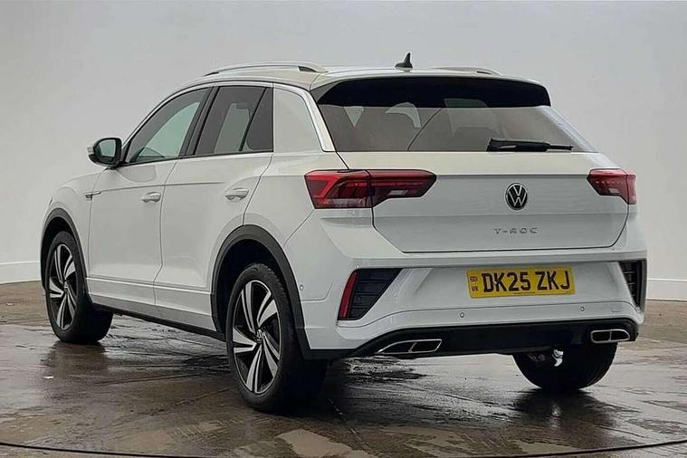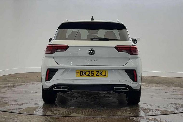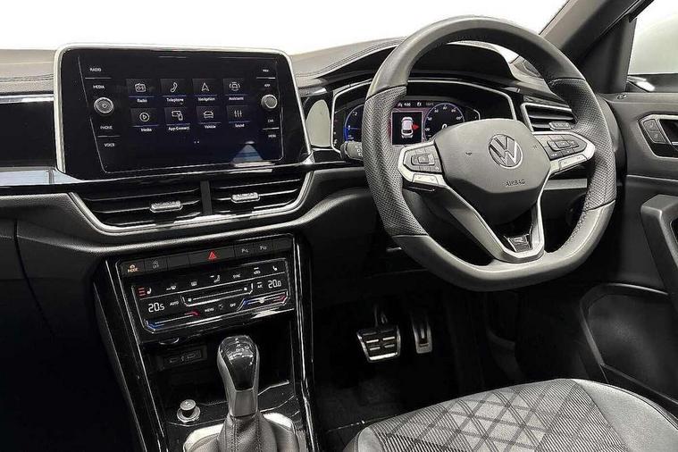 10.25" Digital cockpit pro, Advanced driver attention and drowsiness monitor, Dynamic road sign display, Emergency call service, Lane keeping system Lane Assist, Mobile phone interface, Modified key software - reduce switch off time for key status change to Long no motion, Online services, Park assist including front and rear parking sensors, Service interval indicator, Tailgate/trunk lid release from outside, Think blue trainer driver tips and journey analysis, Warning sound and light for front seatbelts unfastened, Wireless app connect, Battery regeneration during braking, Start/stop function with battery regeneration, DAB Digital radio, Diversity antenna for FM reception, Front and rear 6 speakers, Music playback - MP3, WMA and AAC files, Premium USB cable in choice of either Apple or Android smartphone compatibility, SD card slot, Simultaneous pairing of 2 compatible mobile devices, Title and cover art display, We Connect and We Connect Plus functionality, Auto dimming interior rear view mirror, Automatic hazard lights activation under emergency braking, Automatic headlight control with LED separate daytime running lights with coming/leaving home function, Body coloured exterior mirror housings and door handles, Electrically adjustable and heated door mirrors, Extended roof spoiler, Exterior mirrors aspherical on driver side, convex on front passenger side, External USB type C socket and charging sockets, Front windscreen wiper with intermittent wipe and 4 position delay, Heated rear window, LED 3rd brake light, LED rear combination lamps, LED rear number plate lights, Power windows with comfort operation and circuit breaker, Privacy glass for rear side windows and rear window, R-Line design body coloured bumpers, Rain sensor, Rear exhaust tailpipe, Rear fog light on one side and reversing lights on both sides, Rear side wing doors, Rear wash/wipe with intermittent wipe setting, Remote electrically foldable door mirrors, puddle lights and reverse activated passenger's door mirror, 12V power socket in centre console, 3 rear head restraints, 3 seat bench in 2nd row, 4 load lashing points in luggage compartment, Air care climatronic air conditoning system with active combination filter and 2-zone temperature control, Black roof lining, Chrome plated decorative trims, Chrome plated radiator grille inserts, air vent surrounds and light switch surrounds, Door and side trim panel with leatherette insert, Front + rear carpet mats, Front centre armrest, Front cupholders x 2, Front footwell illumination, Front reading light, Front scuff plates with R Line logo, Front seat back storage pockets, Glove compartment door with light, Instrument lighting, white adjustable panel illumination, Interior ambient lighting and surround lighting, Interior light delay, Isofix child seat preparation, Leather gearshift handle, Load-through provision with cup holder when folded down ('Unsplit rear seat bench, split folding backrest, with centre armrest), Luggage compartment lighting, Single front passenger seat, Stainless steel pedals, Storage compartment in left and right luggage area, Storage compartment in rear doors, Storage compartments in driver and front passenger doors, Sunvisors with illuminated vanity mirrors, Variable boot floor, height adjustable and removable, Driver assistance pack without proactive passenger protection - T-Roc, 3 point height adj front seatbelts + pretensioners, 3 point seatbelts in outer rear with ECE label, ABS, Child locks on rear doors, City emergency braking and pedestrian monitoring, Driver and front passenger airbag with front passenger airbag deactivation, Driver and front passenger safety-optimised head restraints, Drivers seatbelt reminder, Electronic parking brake, Electronic Stability Control (ESC) inc EDL (Electronic Differential Lock) and ASR (Traction Control), Front and rear passengers curtain airbag system including front side airbags, Hill start assist, Predictive pedestrian protection, Rear disc brakes, Two tone horn, Tyre pressure loss indicator, Volkswagen roadside assistance, Piano black decorative inserts in dashboard and front door trim panels, Trims for alloy wheels,