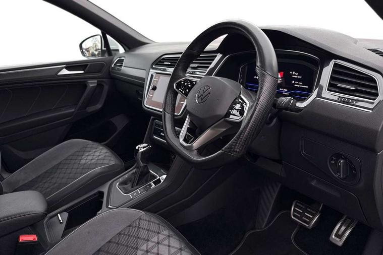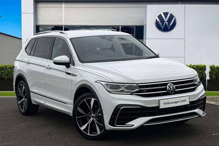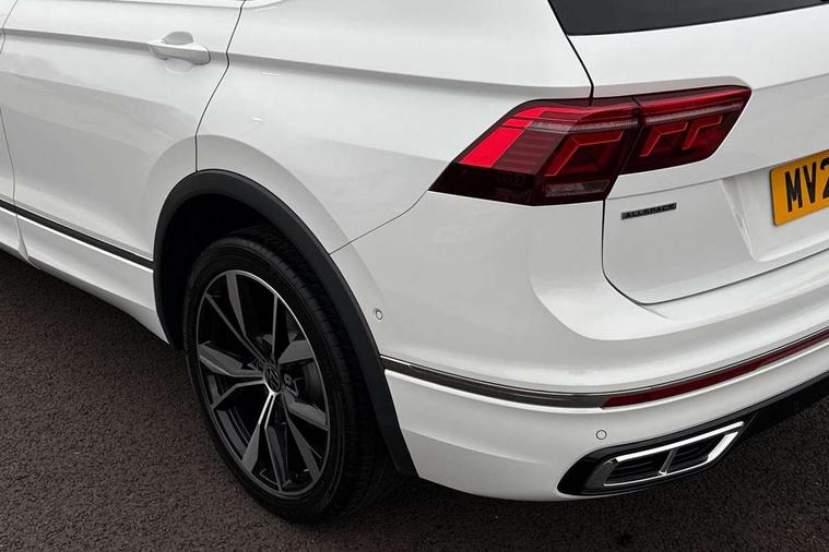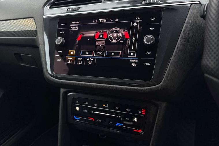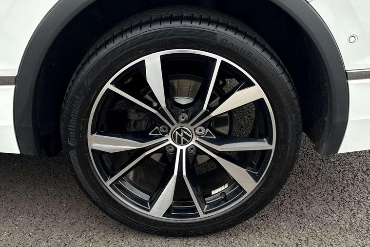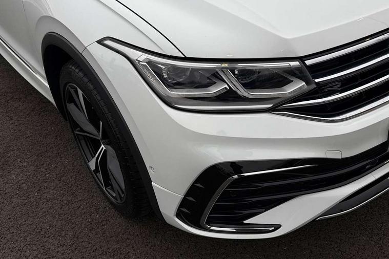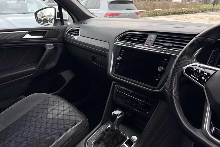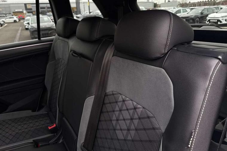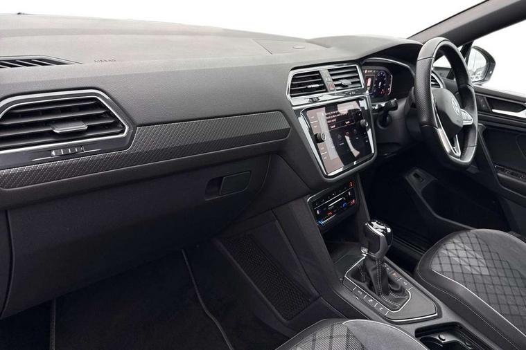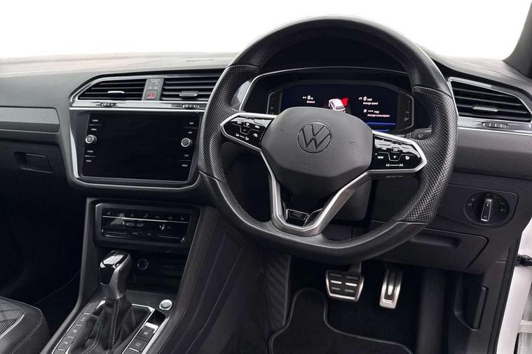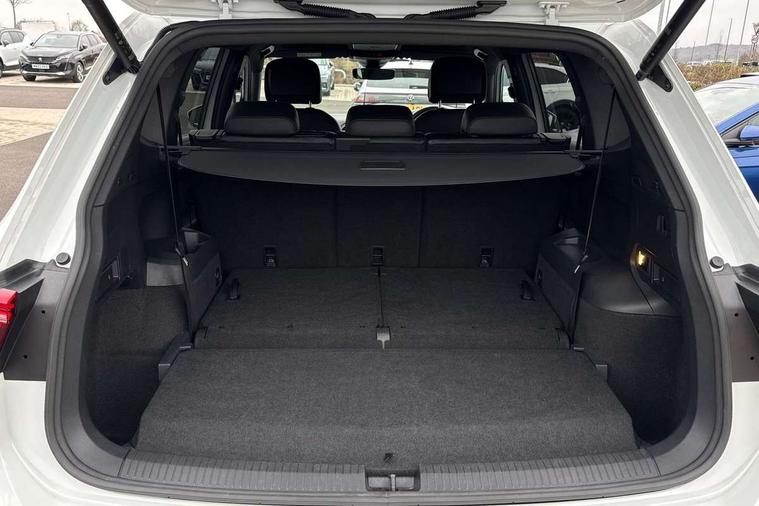 Adaptive cruise control, App-Connect, Digital cockpit pro, Driver alert system, Driver profile selection, Dynamic road sign display, eCall emergency call service, Electric boot lid, Lane change system side assist and rear traffic alert, Lane keeping system Lane Assist, Mobile phone interface comfort with inductive charging feature, Multifunction front facing camera, Power assisted speed sensitive steering, Speedo and rev counter, electronic odometer, trip, service interval display and exterior temperature gauge, Front wheel drive, Start-stop system with battery regeneration (recuperation - energy recovery during braking), 2 USB-C ports in the front, 1 USB-C charging socket on the center console in the rear, DAB Digital radio, Diversity antenna for FM reception, Radio, Auto dimming interior rear view mirror, Automatic headlight control system, Body coloured comfort bumpers, Chrome mouldings on side window, Coming/leaving home lighting function, Exterior badge deletion, Exterior mirror housings painted in silver, Heated windscreen washer jets, IQ light adv HBC, dyn light assist LED matrix headlamps, DH range, dark red LED rear combo light, poor weather, CL, LED headlamp with LED DRL and DCL - PXC, Privacy glass, Rain sensor, Rear fog light, Rear side wing doors, Rear wiper, Silver roof rails, Third brake light, Tilting and sliding panoramic sunroof, 12-volt outlet in centre console rear and luggage compartment, 12V socket in centre console, 3 head restraints in rear, 3 individual folding 2nd row seats, 3rd row 2 individual seats, Air Care Climatronic 3 zone automatic climate control with enhanced air filter and controls in the rear, Door and side trim panel, Drawers under front seats, Driver and front passenger seat height adjustment, Foldable front passenger seat backrest, Front + rear carpet mats, Front centre armrest, Front footwell illumination, Heated front seats, Illuminated scuff plates, ISOFIX anchorage points for mounting 2 child seats on rear seats and i-Size child seats, Leather gearshift handle, Leather-wrapped heated multi-function steering wheel with paddle shift, LED interior light with switch off delay/dimmer and 2 front/rear LED reading lights, Sun visors with illuminated vanity mirrors, Ambience pack - Tiguan Allspace, Easy open and close pack with safelock - Tiguan Allspace, Park assist pack - Tiguan Allspace, 3 point seat belt for centre rear seat, 3 rear three point seatbelts, ABS+EBD+Brake assist, Driver and front passenger safety-optimised head restraints, Driver's and front passenger's airbag with front passenger's airbag deactivation switch, Electronic parking brake, Electronic Stability Control (ESC) inc EDL (Electronic Differential Lock) and ASR (Traction Control), Height adjustable front 3 point seatbelts + pretensioners, Manual rear child locks, Pedestrian monitoring, PreCrash preventive occupant protection Front and rear, Rear disc brakes, Side airbag in front and rear with curtain airbag, Two tone horn, Warning buzzer for seatbelts if unfastened, Anti theft alarm system with interior monitoring, backup horn and towing protection, Anti-theft wheel bolts, Electronic steering lock, Remote central locking with 2 remote folding keys, Chequered flag tinanium decorative inserts,