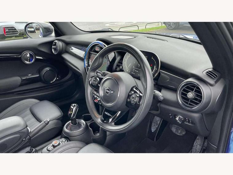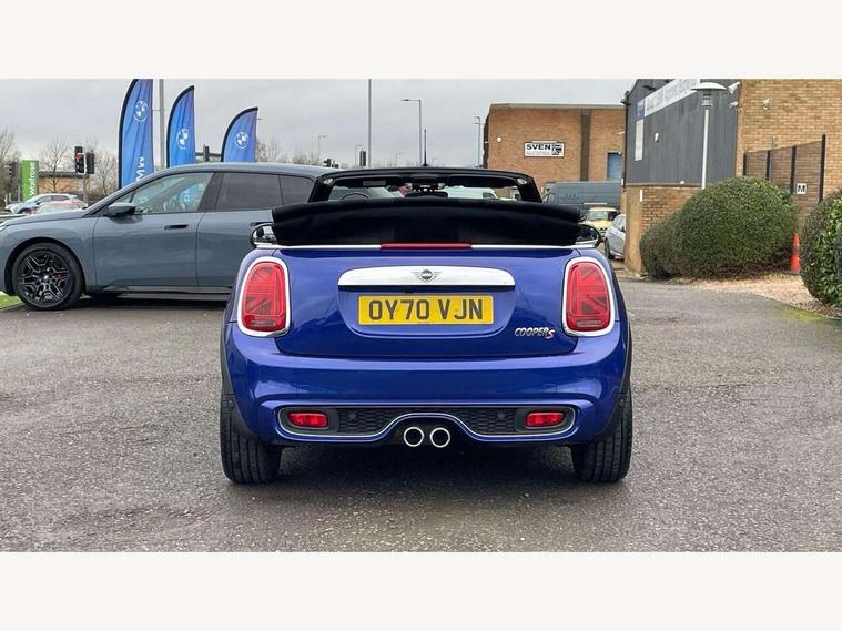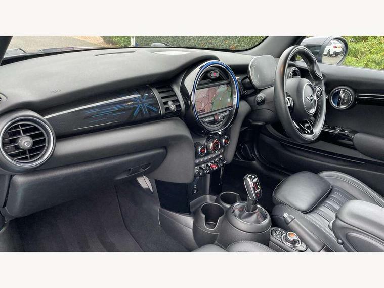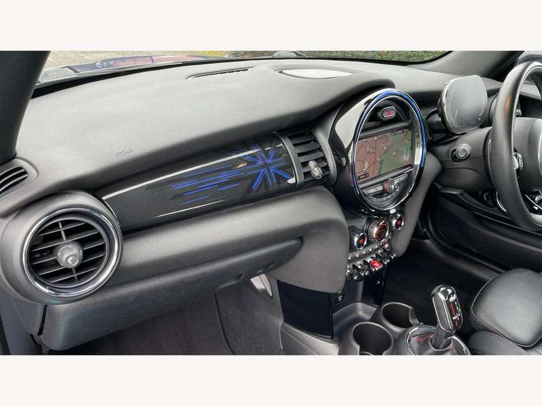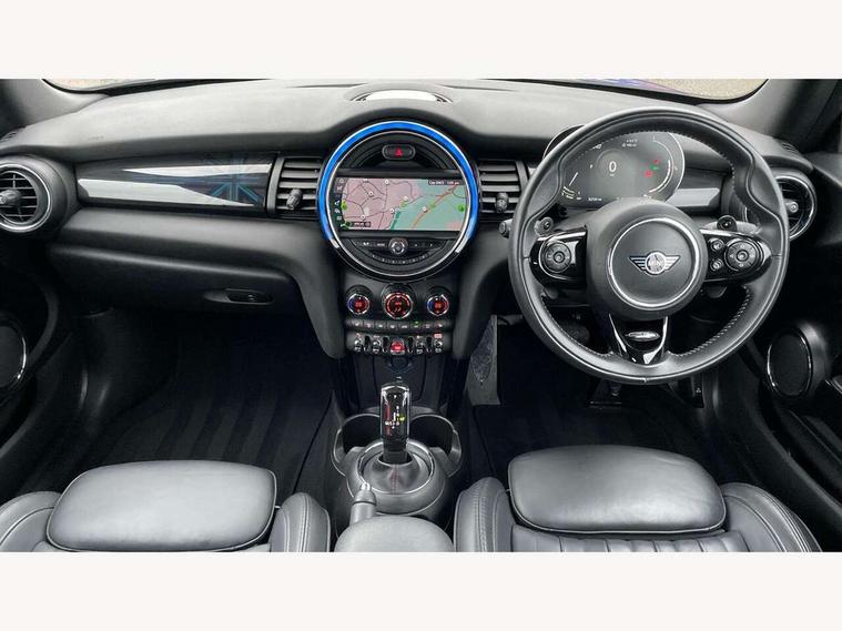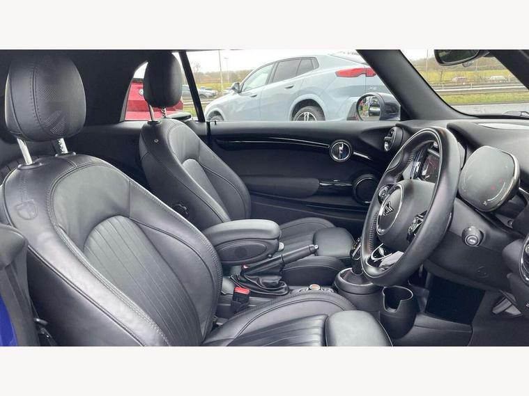 Automatic start/stop function with brake energy recuperation, Compatible mobile phone bluetooth with audio streaming, Electro-mechanical speed dependant steering assistance, Instrument cluster, MINI Driving Modes - centre toggle switch to control driving setting (sport, mid and green), Mini E-call, MINI TeleServices, On board computer, Rear park distance control, Service interval indicator, Double Vanos system, Fully variable valve control, High precision injection, Performance Control, Steptronic sport transmission with double clutch and steering wheel paddles, 6.5" touchscreen with LED ring, FM tuner and DAB digital radio, Automatic headlight activation switch, Bonnet scoop, Chrome plated fuel cap, Dynamic brake lights, Electric windows, Fully electric black softtop with integrated sunroof functionality, Heated rear window, Heated windscreen washer jets, LED headlight with closed ring and daytime driving lights, Metal door sill strips with Cooper S imprint, Model logo Cooper S on right of tailgate, Radiator grille bars, tailgate handle, lower front grille grating, rear central fog light in chrome, Rain sensor window wipers, Rear fog lights, Rear LED lights with union jack design, Side scuttle panel with integrated indicator, Sun/heat protection glass, Two central exhaust tailpipes with chrome finisher, White indicator lenses, 12V Accessory socket in centre console, 4 lashing eyes in luggage compartment, 50/50 split folding rear seats, Air vents, gear lever base, speakers in doors, door handles in chrome, Chrome interior highlights, Cupholders, Easy Load boot handles, Front and rear head restraints, Front and rear isofix with front passenger airbag deactivation, Front seatback storage pockets, Glove compartment, Height and length steering column adjustment, Interior lighting with 12 basic colours selectable via toggle switch in roof, Leather gearshift lever and handbrake gaiters, LED reading lights, vanity mirror lights, front foot well light and spotlight on front seats, Manual air conditioning, Mechanical seat adjustment, driver seat height adjust, forward/back and front seats backrest, Mini logo projection on floor from drivers exterior mirror, MINI Yours fine walk nappa leather steering wheel with contrast stitching in silver and MINI Yours badge, Multifunction steering wheel, Storage compartments in doors, Sunvisors with vanity mirrors, Convertible pack with comfort access - Mini Convertible, 3 point seatbelts on all four seats, 6 Airbags - front, side and seat belt tensioners, Active rollover protection, Anti-lock braking system (ABS), DSC - Dynamic Stability Control, Front and rear disc brakes, Hill start assist, Two tone horn, Tyre pressure monitoring system, Alarm system with tilt sensor, monitoring doors, bonnet interior and tailgate, Electronic vehicle immobiliser, Keyless Go, Chrome line interior, Tool kit,