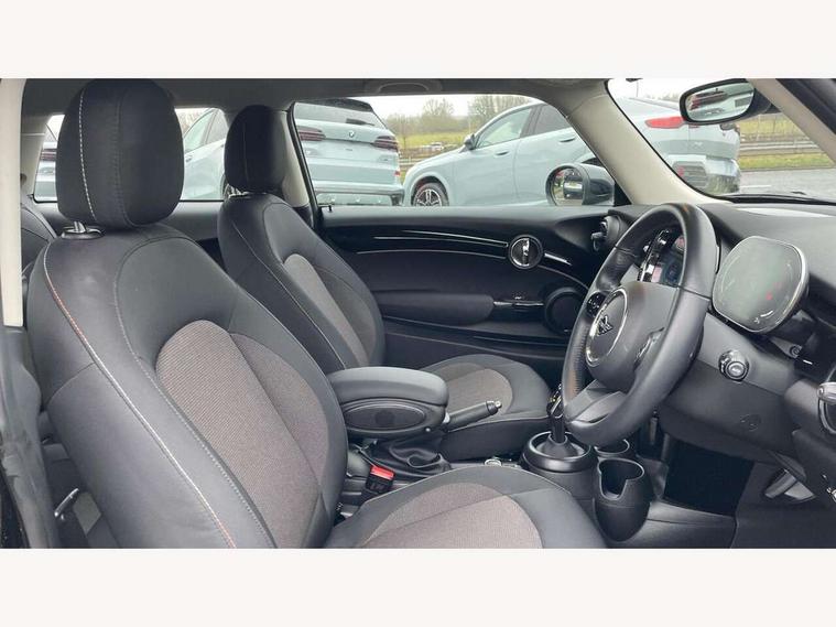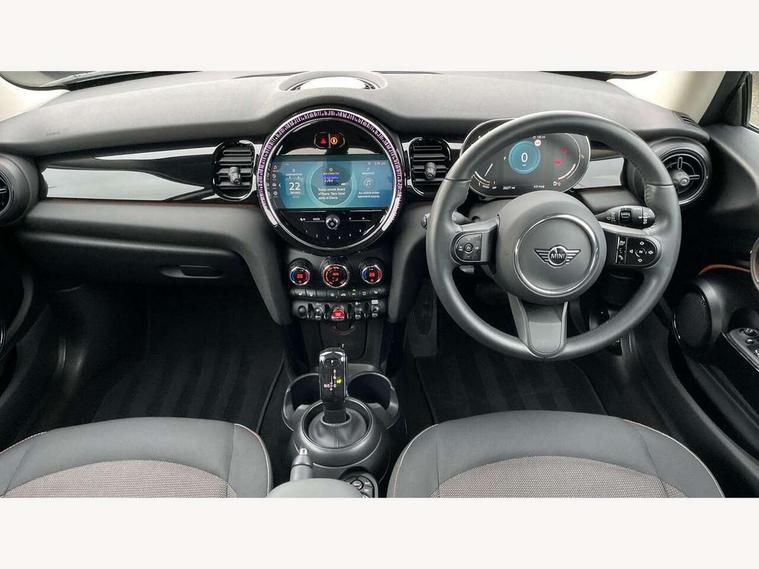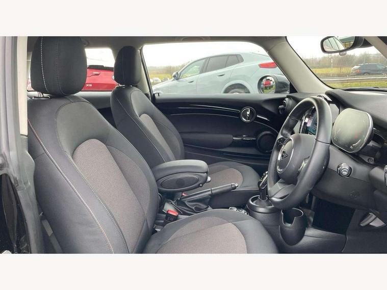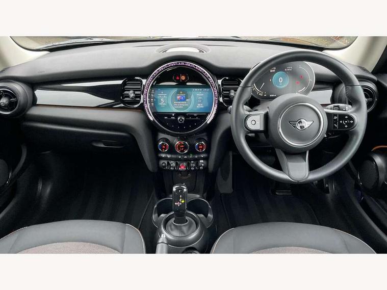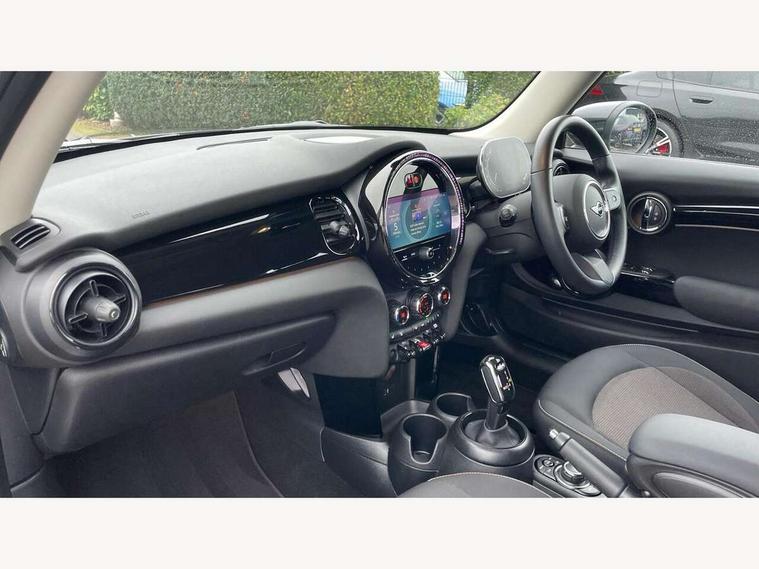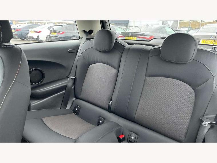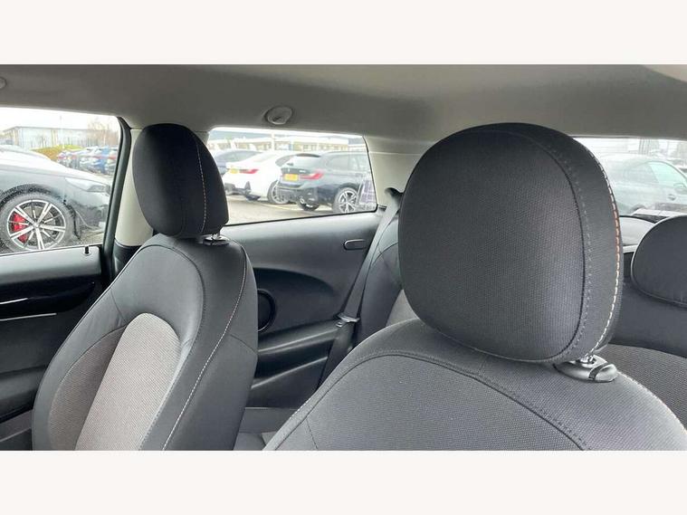 Apple CarPlay, Automatic start/stop function with brake energy recuperation, Compatible mobile phone bluetooth with audio streaming, Cruise control with brake assist, Electro-mechanical speed dependant steering assistance, Flexible car sharing preparation, Instrument cluster, Mini E-call, MINI TeleServices, On board computer, Service interval indicator, Double Vanos system, Fully variable valve control, High precision injection, Performance Control, Steptronic transmission with double clutch, 8.8" touchscreen with LED ring, FM tuner and DAB digital radio, 3rd brake light, Automatic headlight activation switch, Body colour fuel filler cap, Chrome border high gloss black slats radiator grille, Dynamic brake lights, Electric front windows, Exhaust tailpipe on left with chrome finisher, Heated rear window, Heated windscreen washer jets, LED headlight with closed ring and daytime driving lights, Metal door sill strips with MINI imprint, Model logo Cooper on right of tailgate, Rain sensor window wipers, Rear fog lights, Rear LED lights with union jack design, Rear window wiper, Side scuttle panel with integrated indicator, Sun/heat protection glass, White indicator lenses, 12V Accessory socket in centre console, 2 seat bench in 2nd row, 4 lashing eyes in luggage compartment, 60/40 split folding rear seat, Ambient lighting, Carbon black colour line - Knee roll and door armrest, Chrome interior highlights, Cupholders, Front and rear head restraints, Front and rear isofix with front passenger airbag deactivation, Front floor mats in velour, Glove compartment, Height and length steering column adjustment, Interior lighting with 12 different colours across the dashboard, underneath door bezel with illuminated laser-engraved design on central display, Leatherette gearshift lever and handbrake gaiters, LED reading lights, vanity mirror lights, front foot well light and spotlight on front seats, Manual air conditioning, Mechanical seat adjustment - forward/back & backrest for front seats and driver seat height adjust, Multifunction steering wheel, Passenger seat height adjuster, Satellite grey headlining including grab handles and clothes hooks, Single front passenger seat, Sport leather steering wheel with speed limiter and audio/communication controls, Storage compartments in doors, Sunvisors with vanity mirrors, 3 point seatbelts on all four seats, 6 Airbags - front, side, head and seat belt tensioners, Anti-lock braking system (ABS), DSC - Dynamic Stability Control, Front and rear disc brakes, Single tone fanfare horn, Tyre pressure monitoring system, Alarm system with tilt sensor, monitoring doors, bonnet interior and tailgate, Electronic vehicle immobiliser, Start/stop toggle with keyless go, Piano black interior trim, Tool kit, Tyre repair kit,