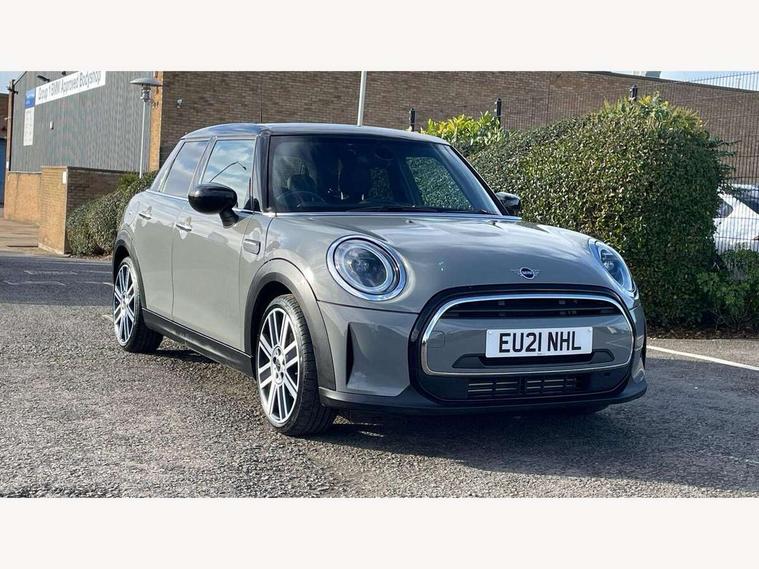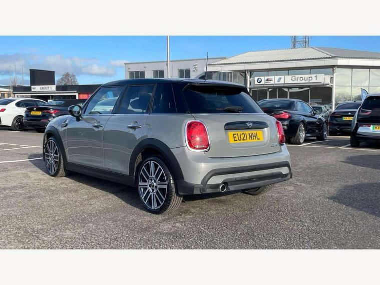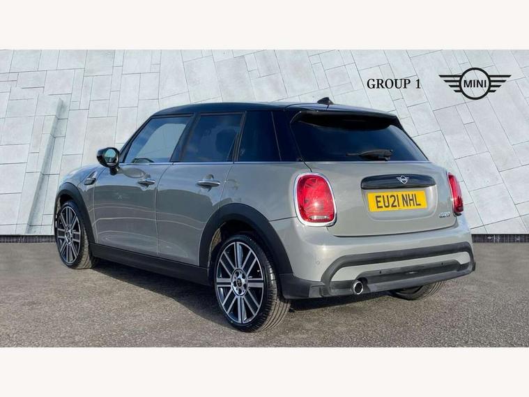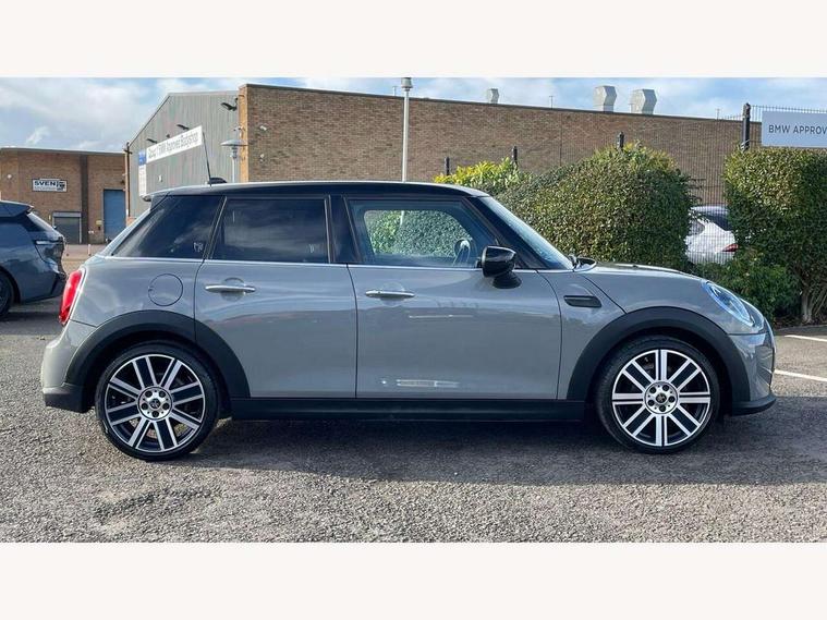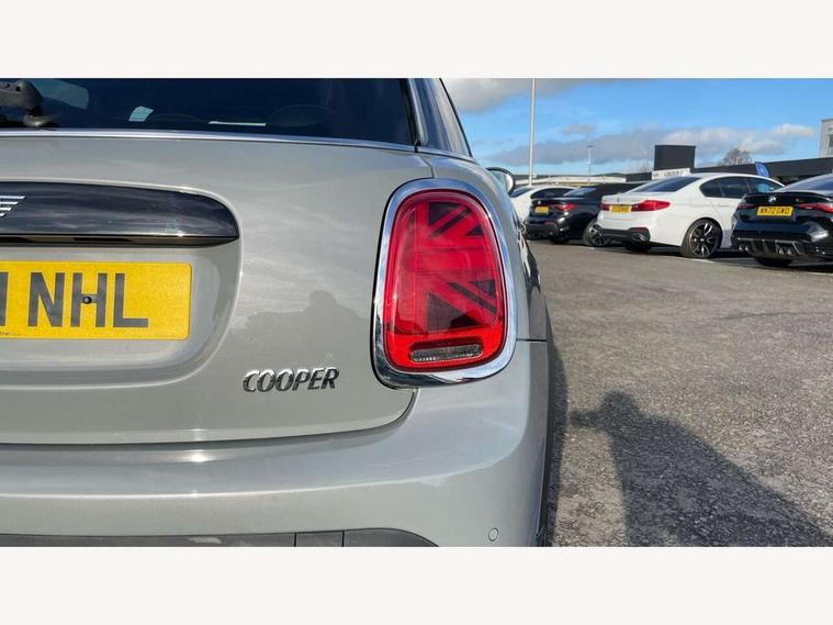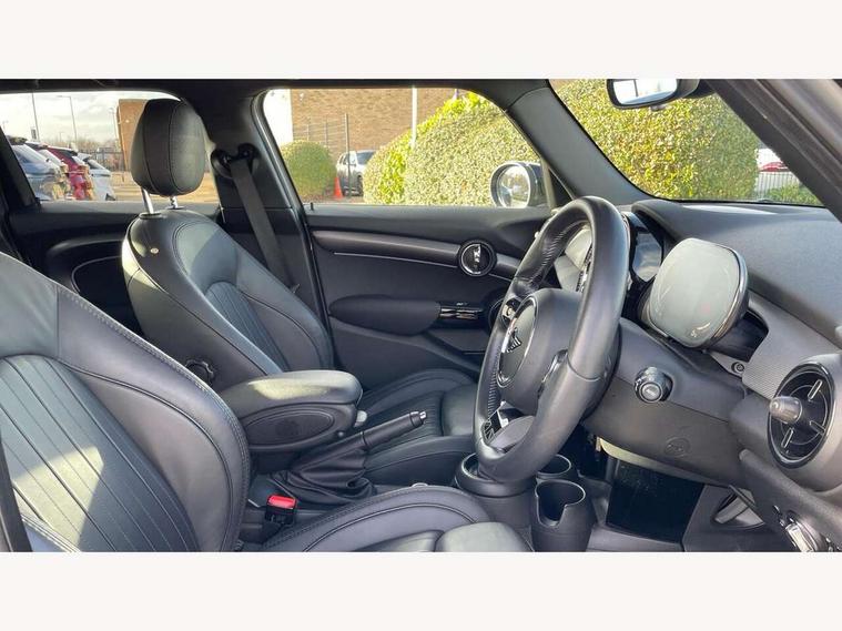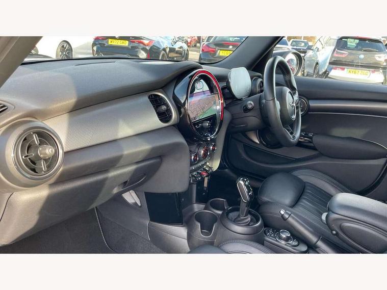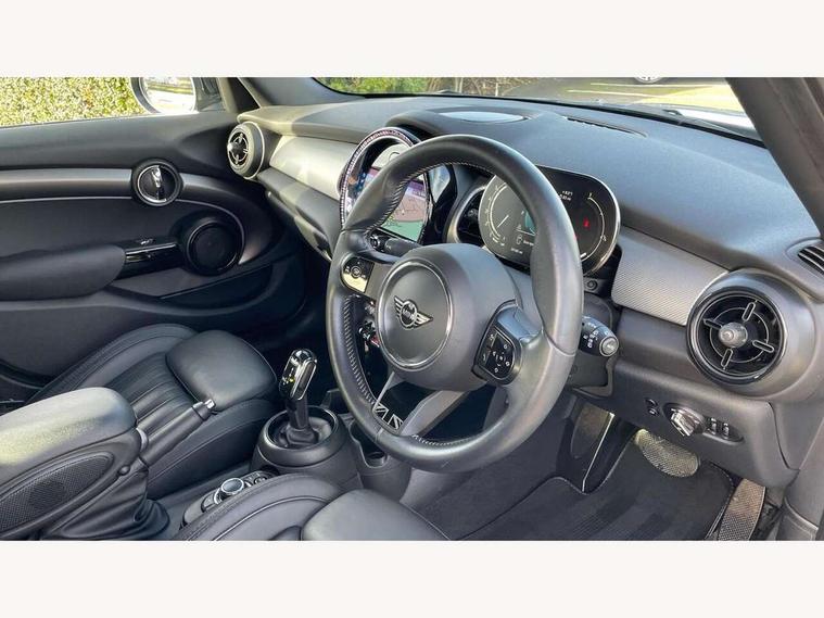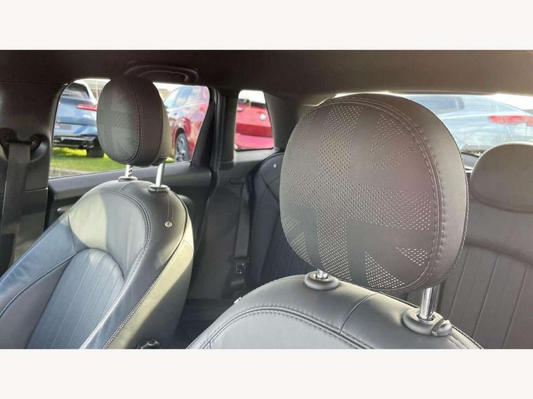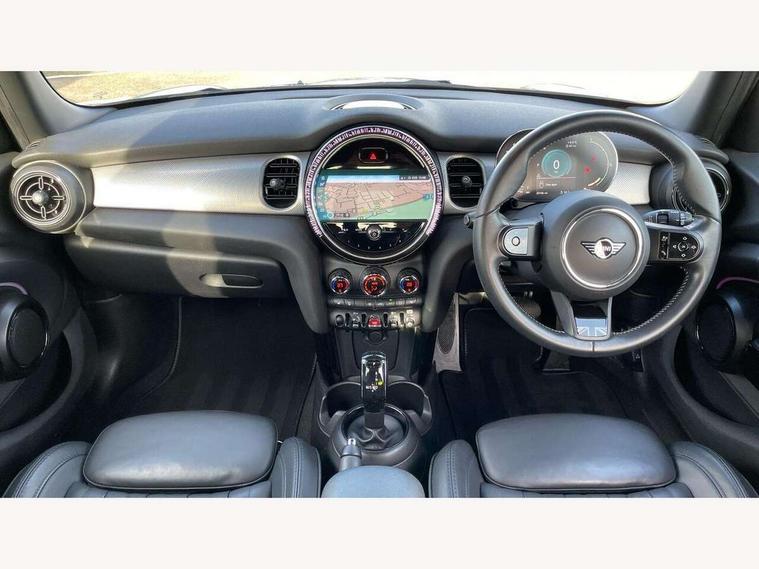 Automatic start/stop function with brake energy recuperation, Compatible mobile phone bluetooth with audio streaming, Cruise control with brake assist, Electro-mechanical speed dependant steering assistance, Flexible car sharing preparation, Instrument cluster, MINI Driving Modes - centre toggle switch to control driving setting (sport, mid and green), Mini E-call, MINI TeleServices, On board computer, Rear park distance control, Service interval indicator, Double Vanos system, Fully variable valve control, Gear change indicator display, High precision injection, Performance Control, Steptronic transmission with double clutch, 6 speakers in front door trims and underneath front seats, 8.8" touchscreen with LED ring, FM tuner and DAB digital radio, Automatic headlight activation switch, Body colour fuel filler cap, Chrome line exterior - radiator grille bars, tailgate handle, lower front grille grating and rear central fog-light, Dynamic brake lights, Electric front+rear windows, Heated rear window, Heated windscreen washer jets, LED headlight with closed ring and daytime driving lights, Metal door sill strips with MINI imprint, Model logo Cooper on right of tailgate, Rain sensor window wipers, Rear fog lights, Rear LED lights with union jack design, Rear window wiper, Side scuttle panel with integrated indicator, Sun/heat protection glass, White indicator lenses, 12V Accessory socket in centre console, 4 lashing eyes in luggage compartment, 60/40 split folding rear seat, Anthracite headliner including grab handles and clothes hooks, Carbon black colour line - Knee roll and door armrest, Chrome interior highlights, Chrome line interior - air vents, gear lever base, door handles and speakers in doors, Cupholders, Front and rear head restraints, Front and rear isofix with front passenger airbag deactivation, Glove compartment, Height and length steering column adjustment, Interior lighting with 12 different colours across the dashboard, underneath door bezel with illuminated laser-engraved design on central display, Leatherette gearshift lever and handbrake gaiters, LED reading lights, vanity mirror lights, front foot well light and spotlight on front seats, Manual air conditioning, Mechanical seat adjustment - forward/back & backrest for front seats and driver seat height adjust, MINI yours badge on exterior pillar, Multifunction steering wheel, Storage compartments in doors, Sunvisors with vanity mirrors, Velour floor mats, Walknappa leather steering wheel with grey seam and MINI Yours badge on Piano Black lower steering wheel spoke, 3 point seatbelts on all five seats, 6 Airbags - front, side, head and seat belt tensioners, Anti-lock braking system (ABS), DSC - Dynamic Stability Control, Front and rear disc brakes, Hill start assist, Single tone fanfare horn, Tyre pressure monitoring system, Alarm system with tilt sensor, monitoring doors, bonnet interior and tailgate, Electronic vehicle immobiliser, Start/stop toggle with keyless go, Tool kit,